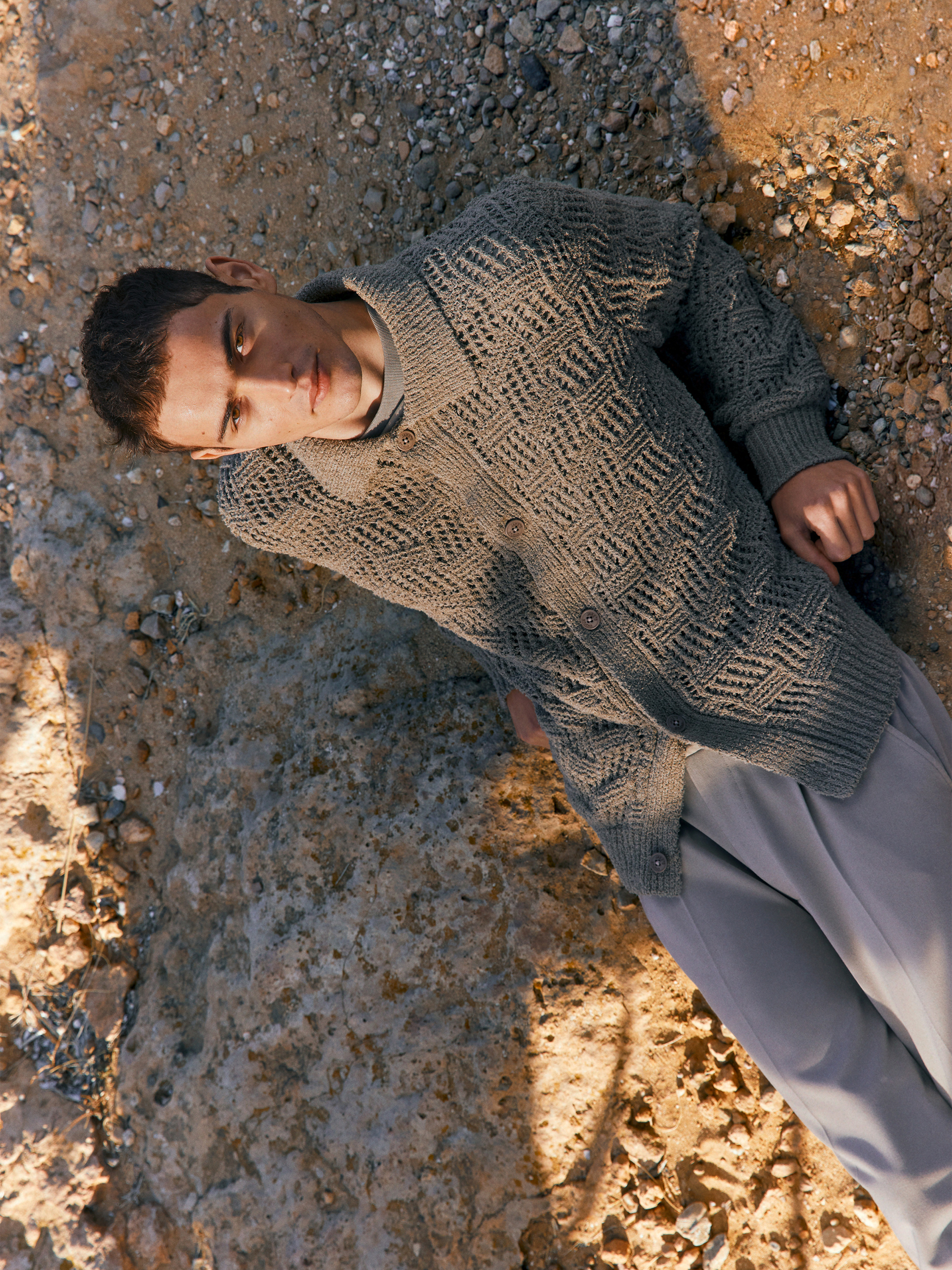 JAKE*S STUDIO MENCardigan met structuurmotief in roodbruin