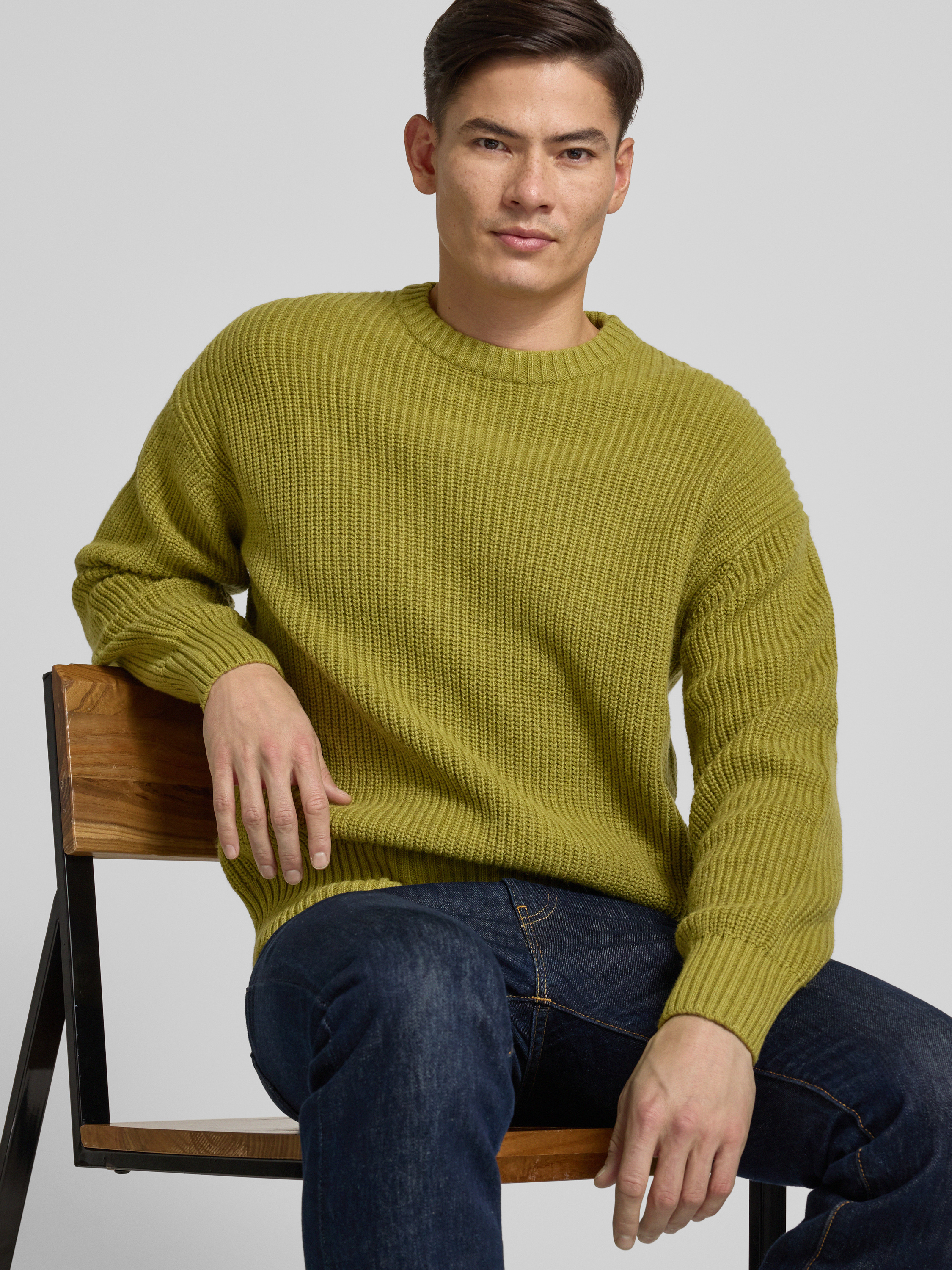 JAKE*S STUDIO MENGebreide pullover met ronde hals in groen gemêleerd