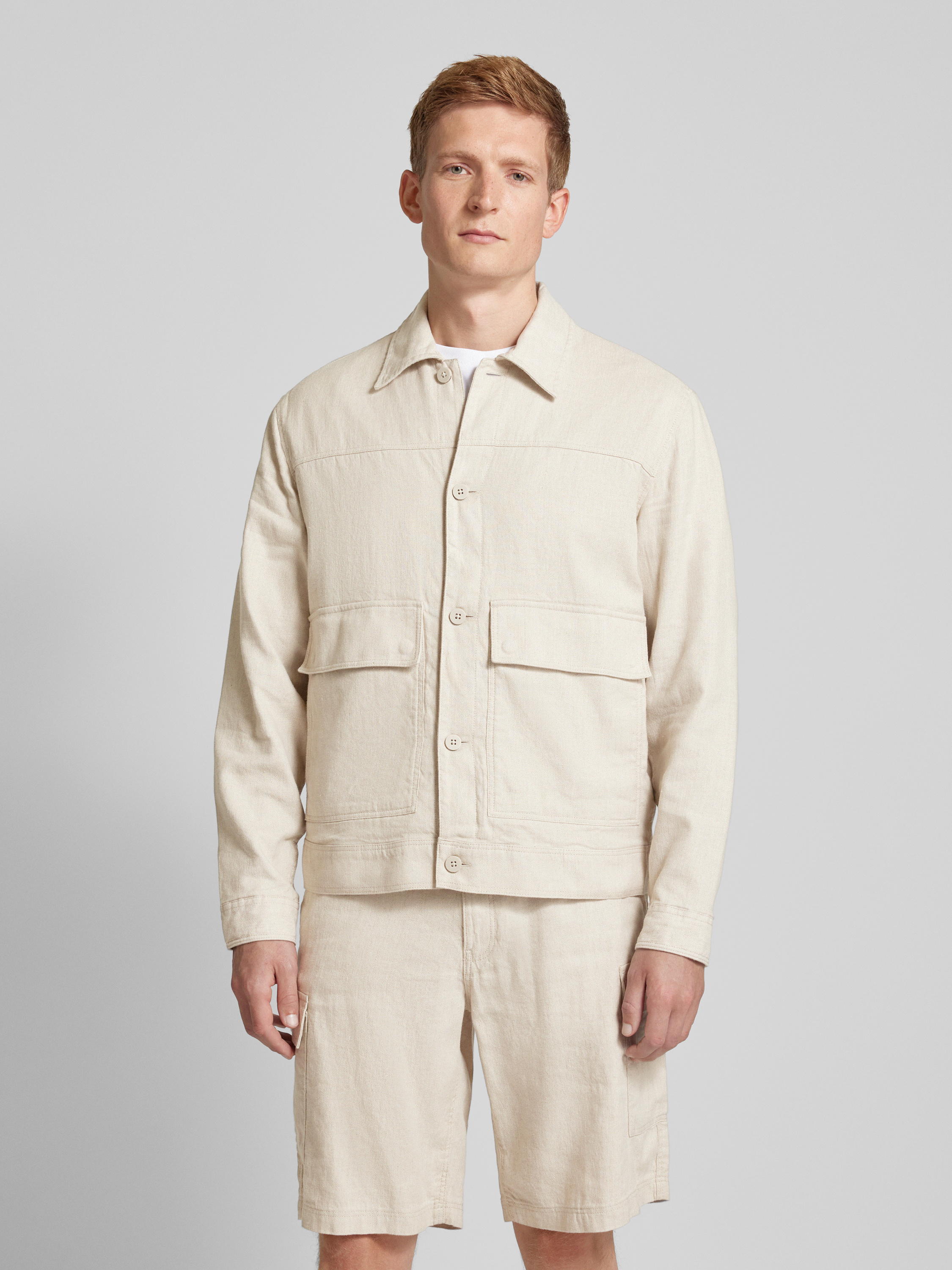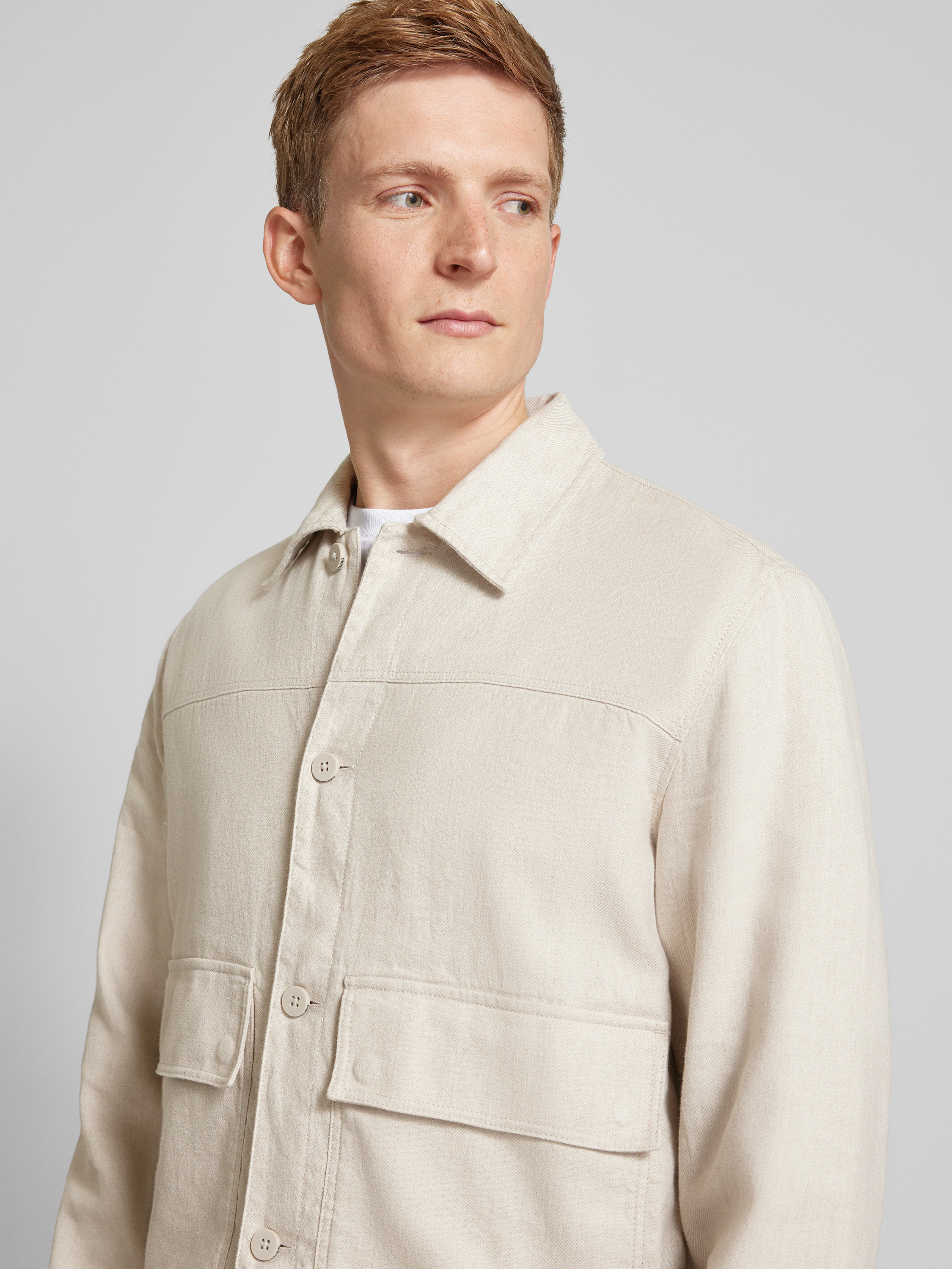 JAKE*S STUDIO MENOverhemdjack met platte kraag in zand