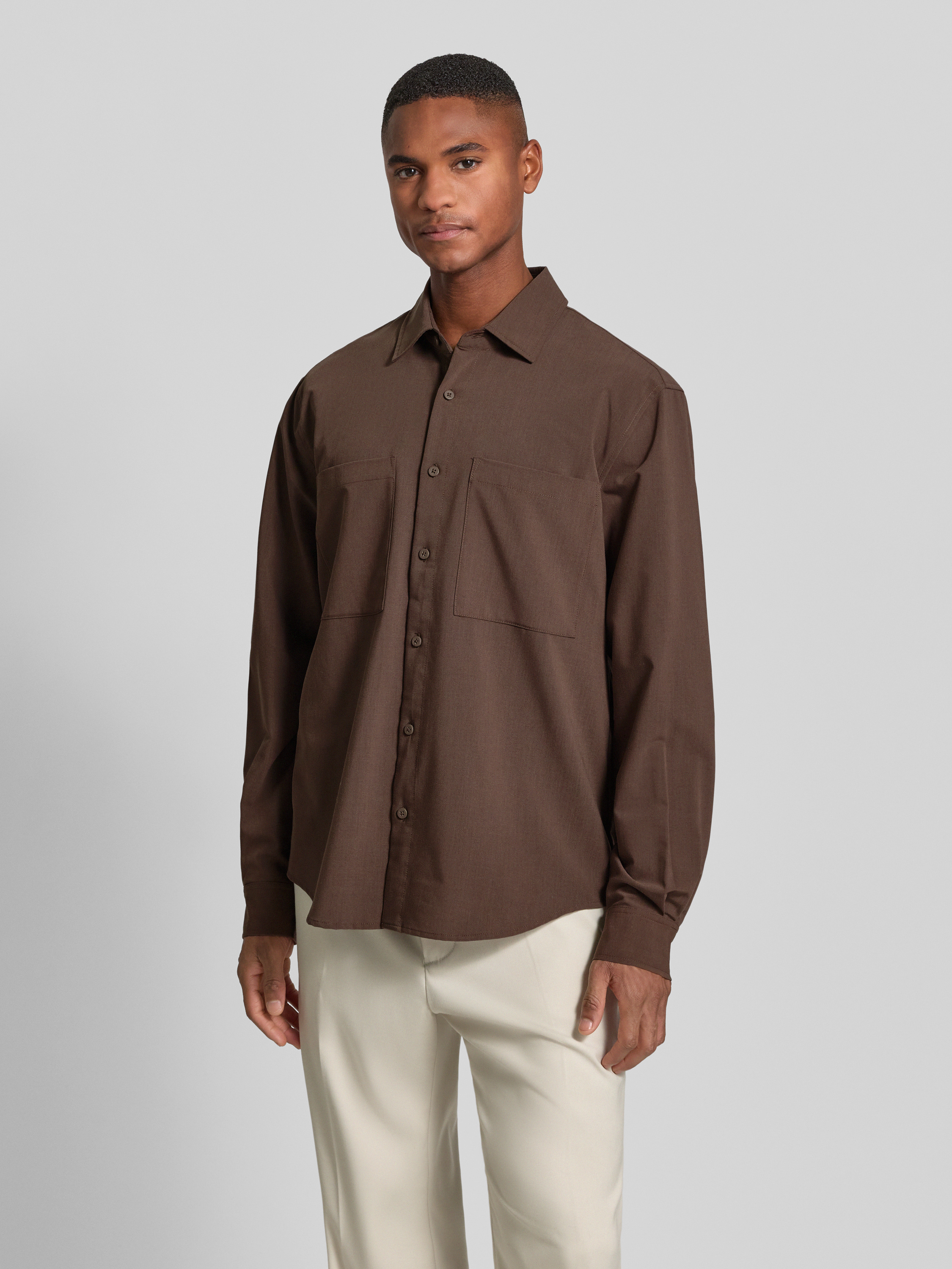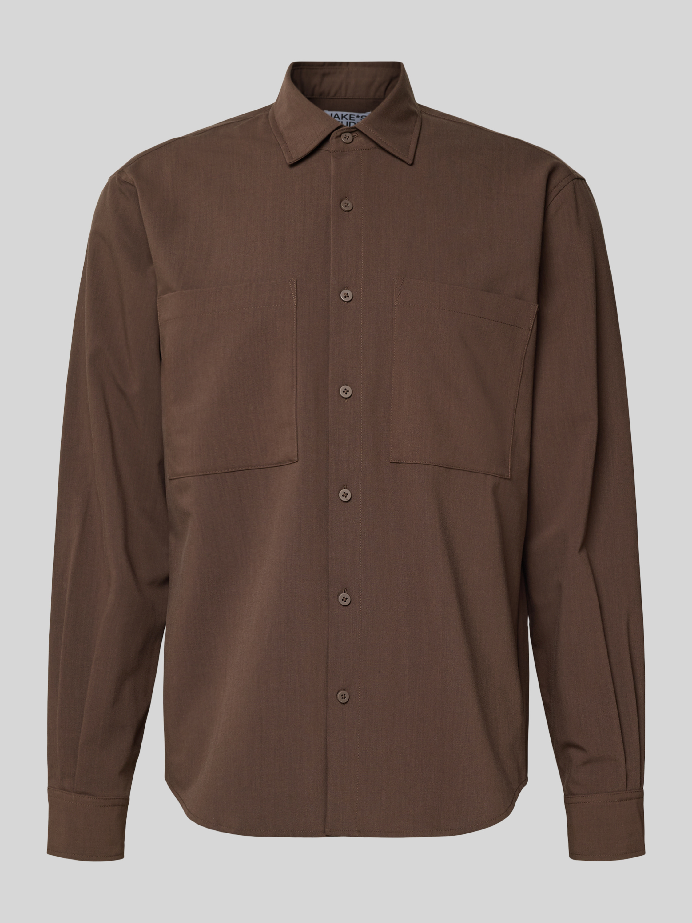 JAKE*S STUDIO MENRegular fit vrijetijdsoverhemd met kentkraag en borstzakken in chocoladebruin
