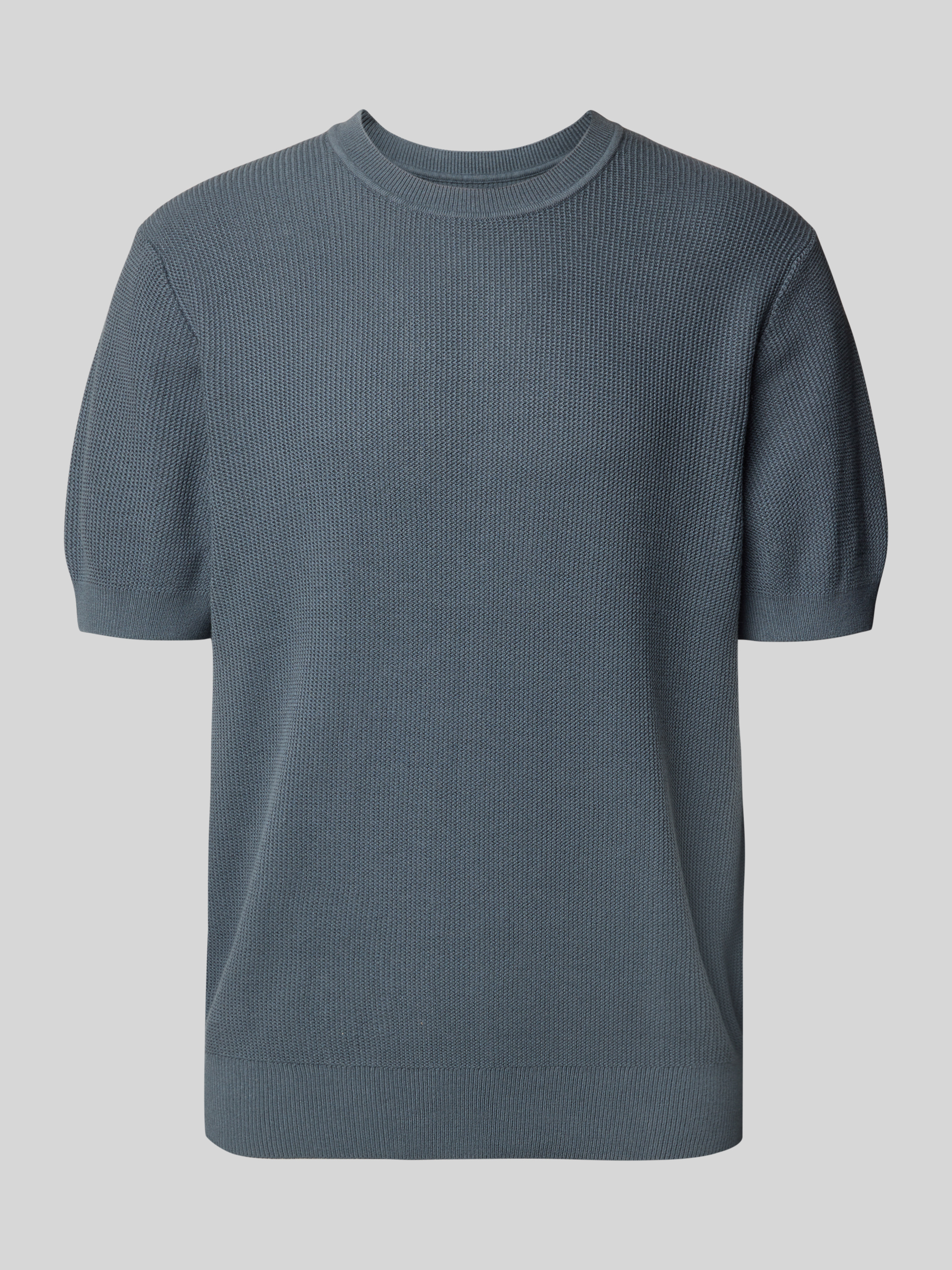JAKE*S STUDIO MENT-shirt met ribboorden, model 'CASPER' in rookblauw