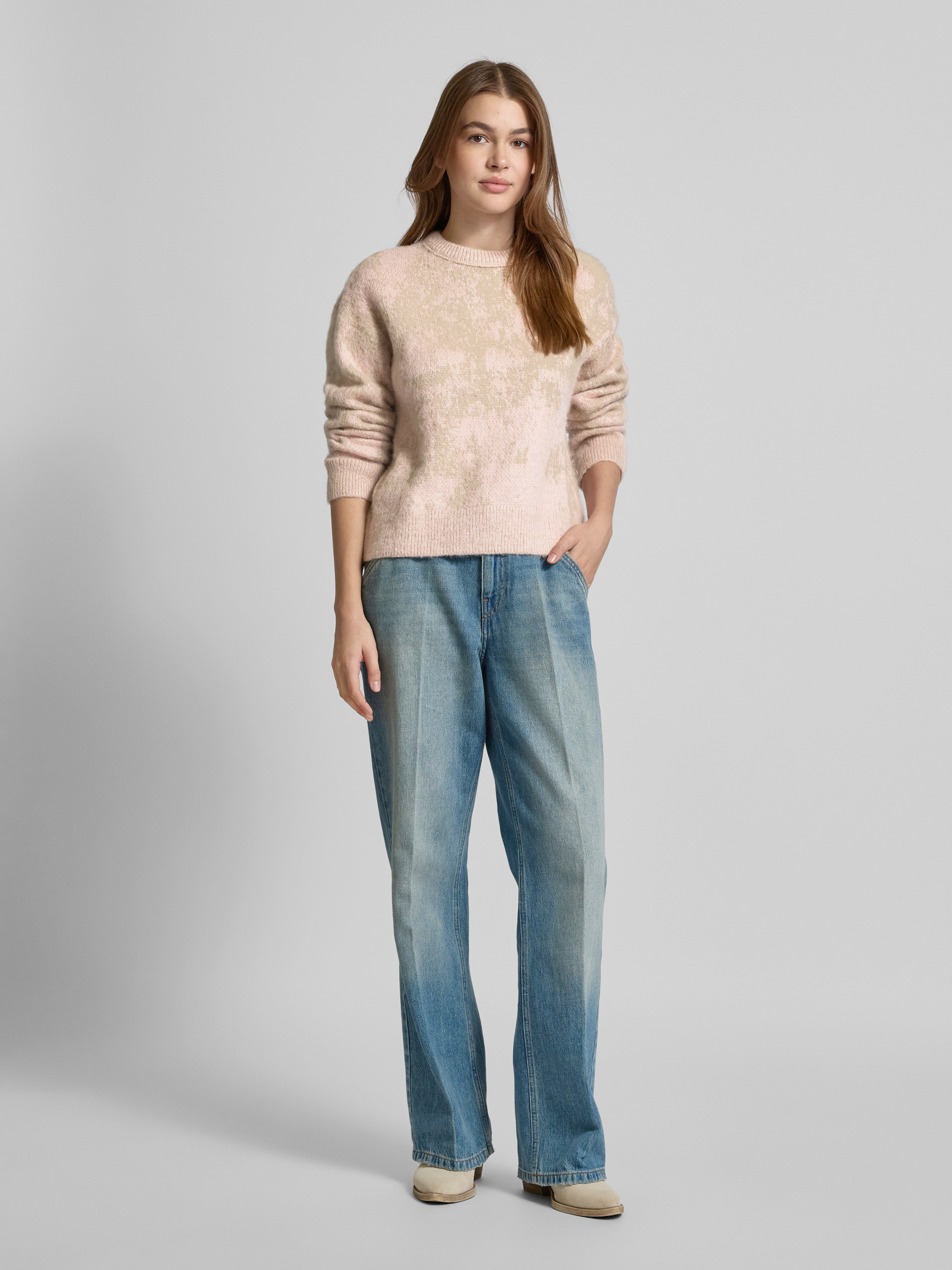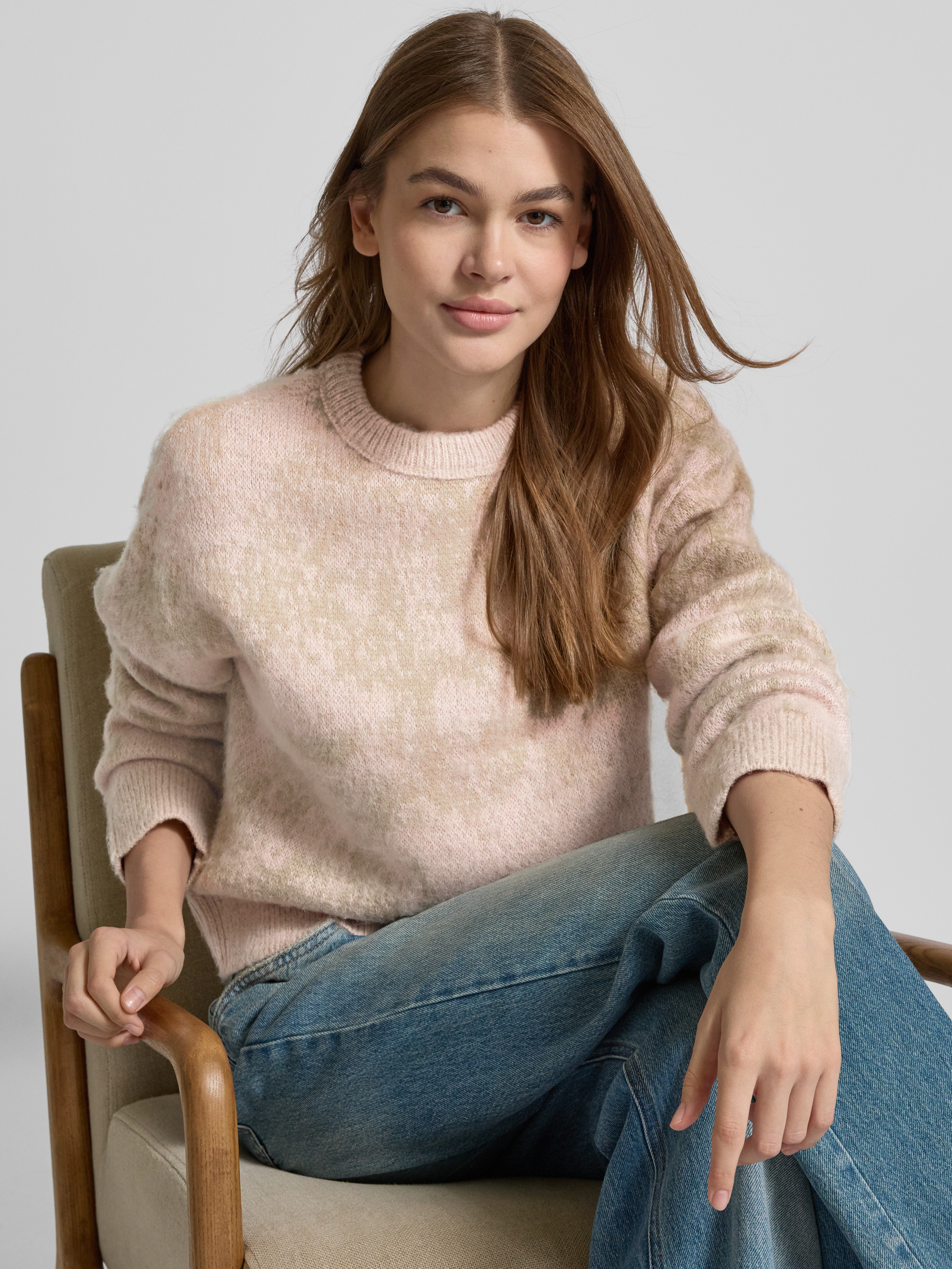 JAKE*S STUDIO WOMANGebreide pullover met ribboorden in zand