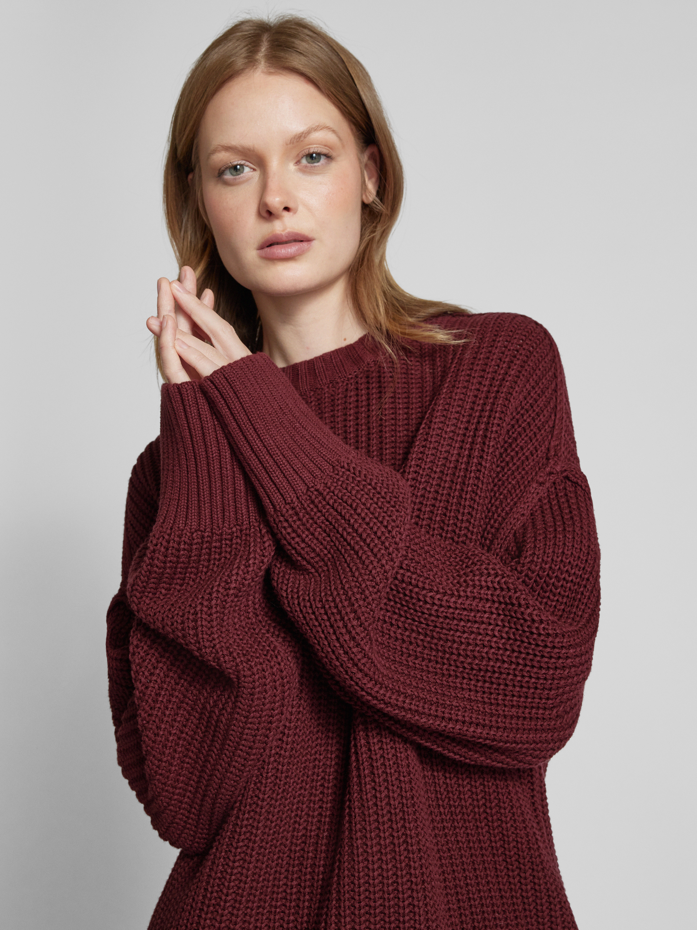 JAKE*S STUDIO WOMANOversized gebreide pullover met structuurmotief in donkerrood