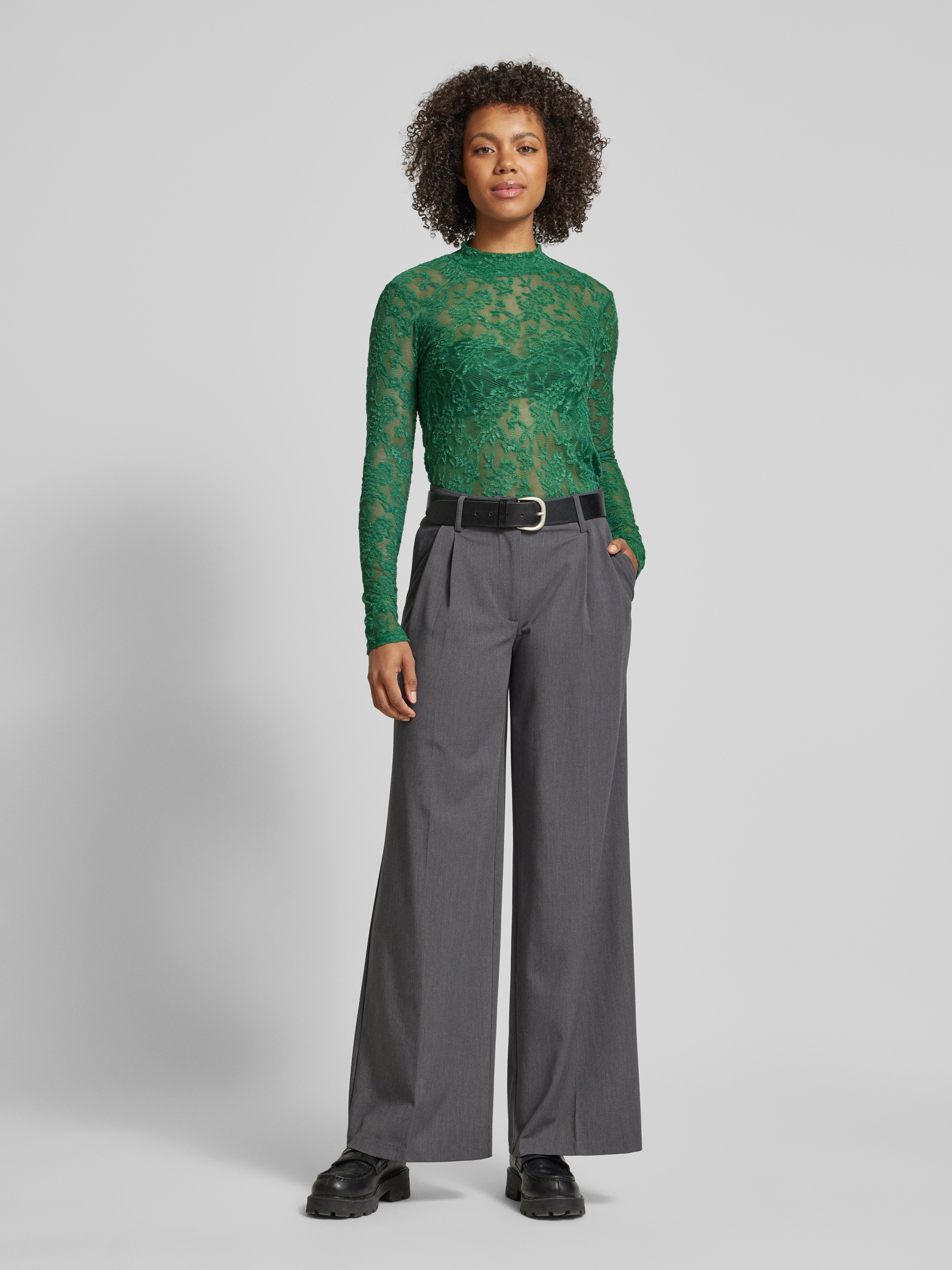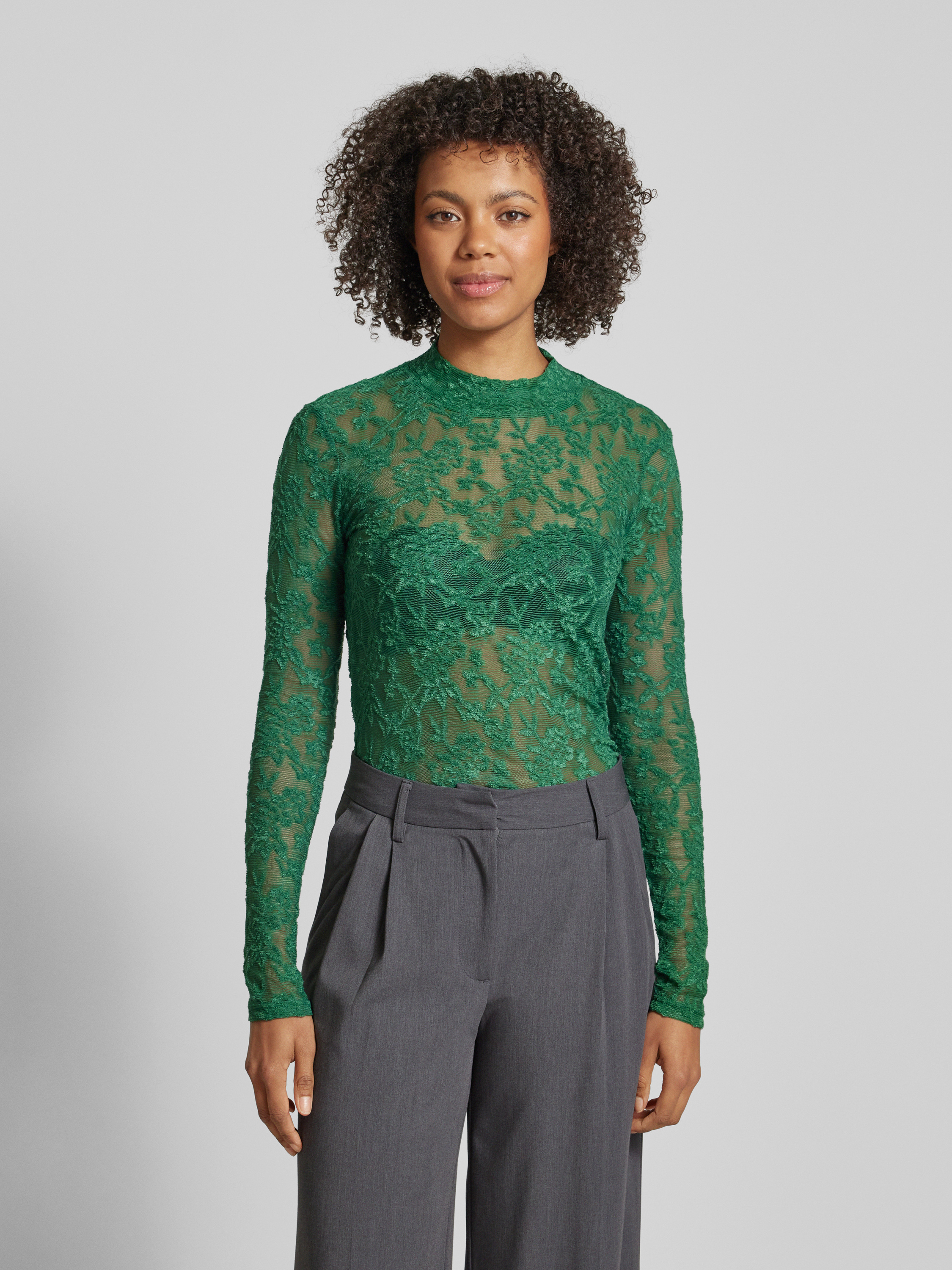 JAKE*S STUDIO WOMANSemi-transparant shirt met lange mouwen en opstaande kraag in groen