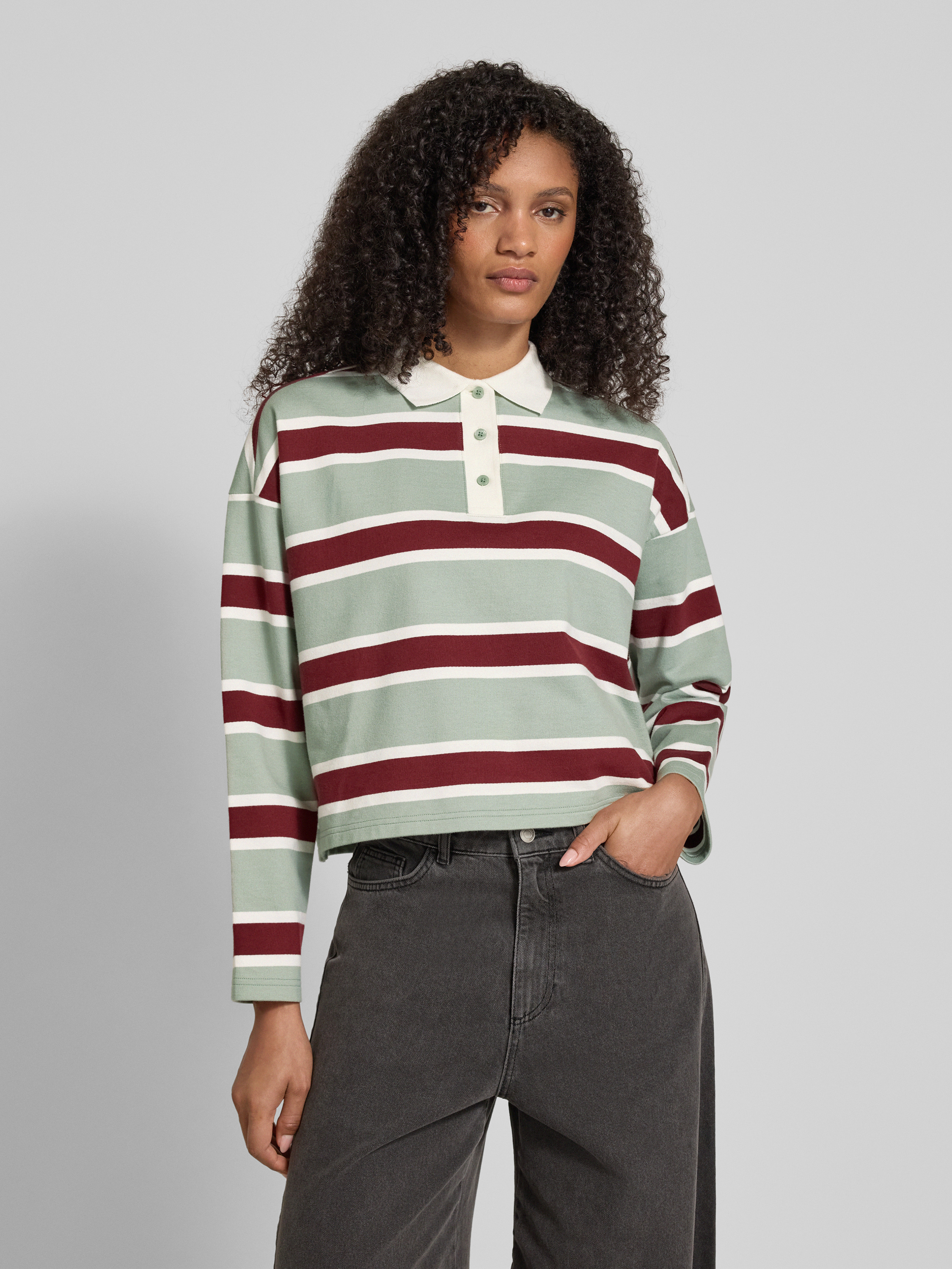 JAKE*S STUDIO WOMANShirt met lange mouwen, polokraag en knoopsluiting in lindegroen
