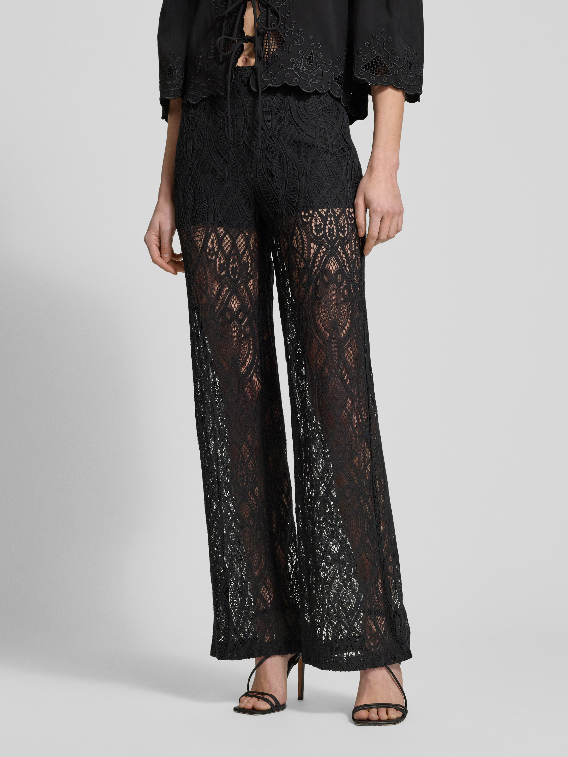 Broek met wijde pijpen en kant in zwart