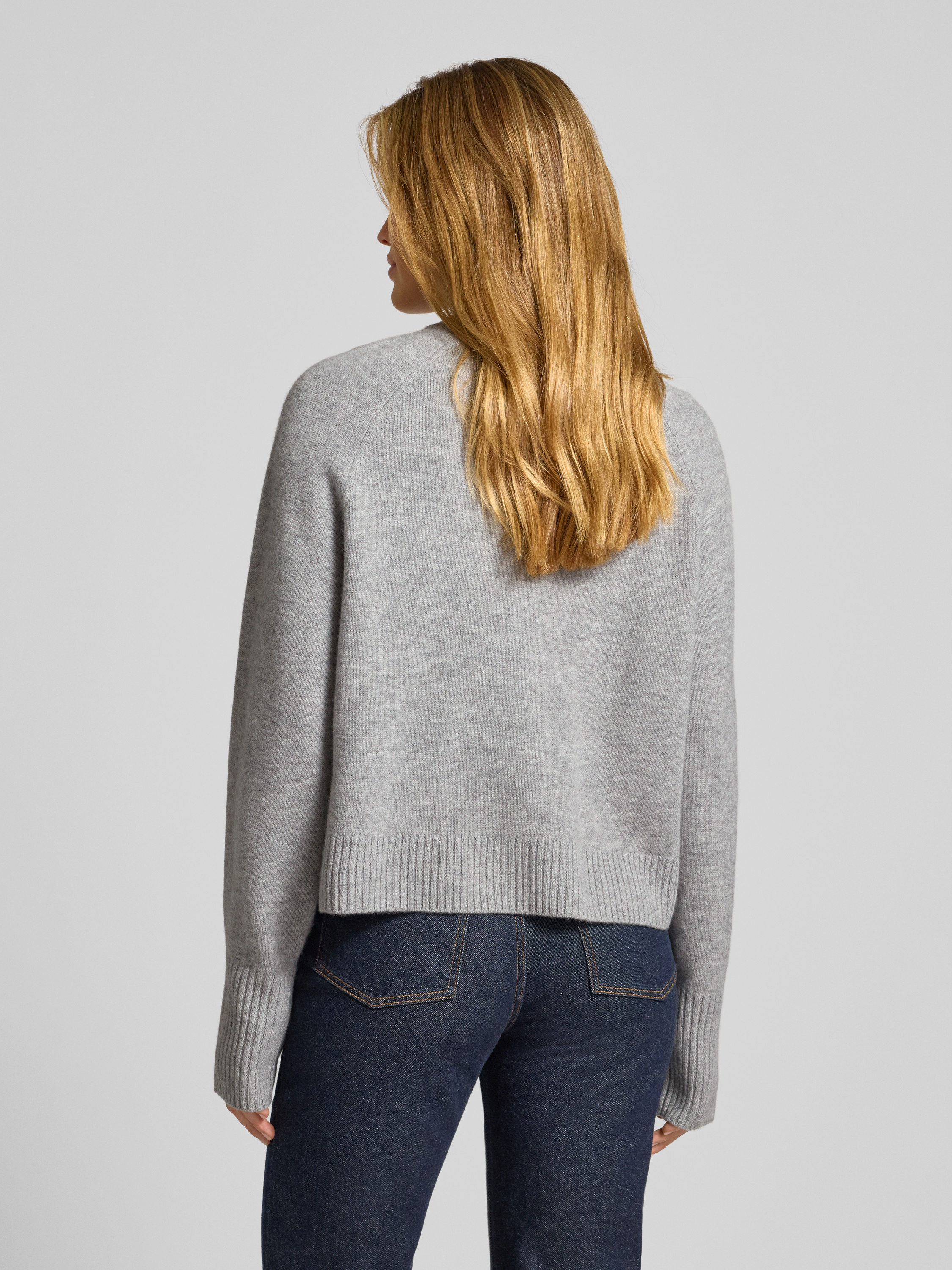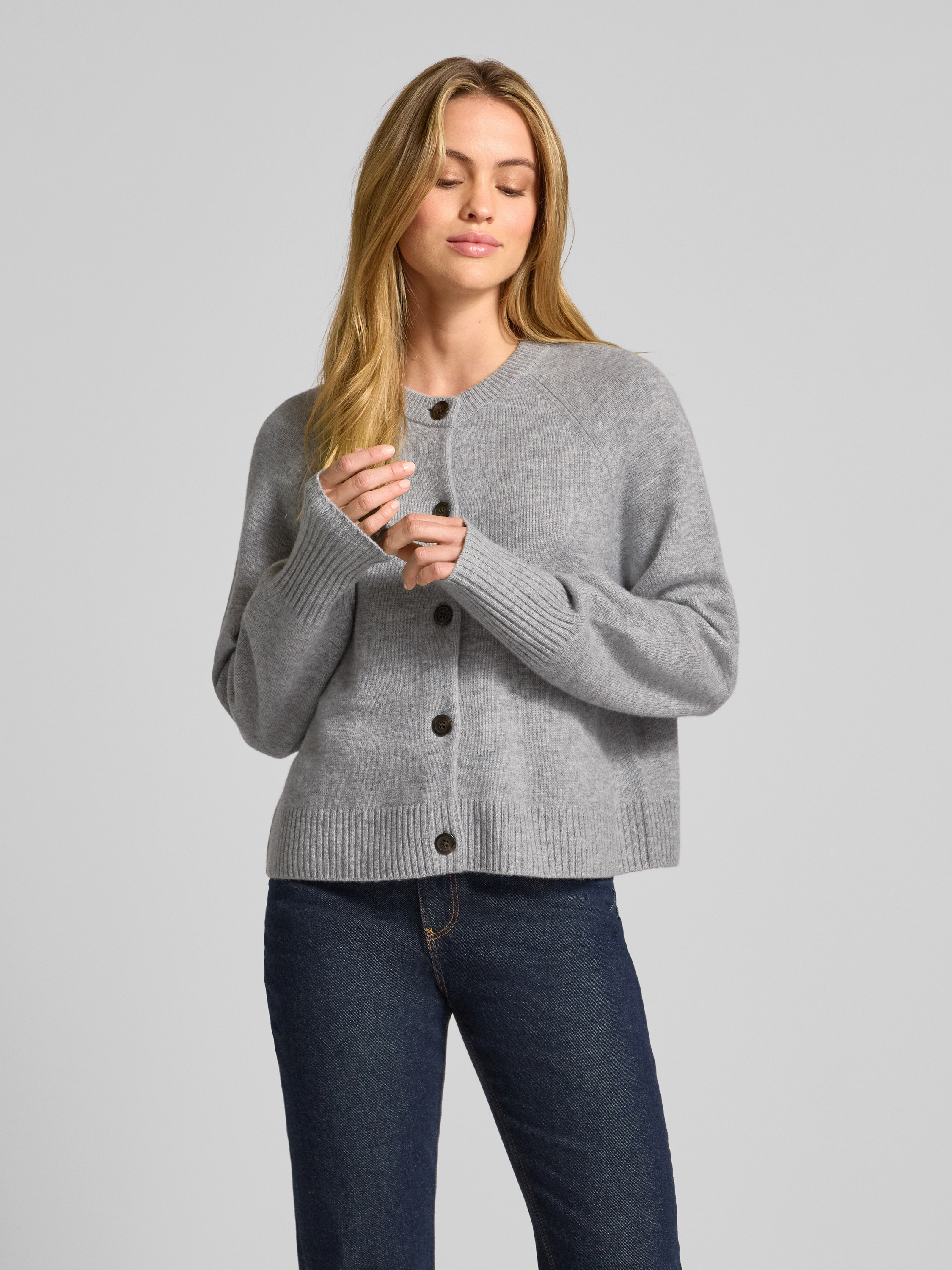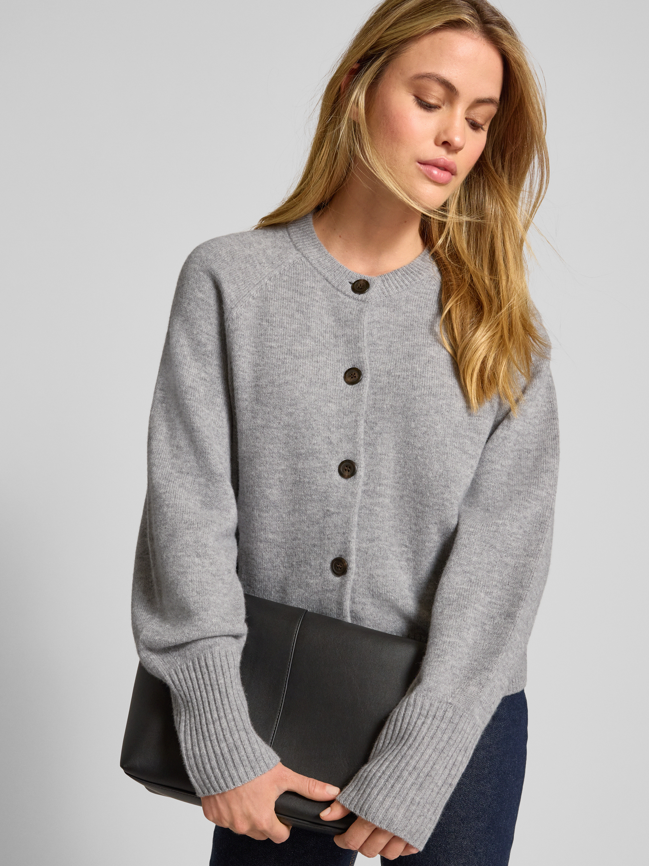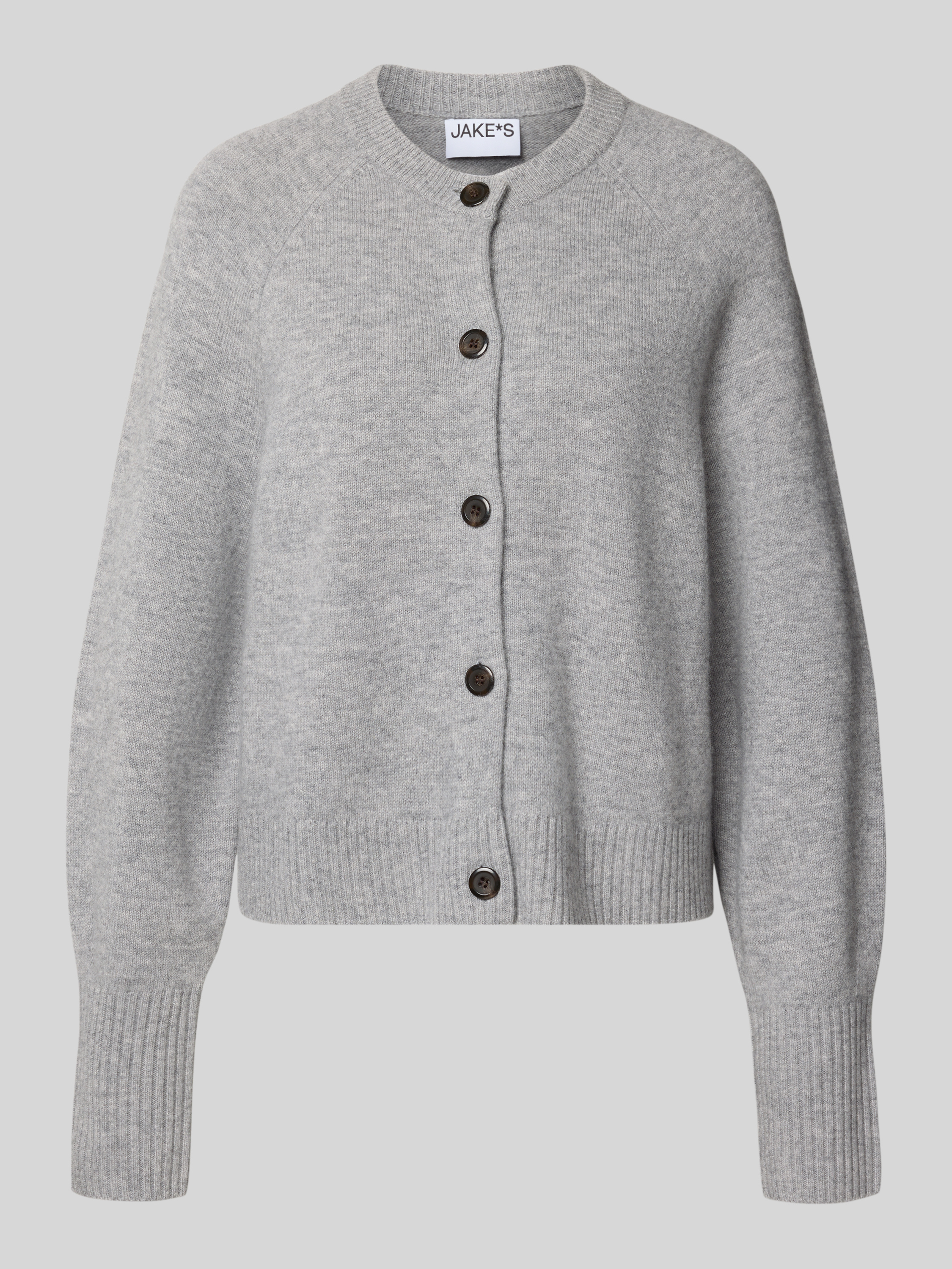 Gebreid jack van wol met ronde hals in zilver gemêleerd