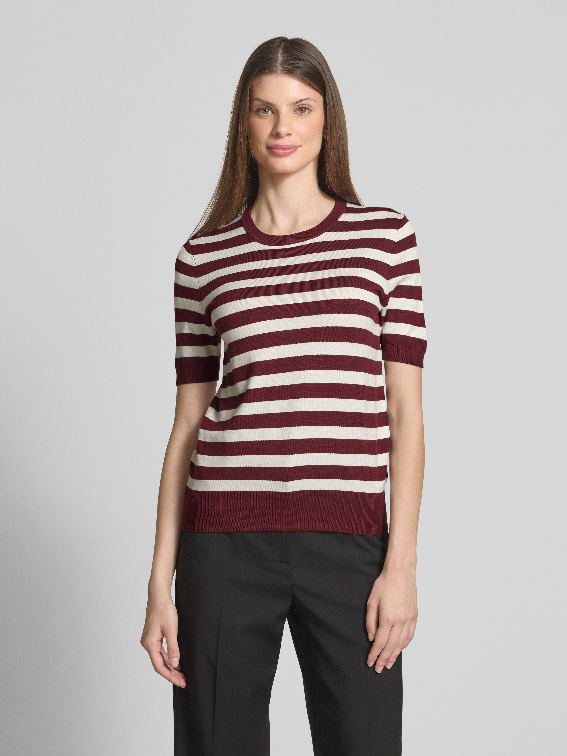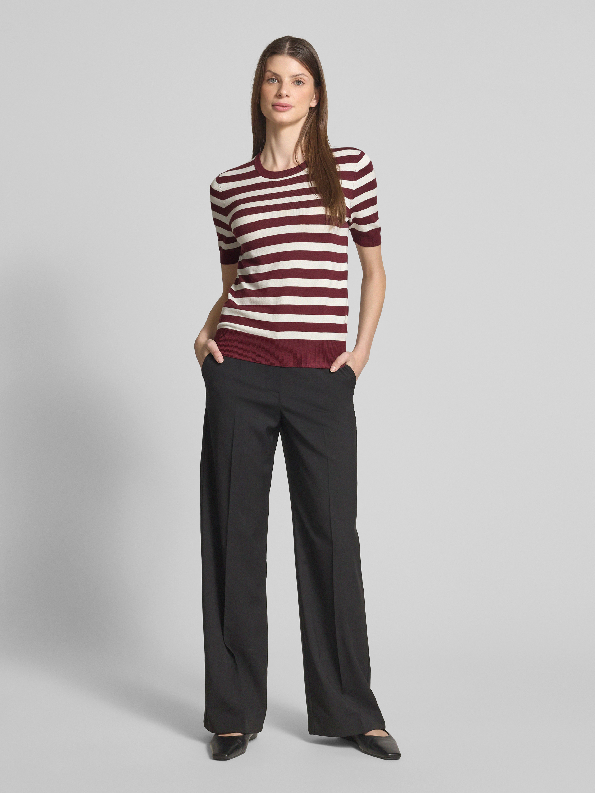 Gebreid shirt van viscosemix met streepmotief in donkerrood