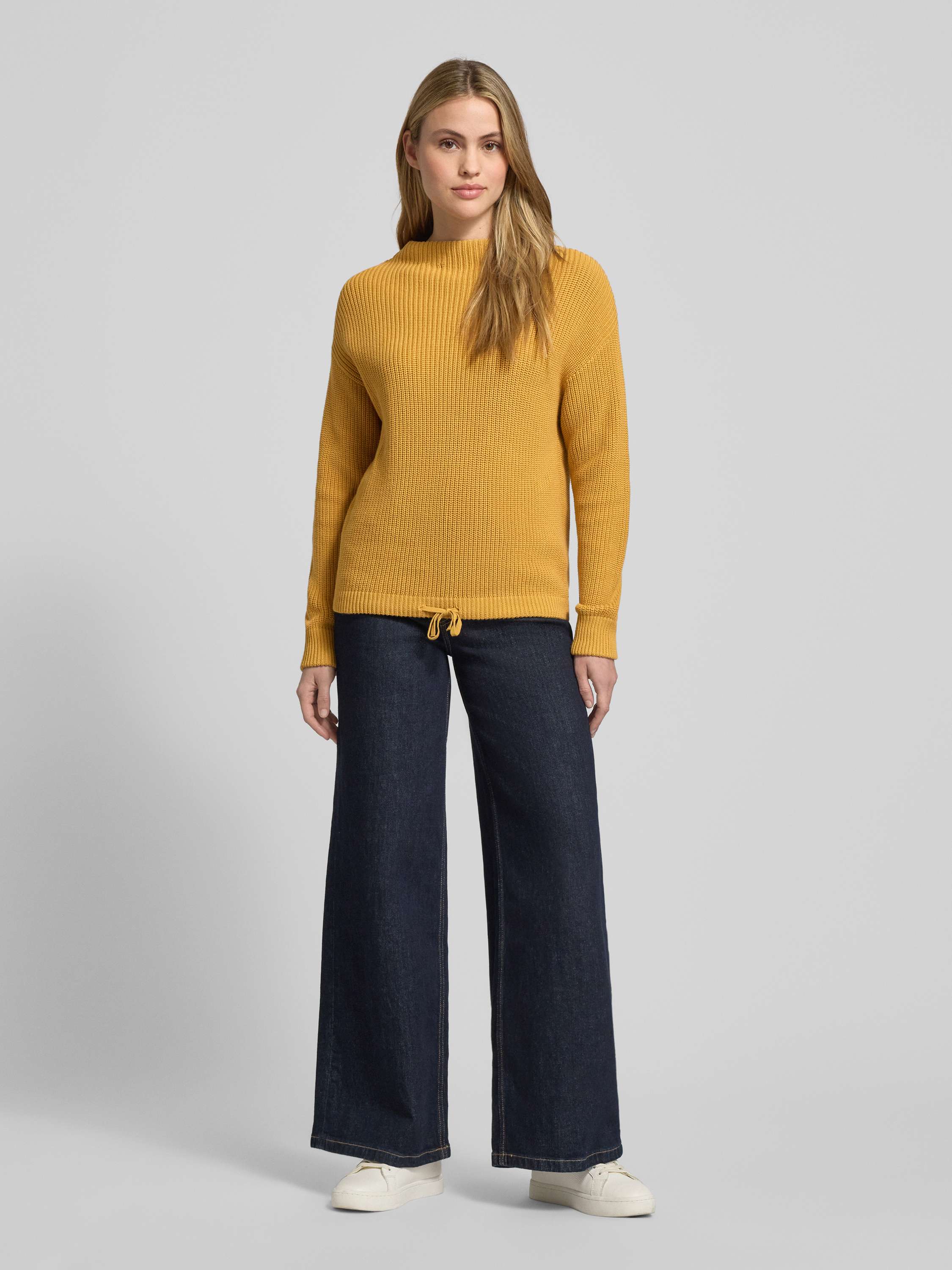 Jake*s CasualGebreide pullover met opstaande kraag en tunnelkoord in mosterdgeel