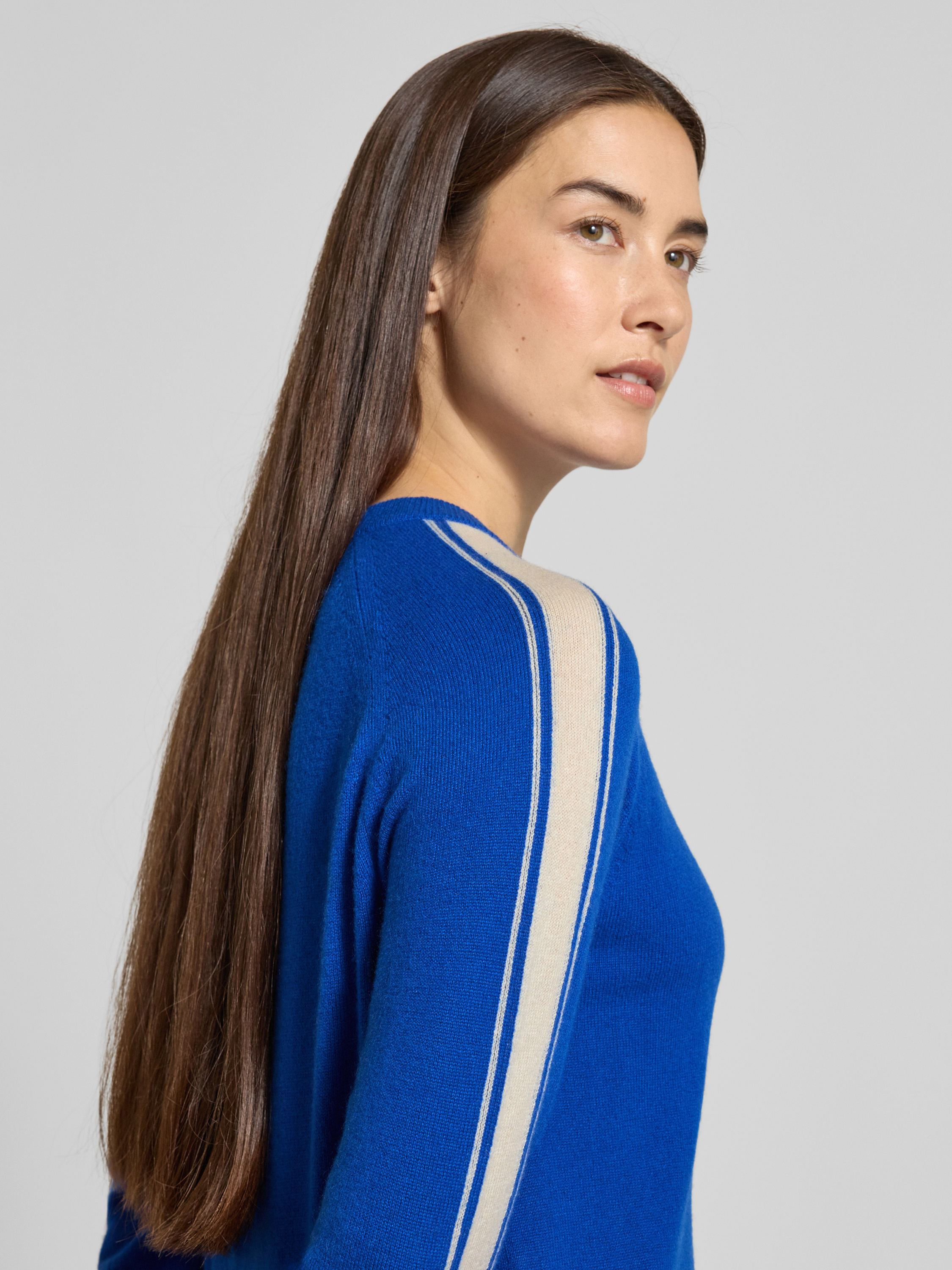 Gebreide pullover van kasjmier met contraststrepen in blauw