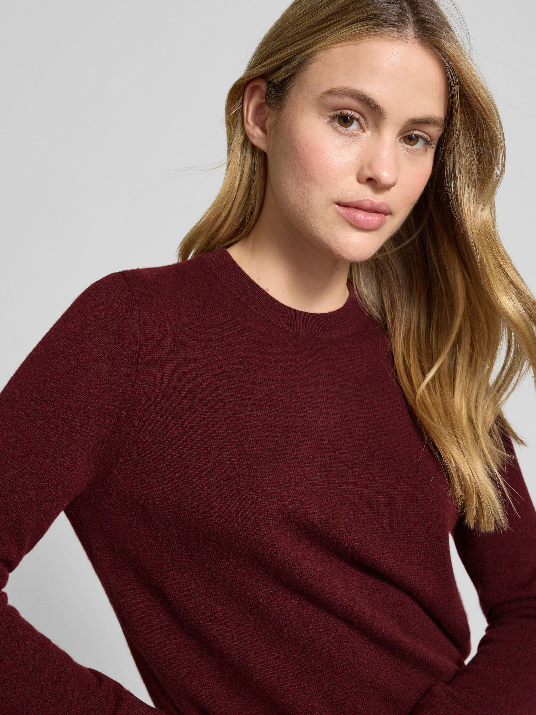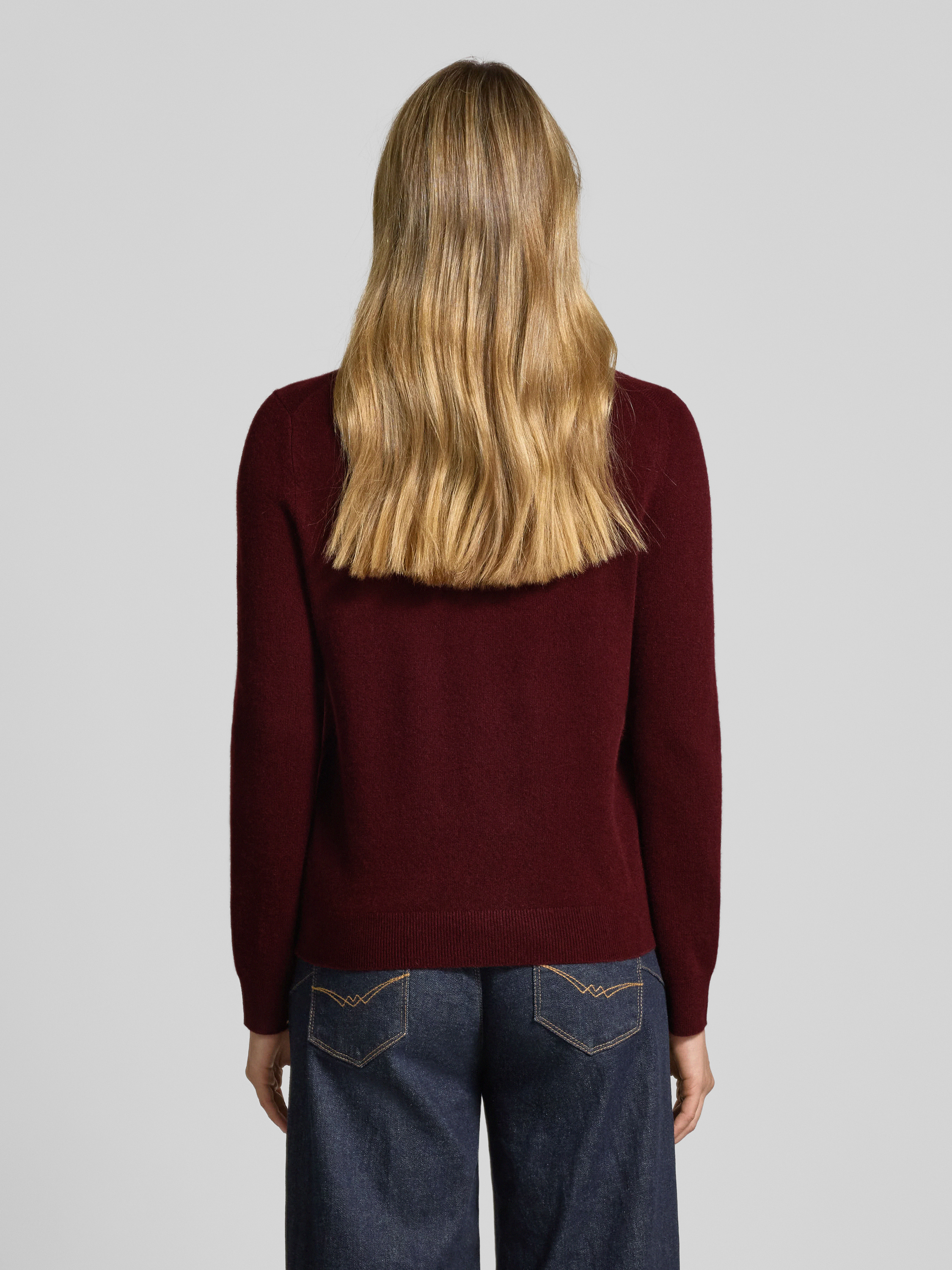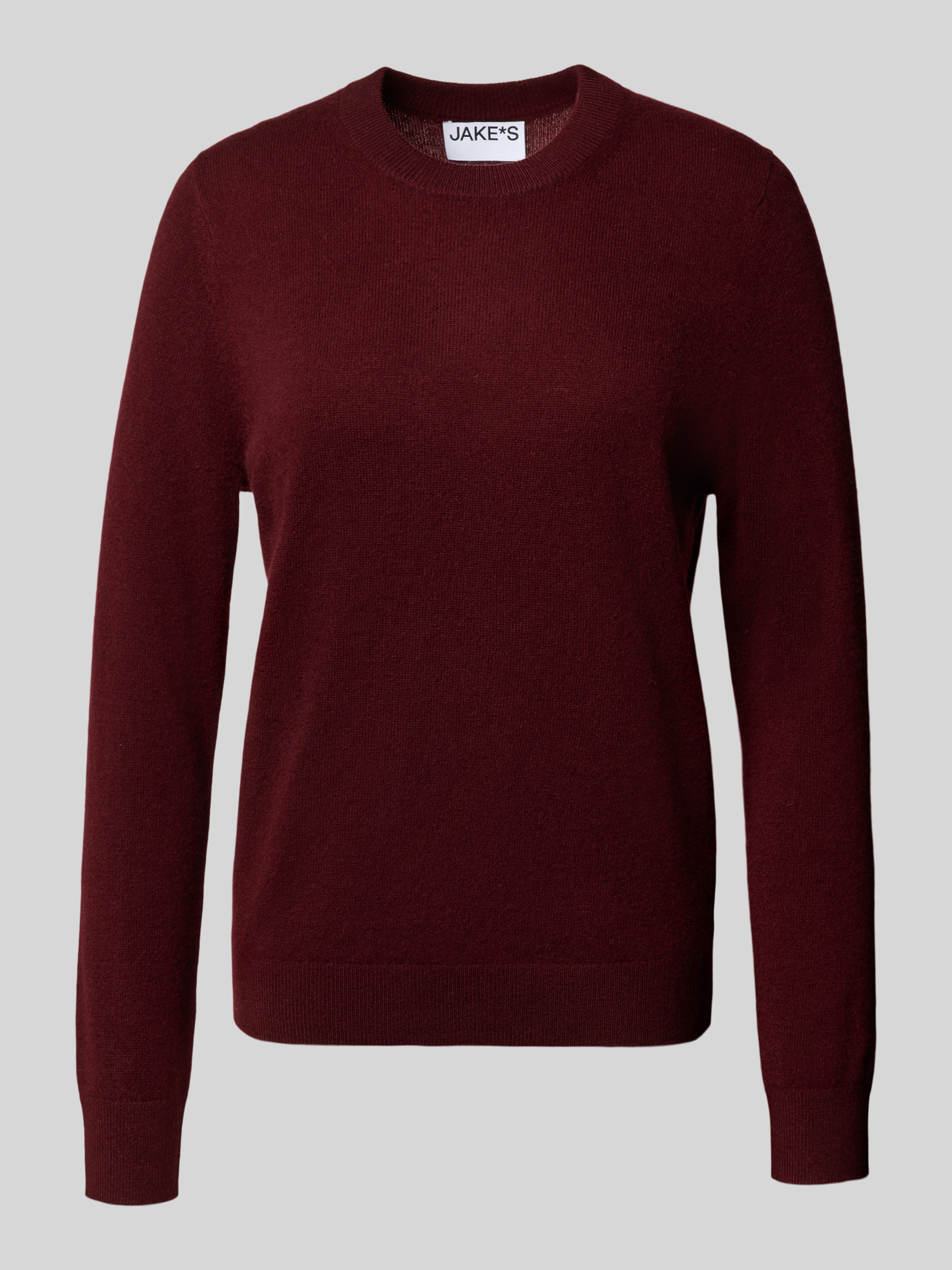 Gebreide pullover van kasjmier met ronde hals in bordeaux