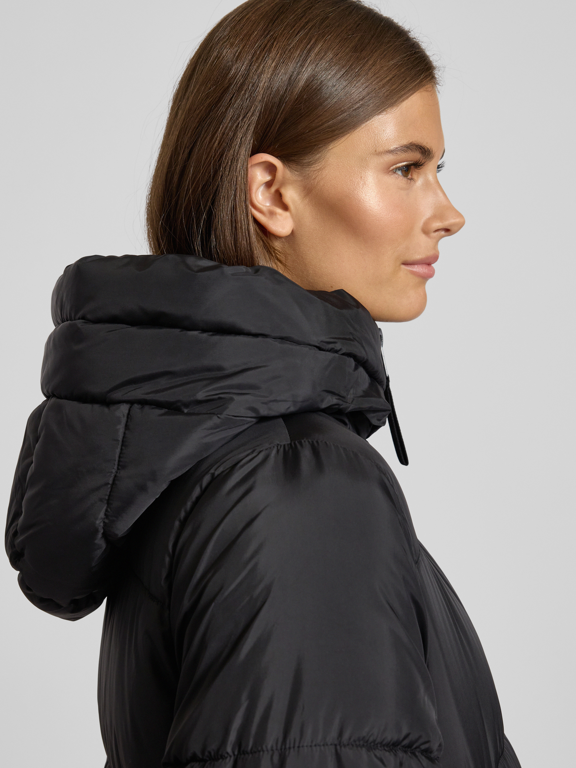 Gewatteerde jas met capuchon in zwart