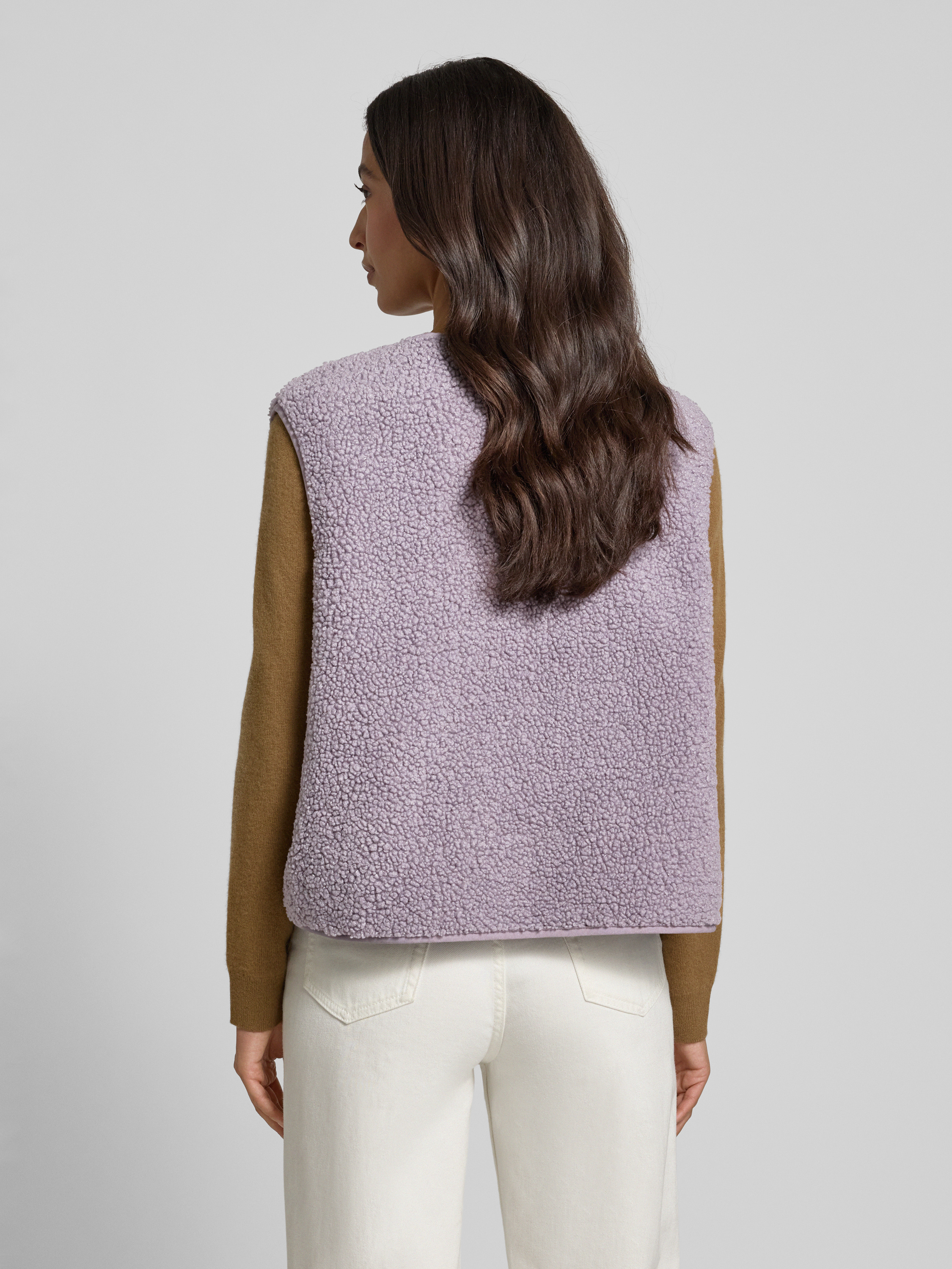 Gilet van teddybont met steekzakken in lavendel