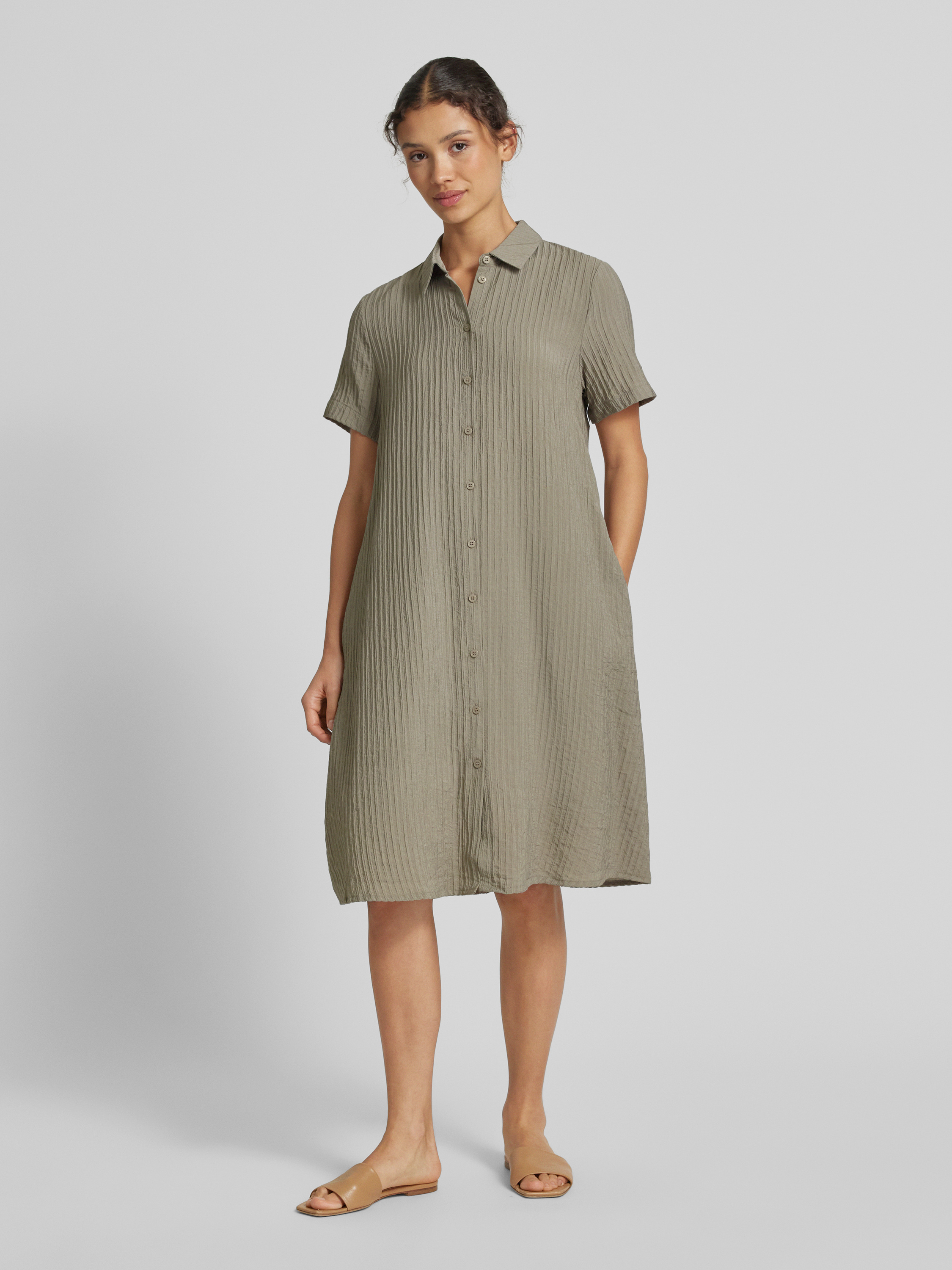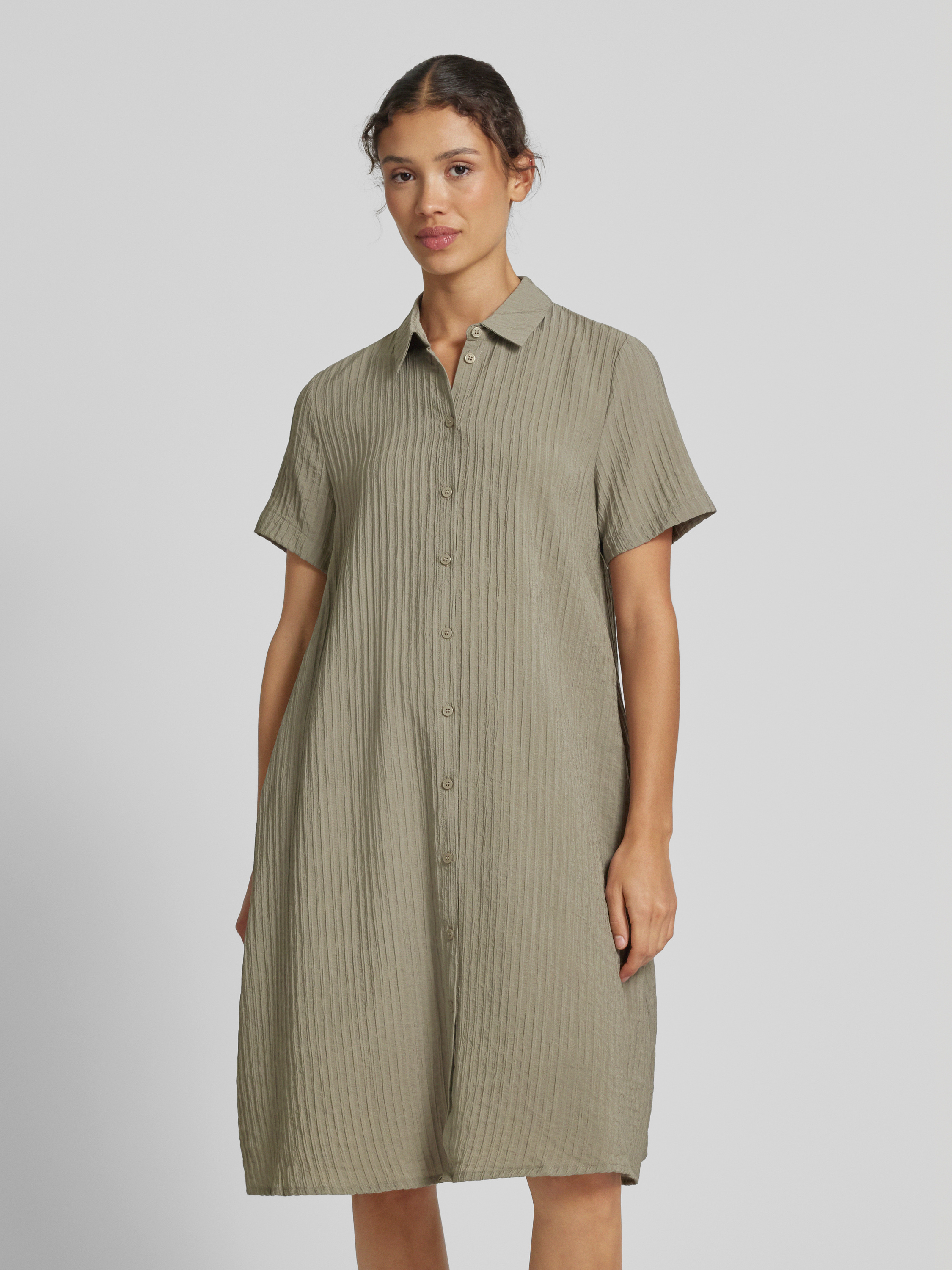 Knielange overhemdjurk met structuurmotief in lindegroen