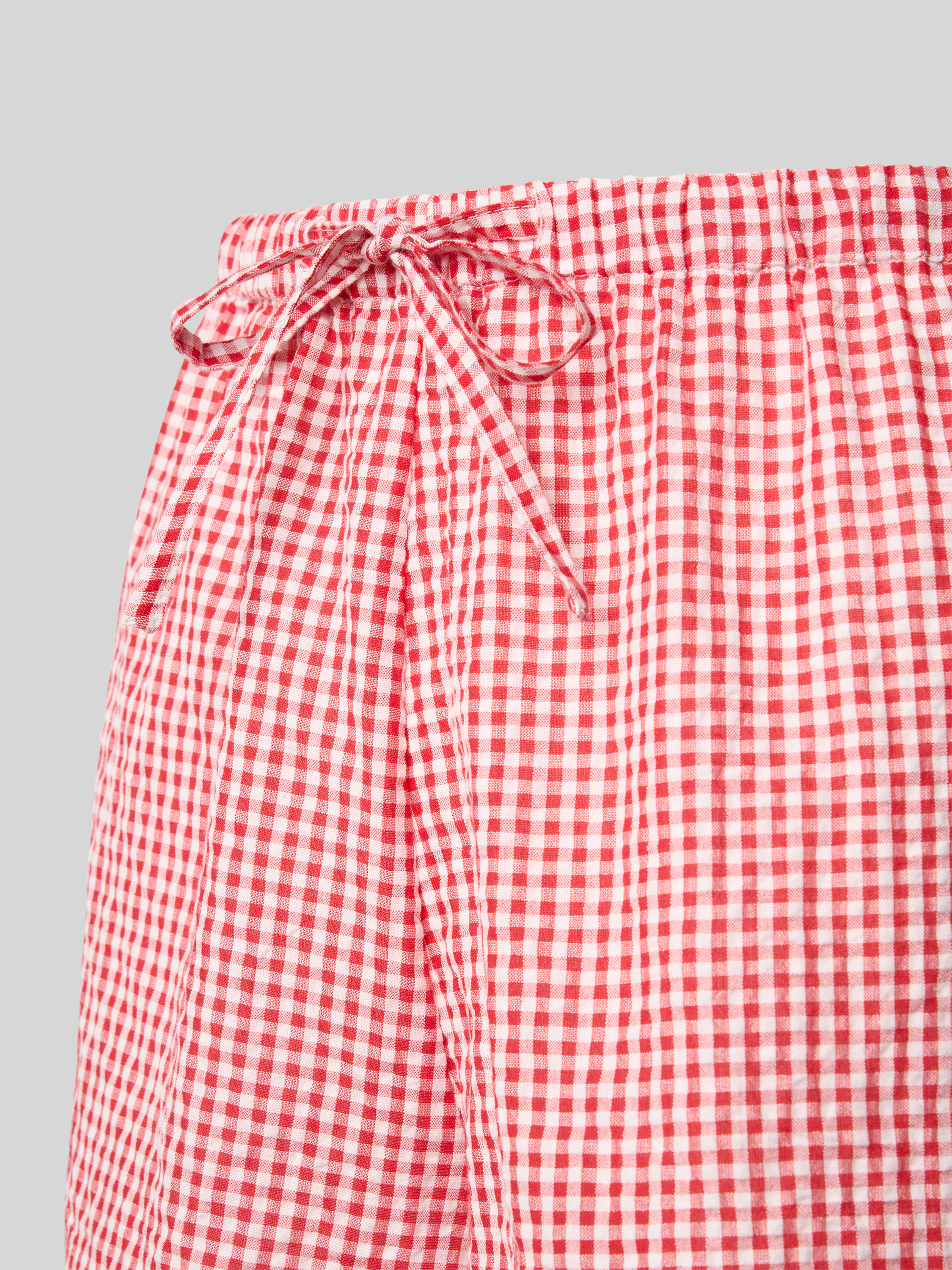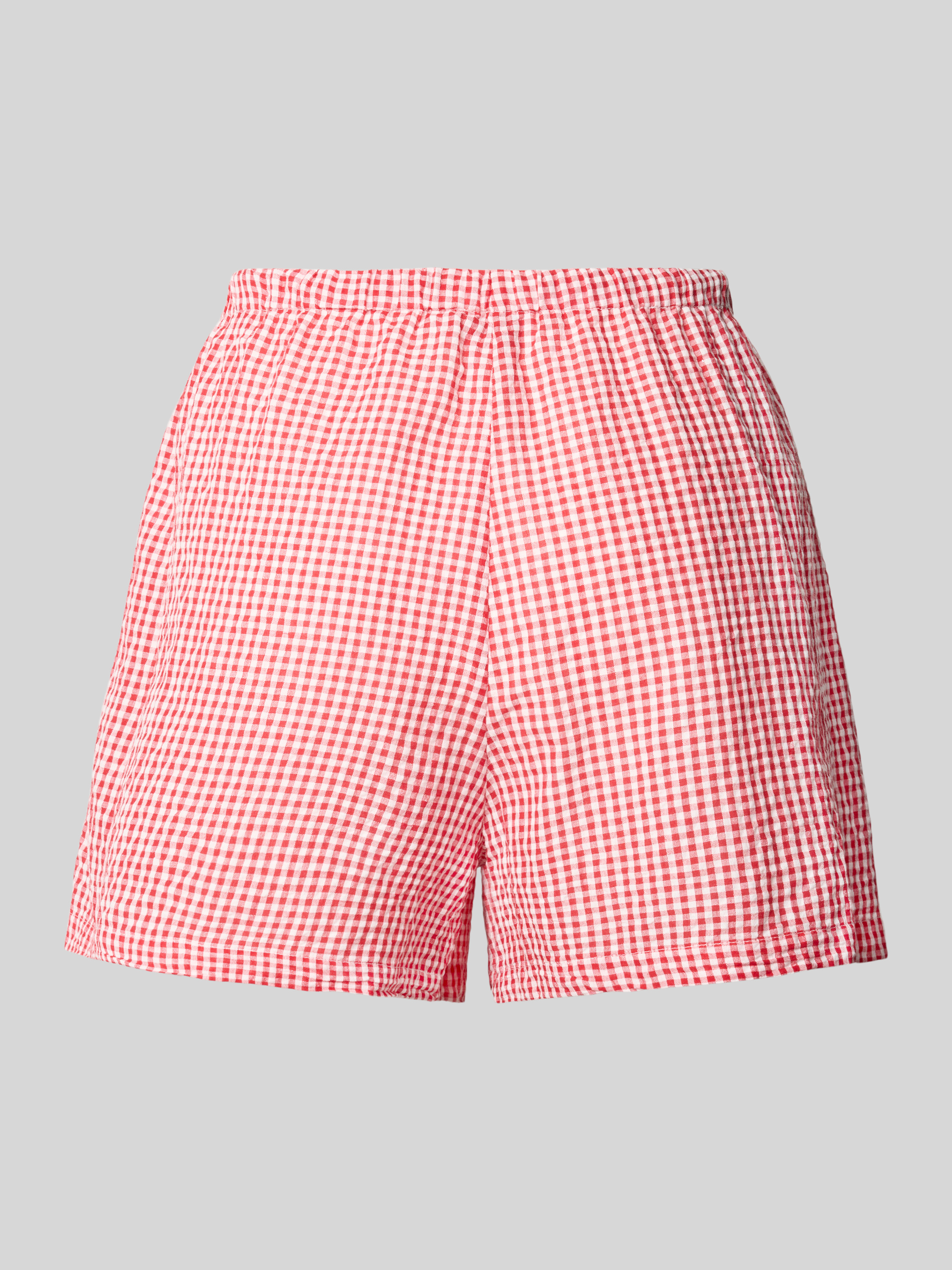 Korte pyjamabroek met elastische band en tunnelkoord in kersenrood