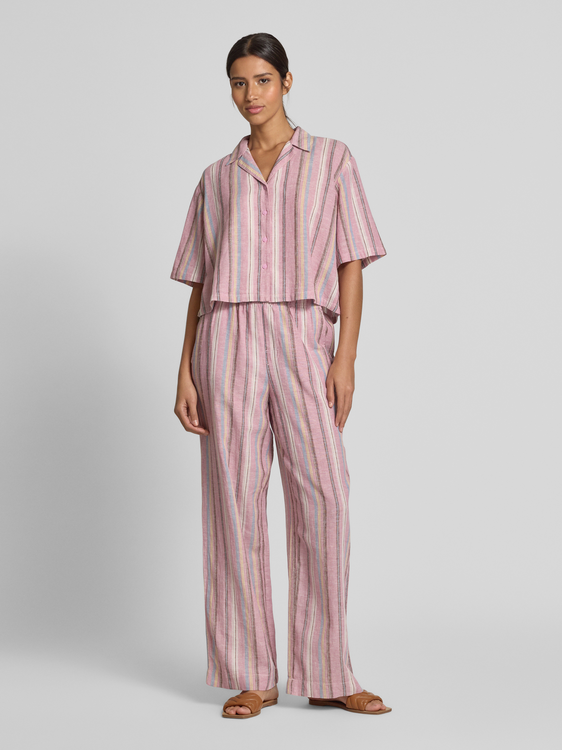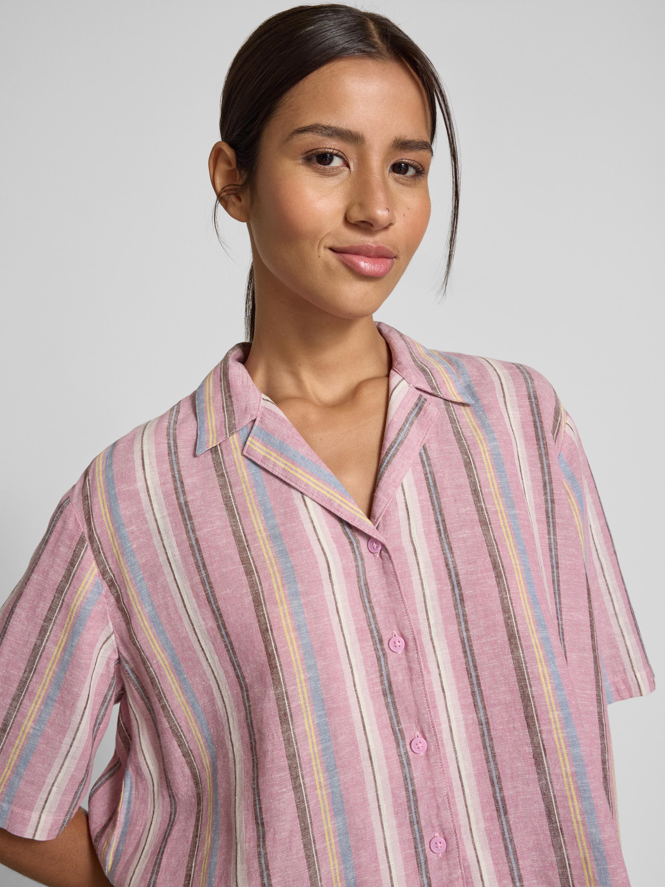 Linnen blouse met streepmotief in mauve