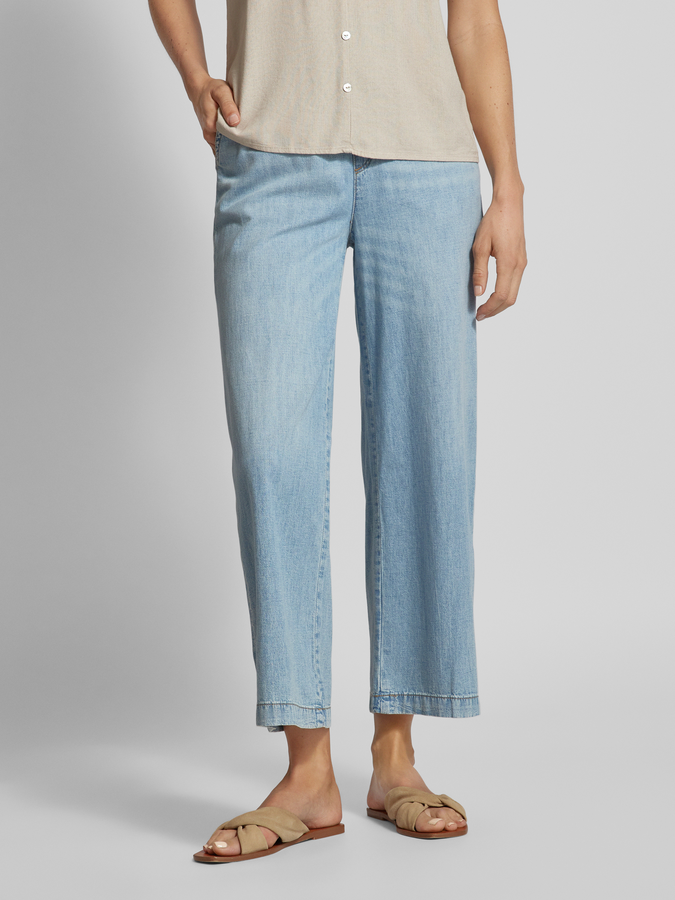Loose fit jeansculotte met elastische band in lichtblauw gemêleerd