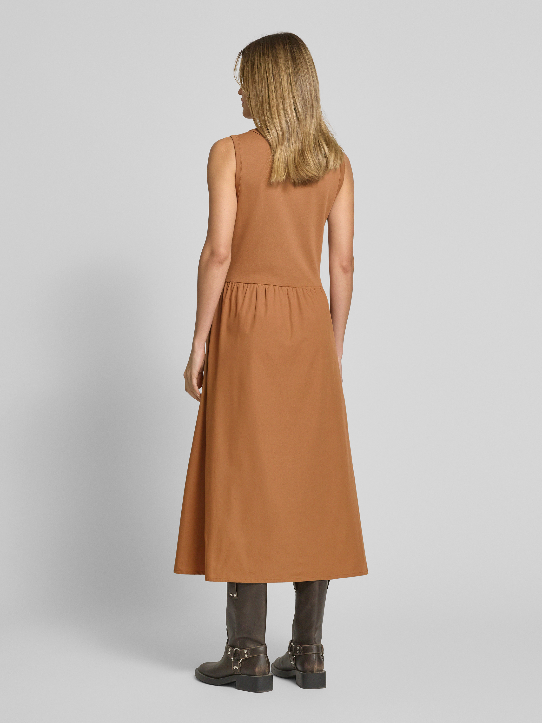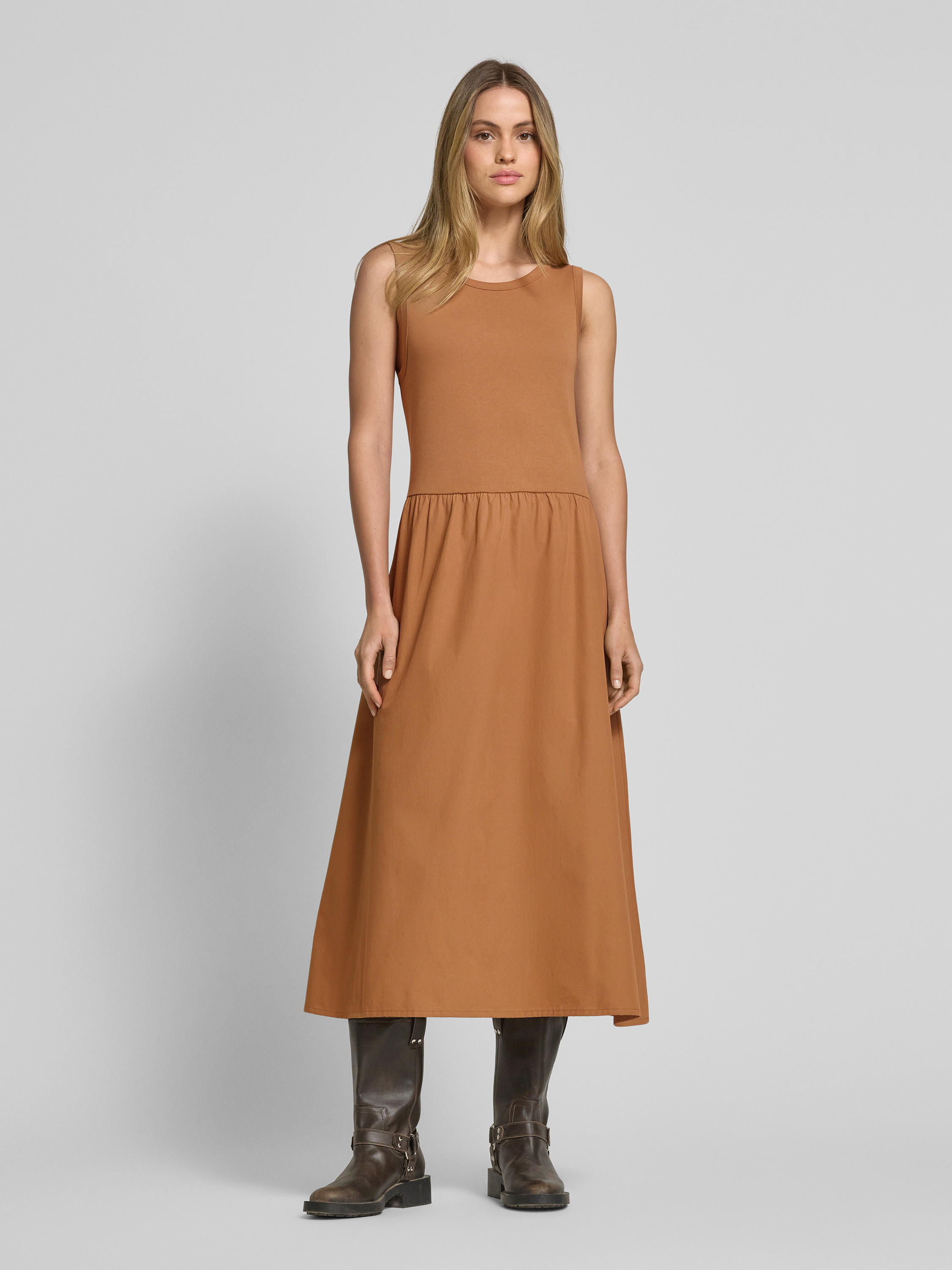Midi-jurk met steekzakken in middenbruin