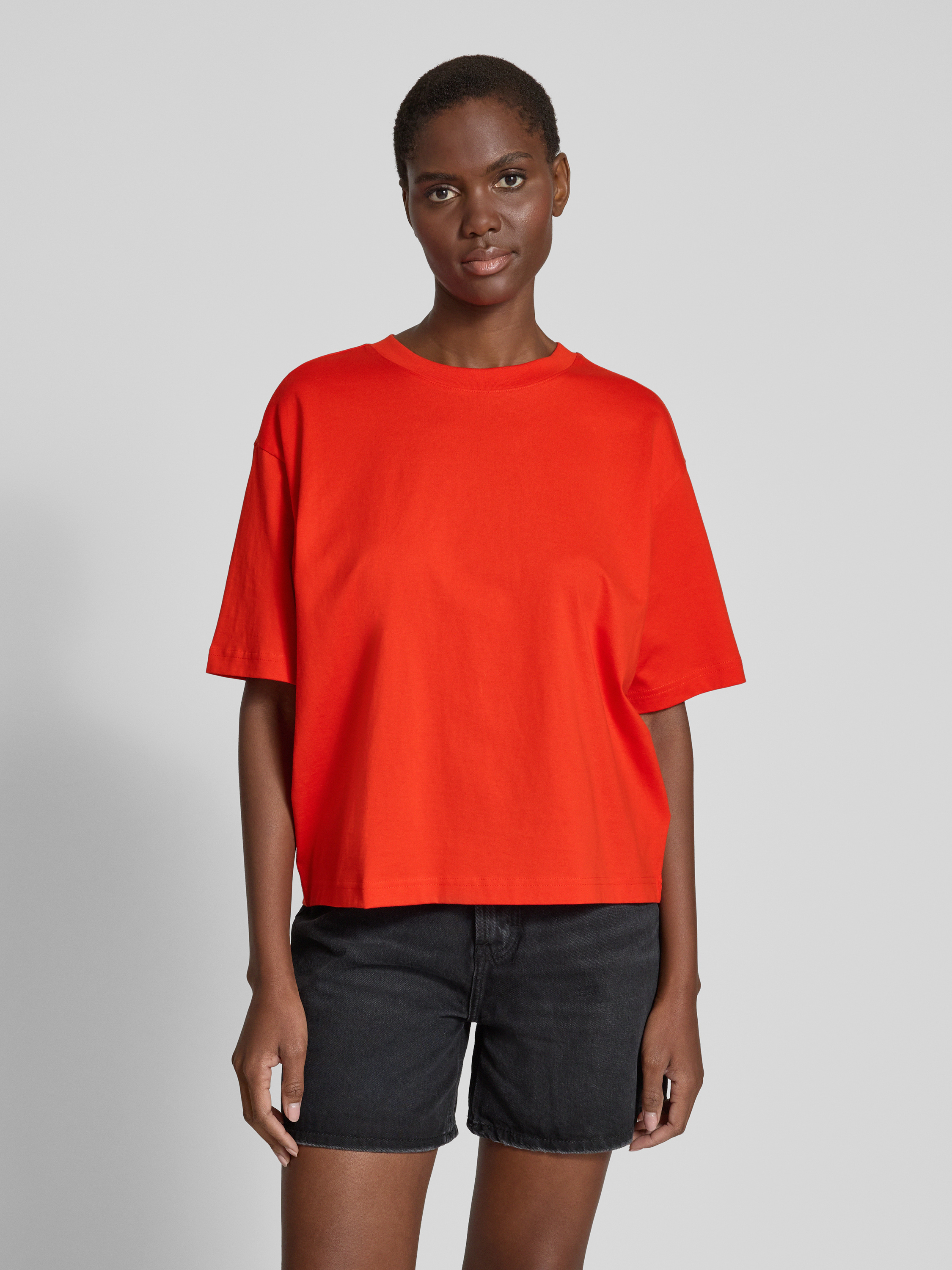 Jake*s CasualOversized T-shirt met geribde ronde hals in kersenrood