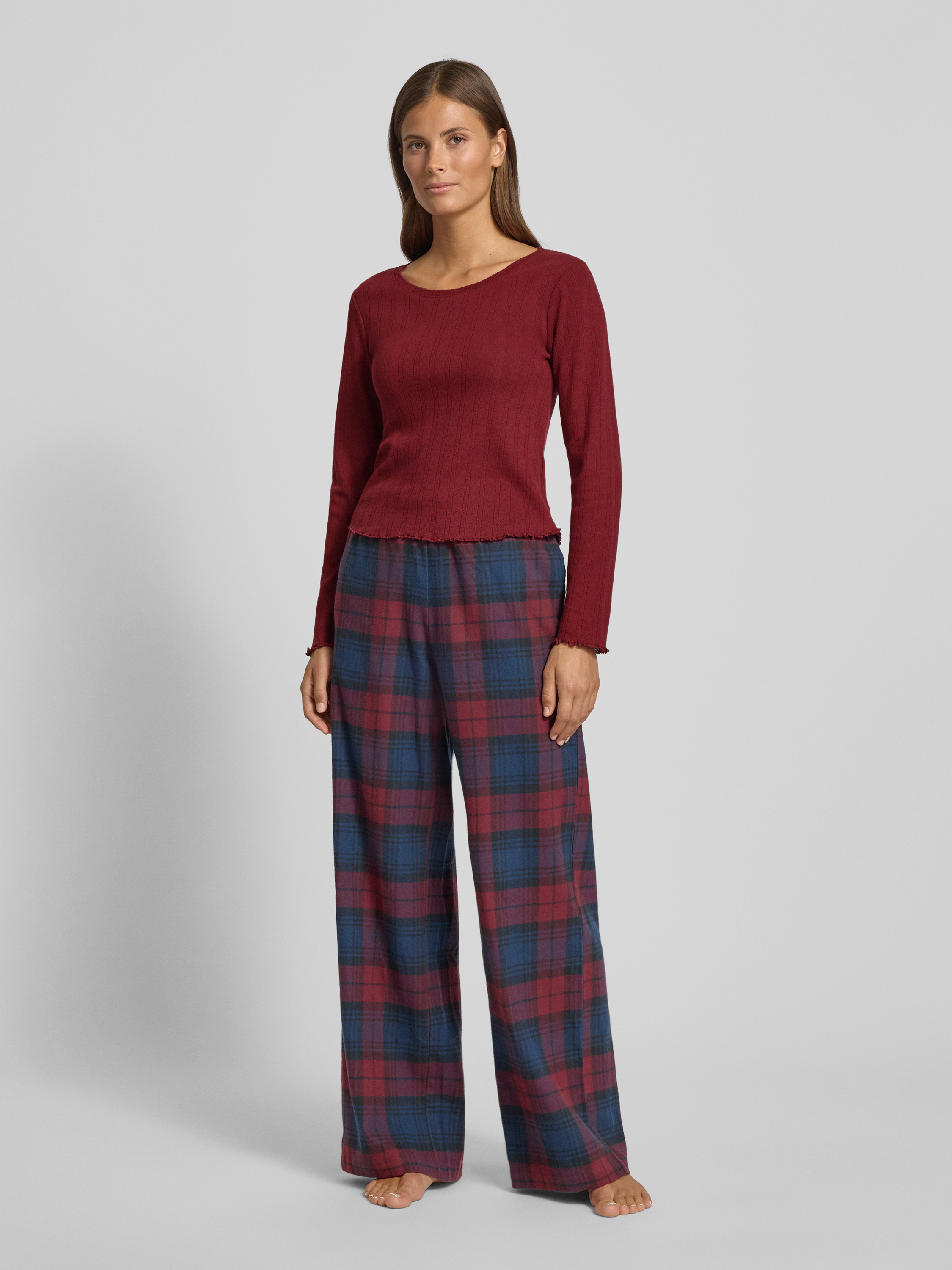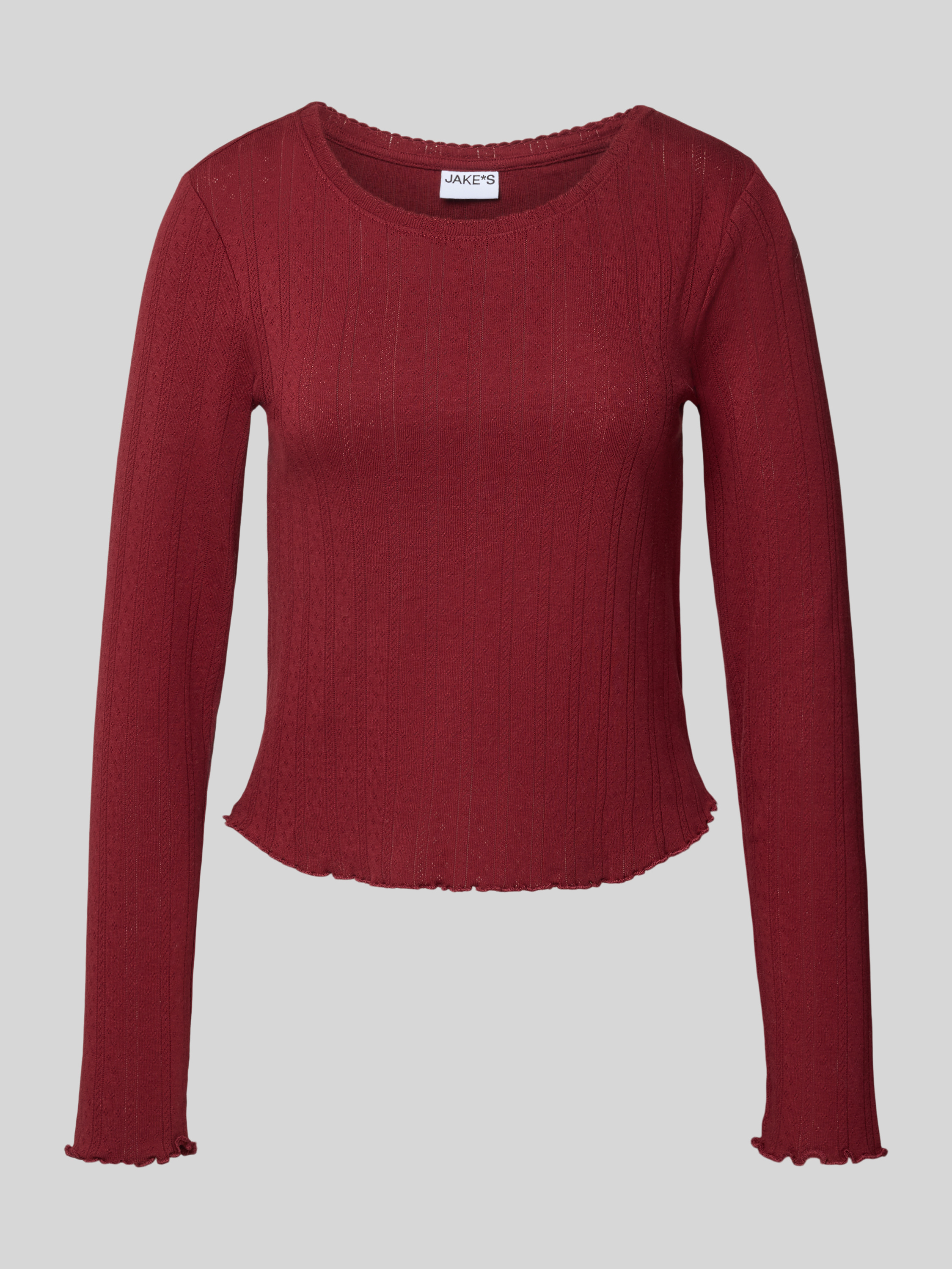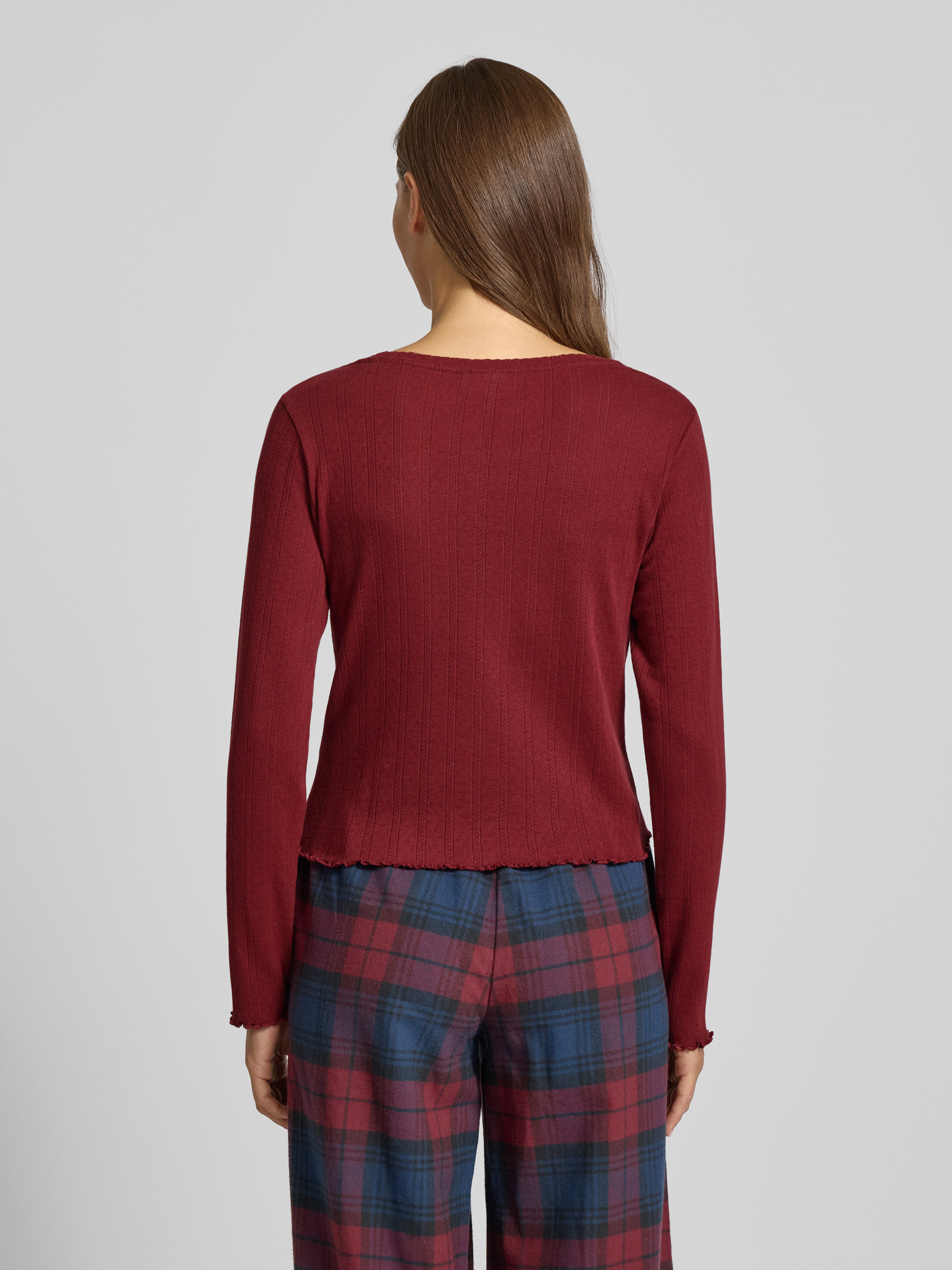 Jake*s CasualPyjamabovendeel met ajourpatroon in bordeaux