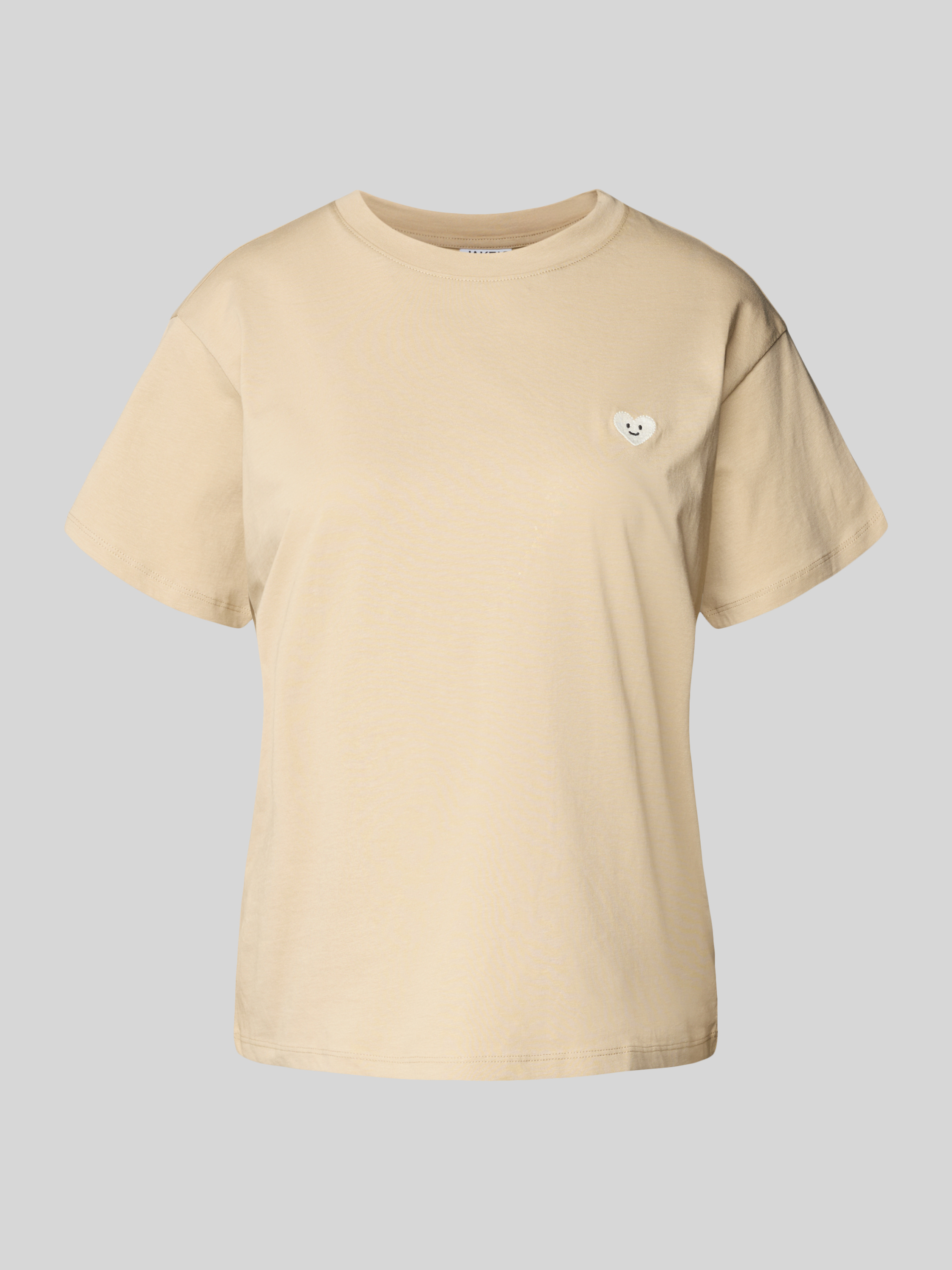 Jake*s CasualPyjamabovendeel met motiefstitching in zand