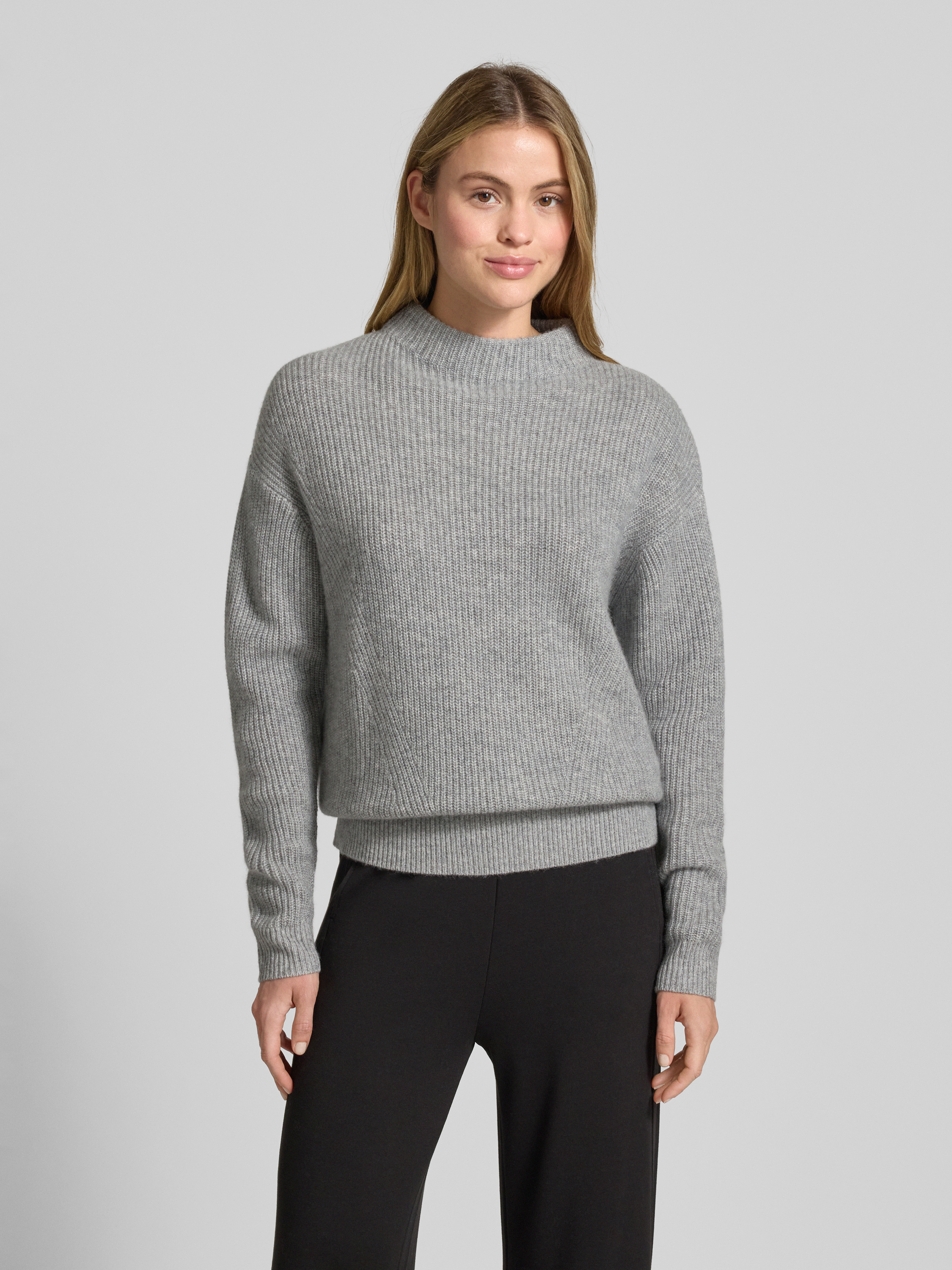 Regular fit kasjmier pullover in gebreide look in zilver gemêleerd