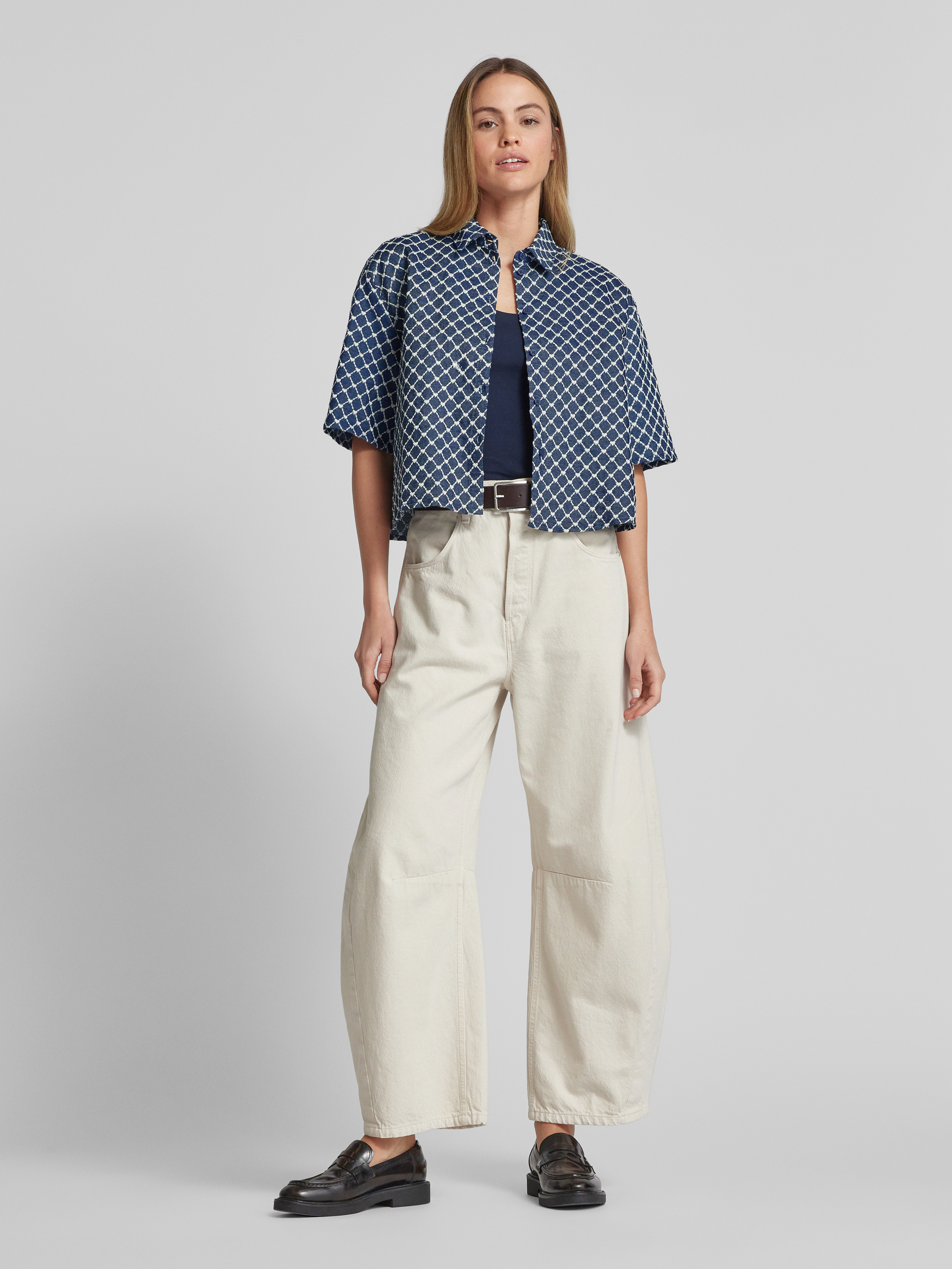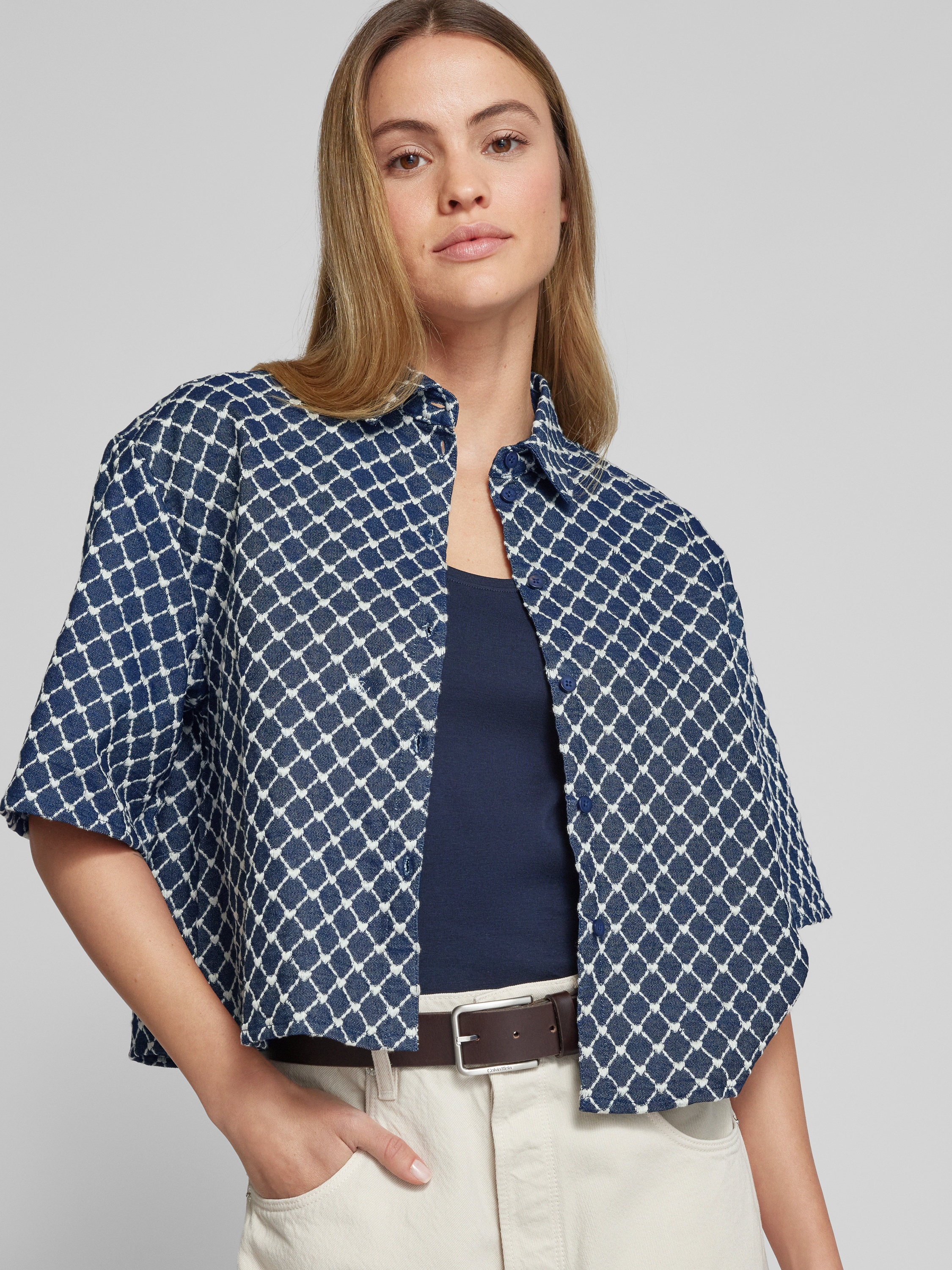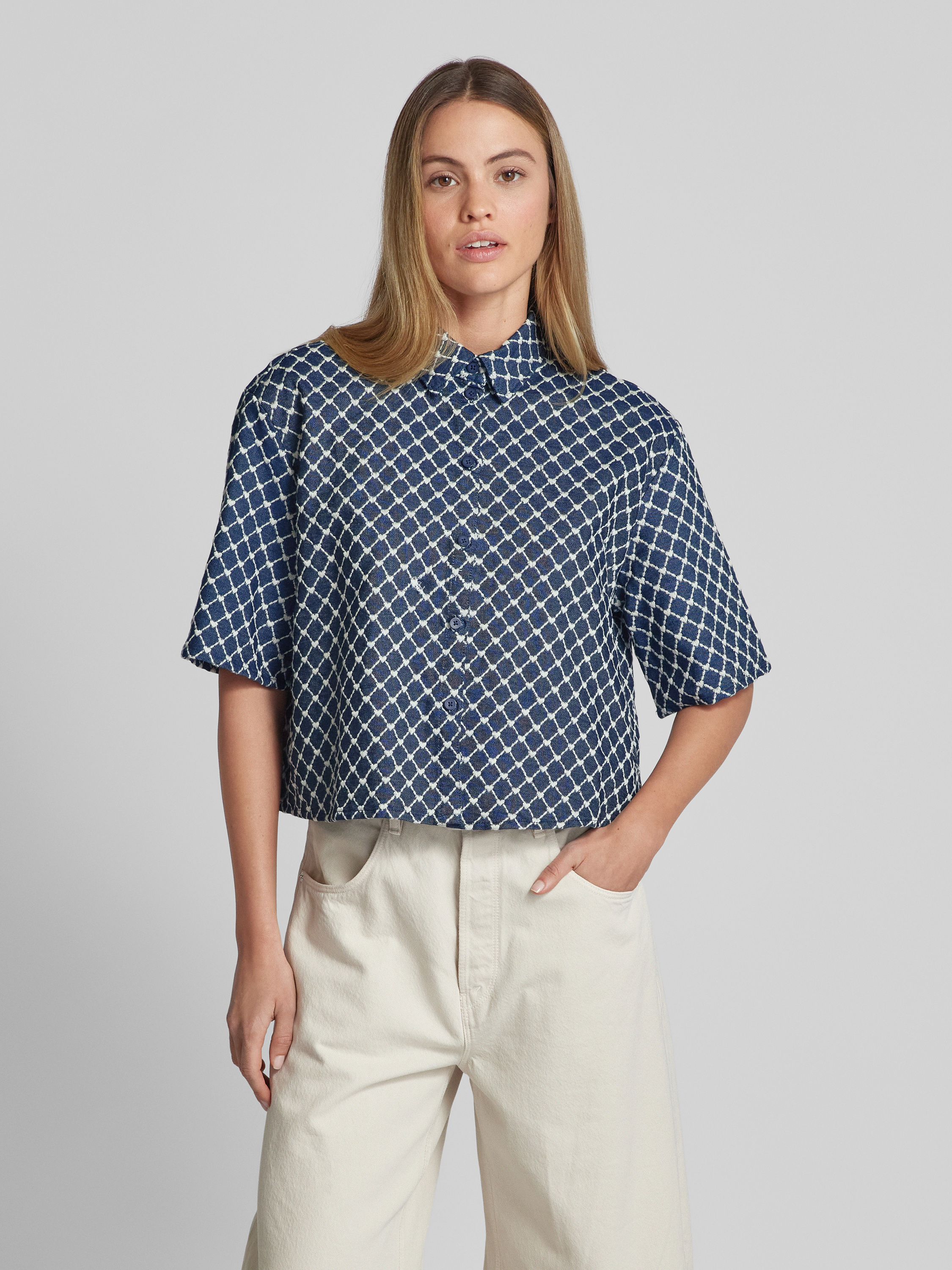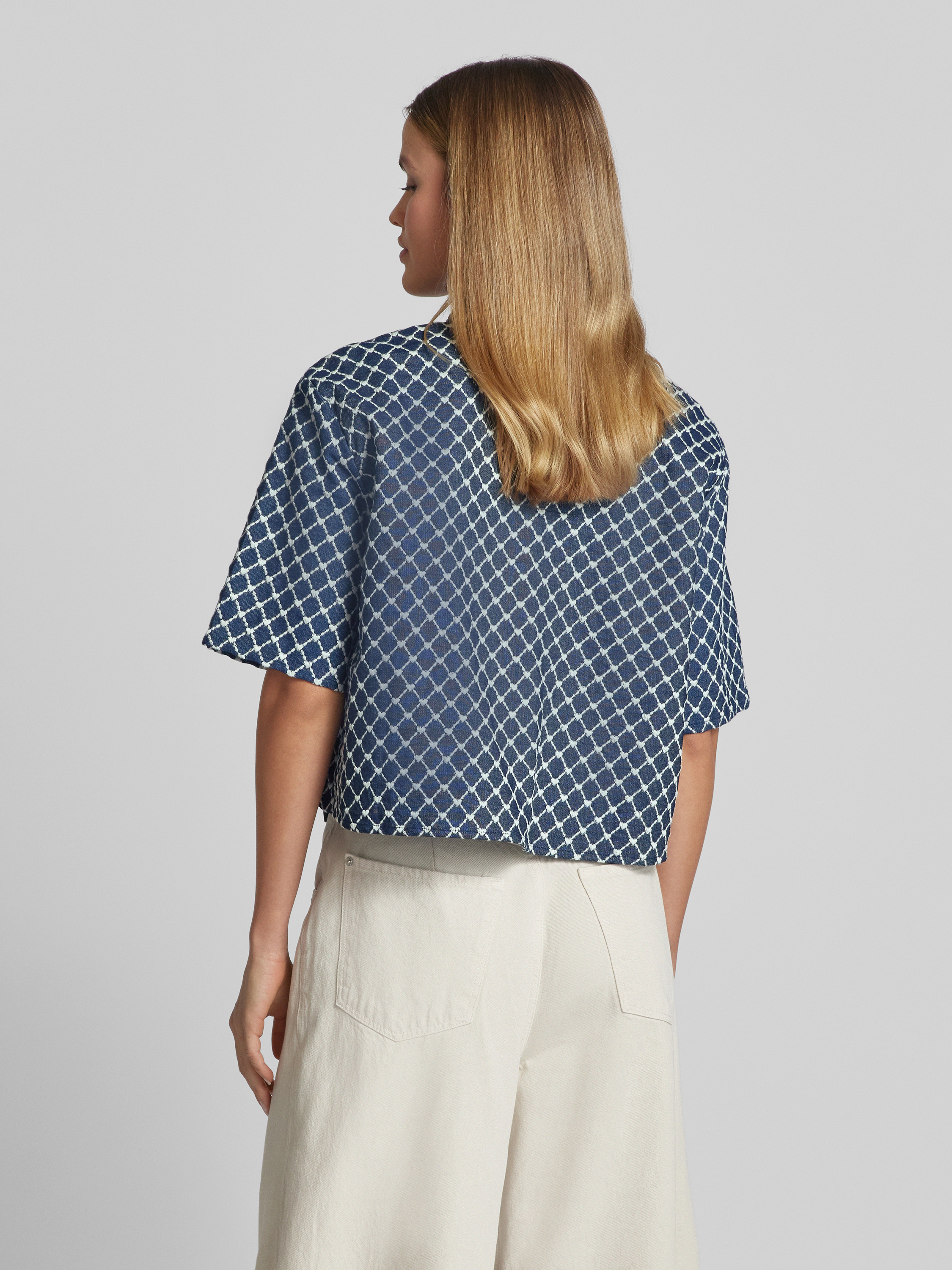 Relaxed fit blouse met structuurmotief in jeansblauw