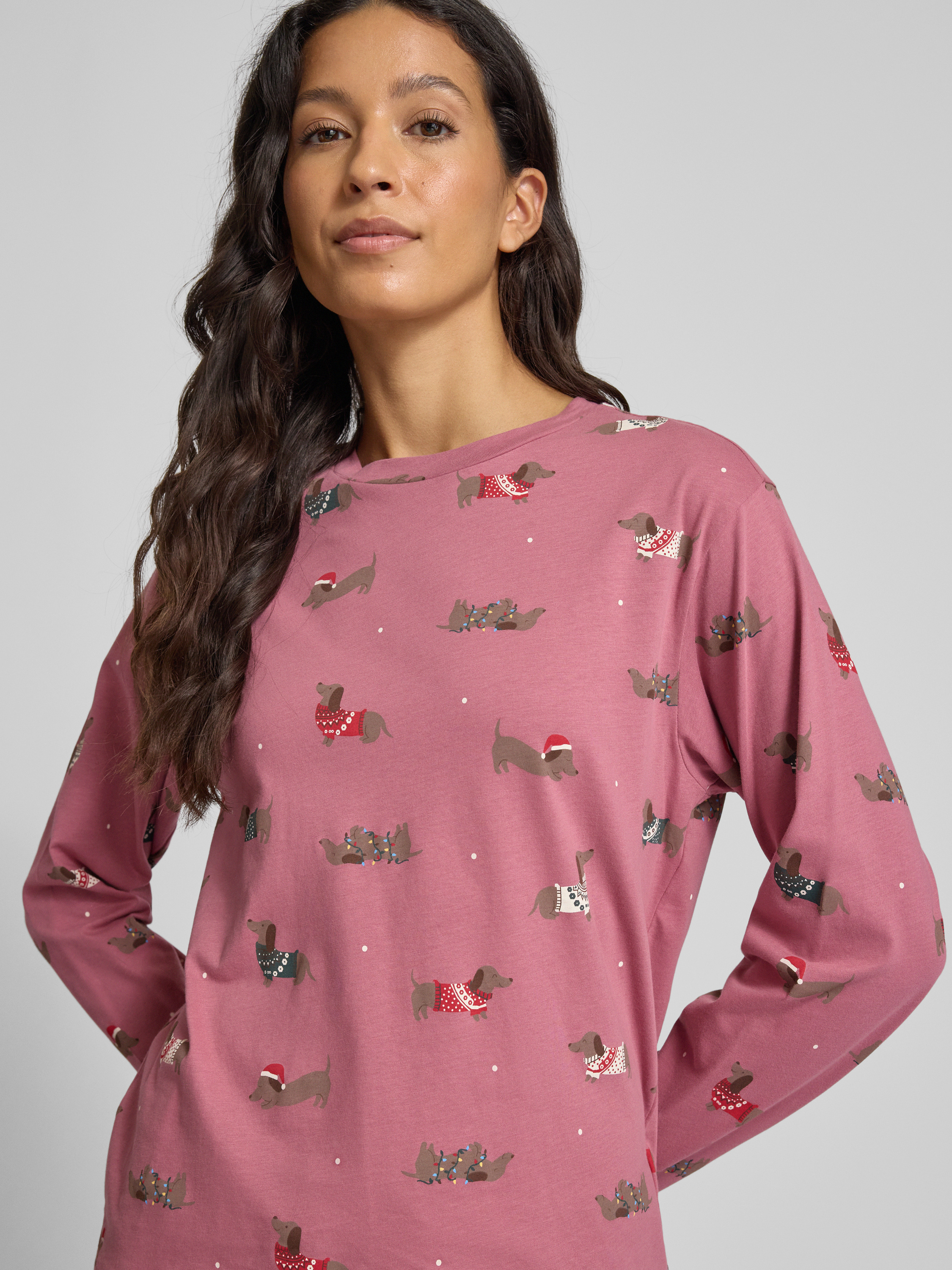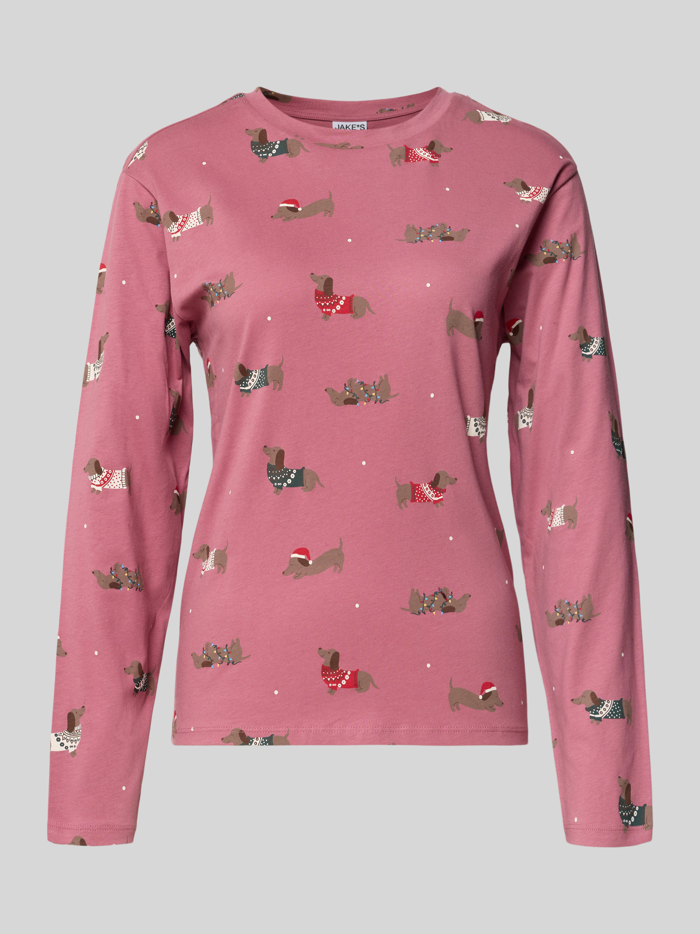 Jake*s CasualRelaxed fit pyjamabovendeel met all-over motiefprint in oudroze gemêleerd