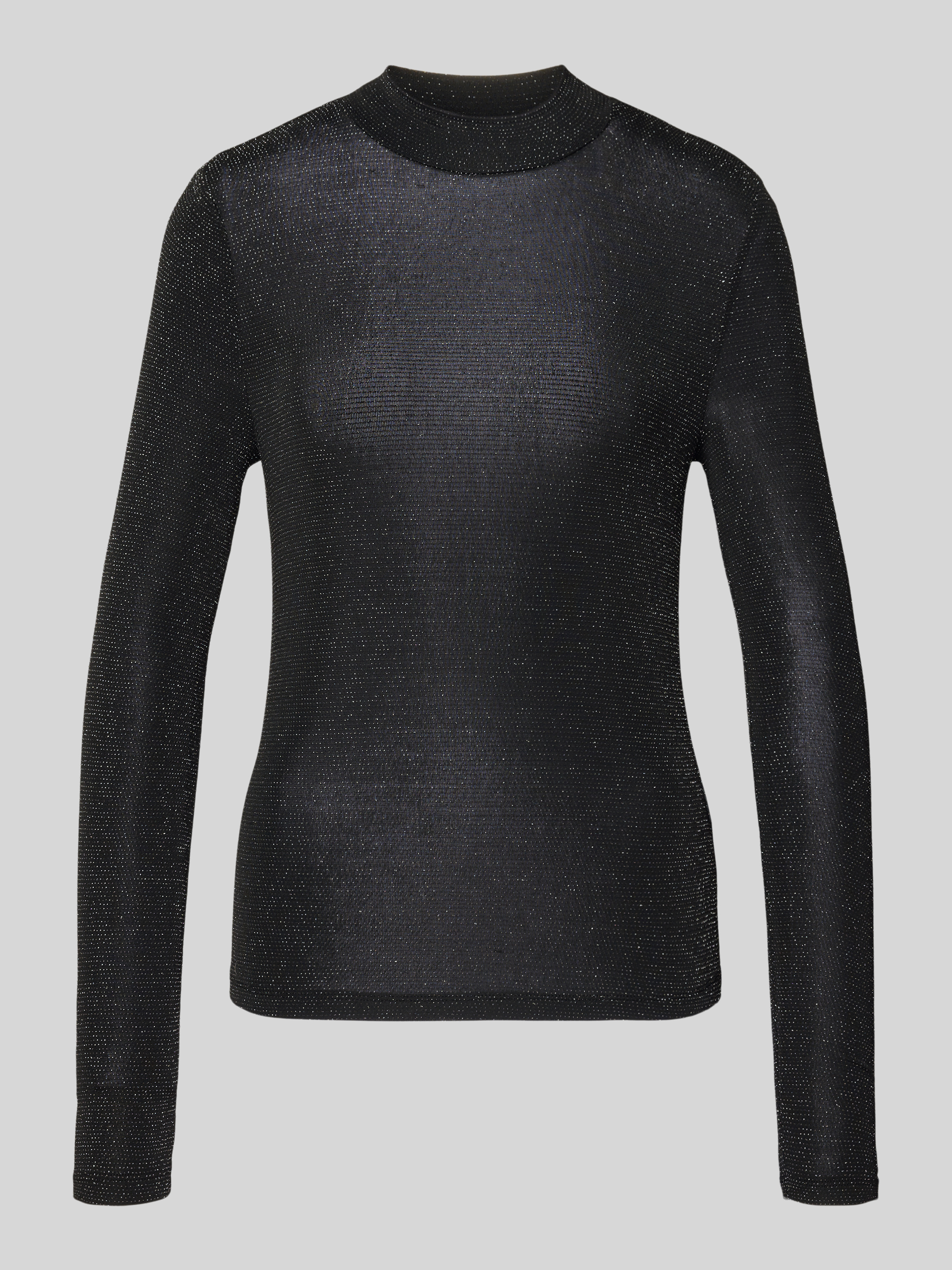 Shirt met lange mouwen en geribde ronde hals in zwart