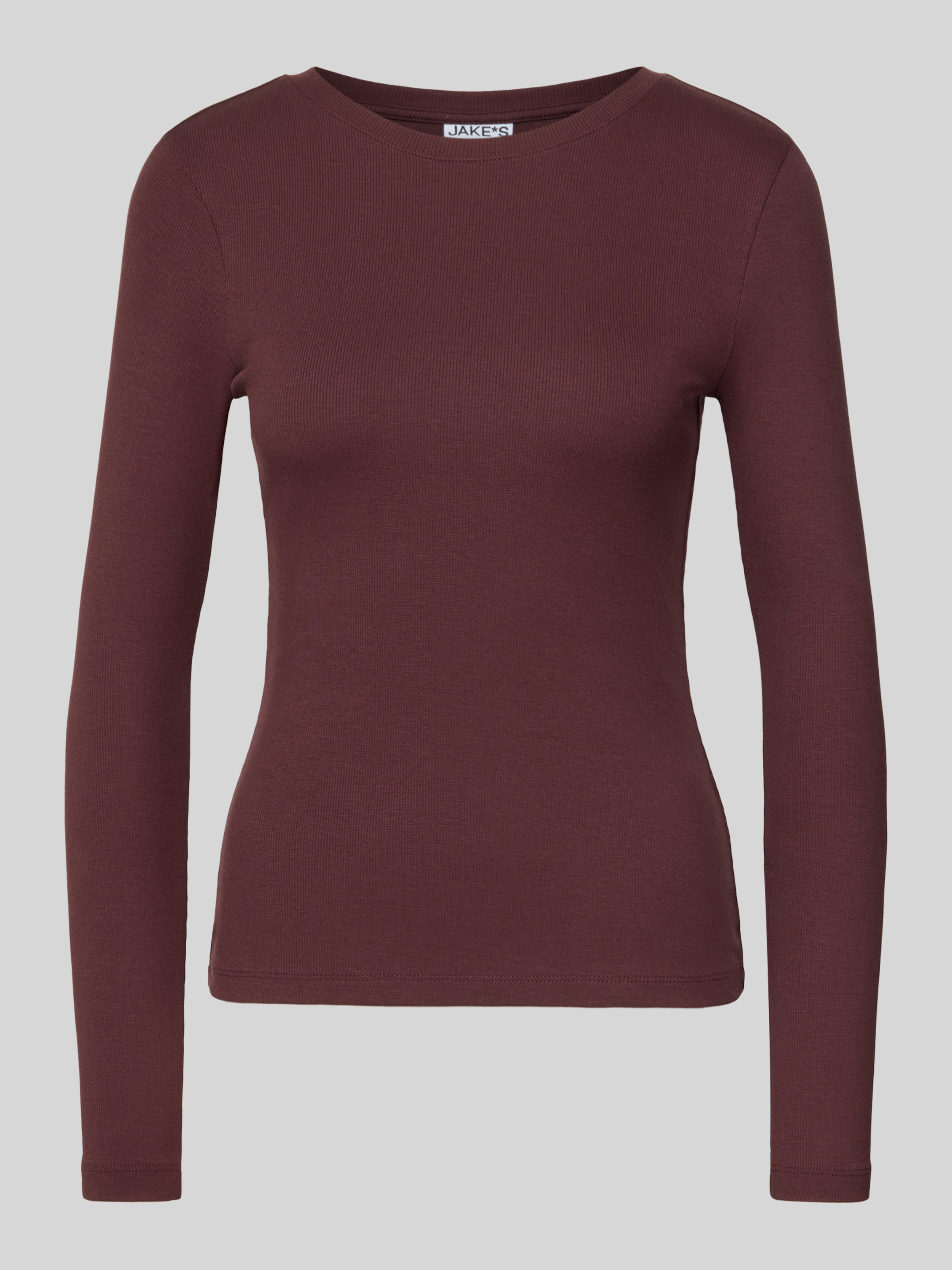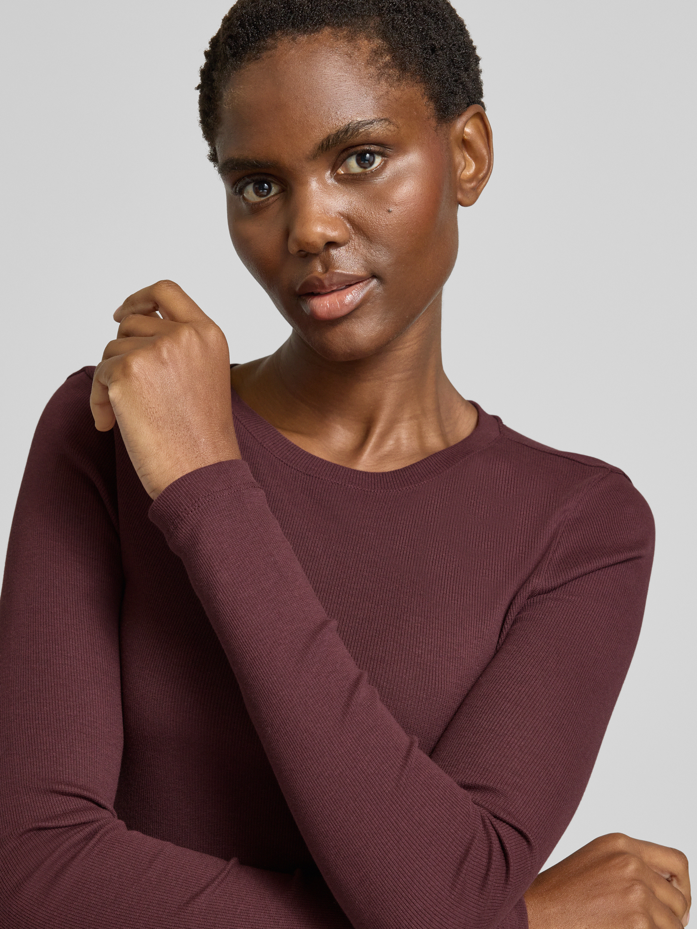 Shirt met lange mouwen in riblook met ronde hals in aubergine