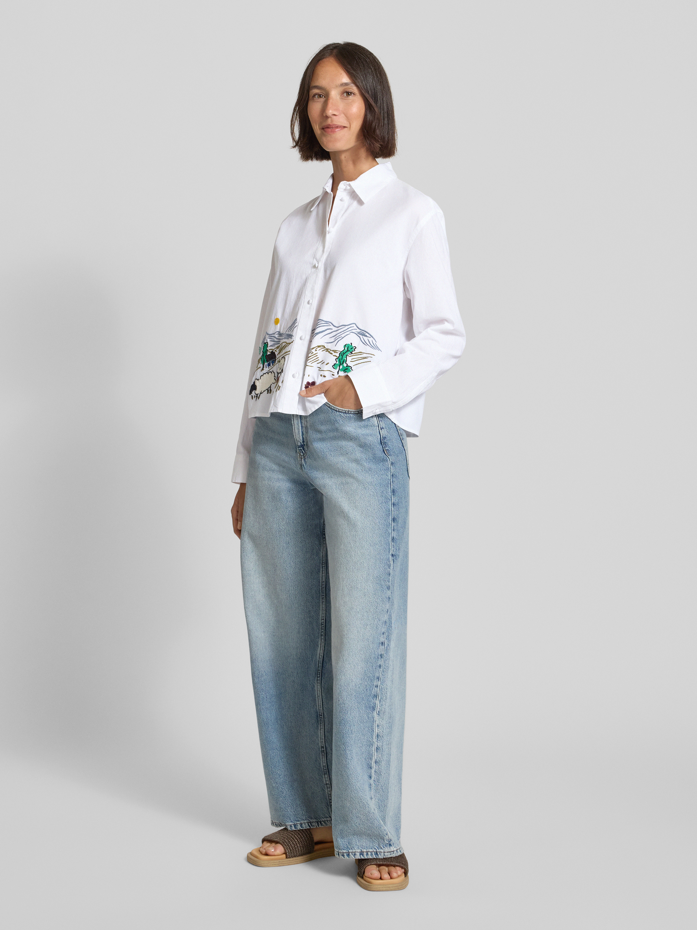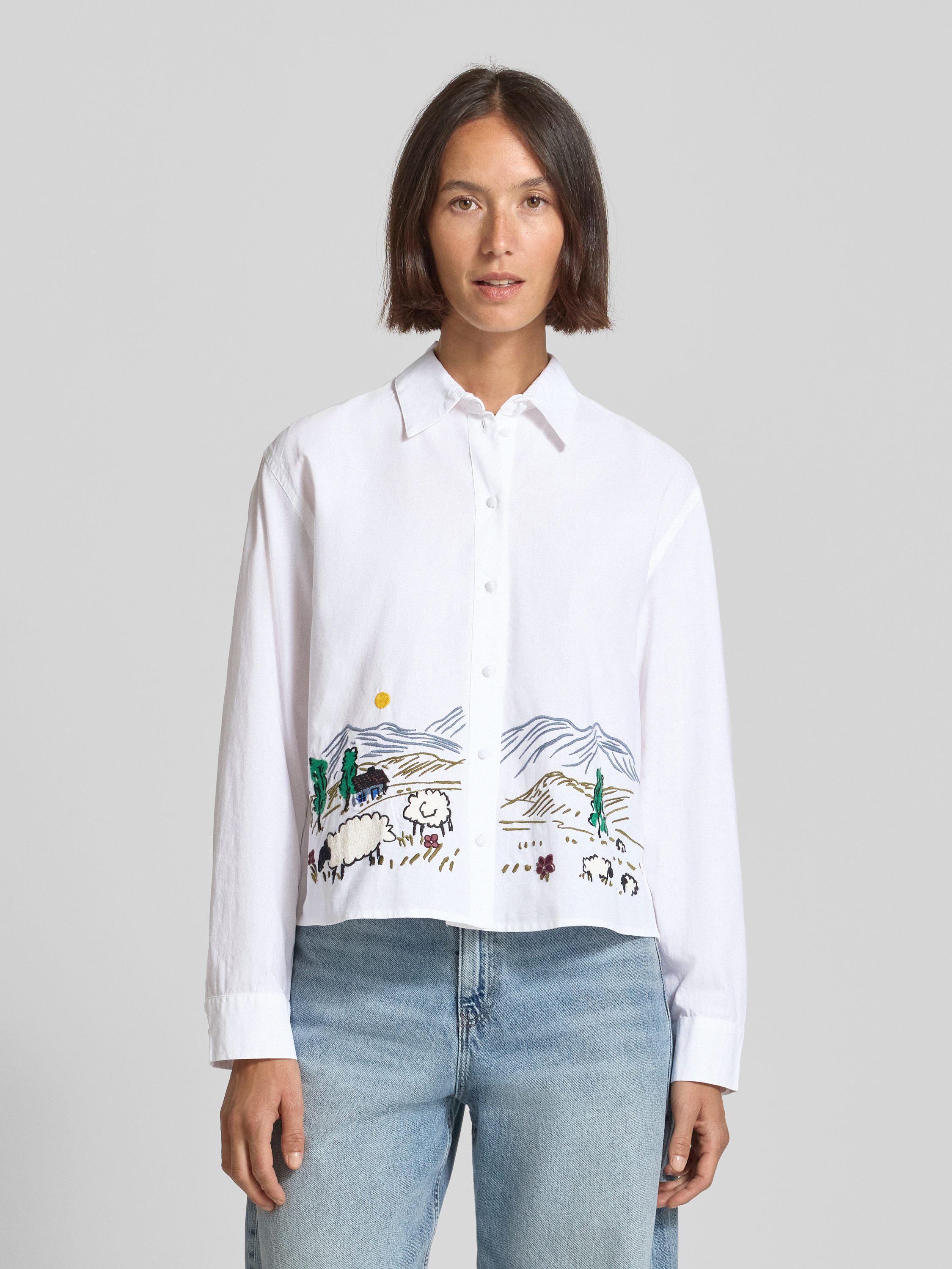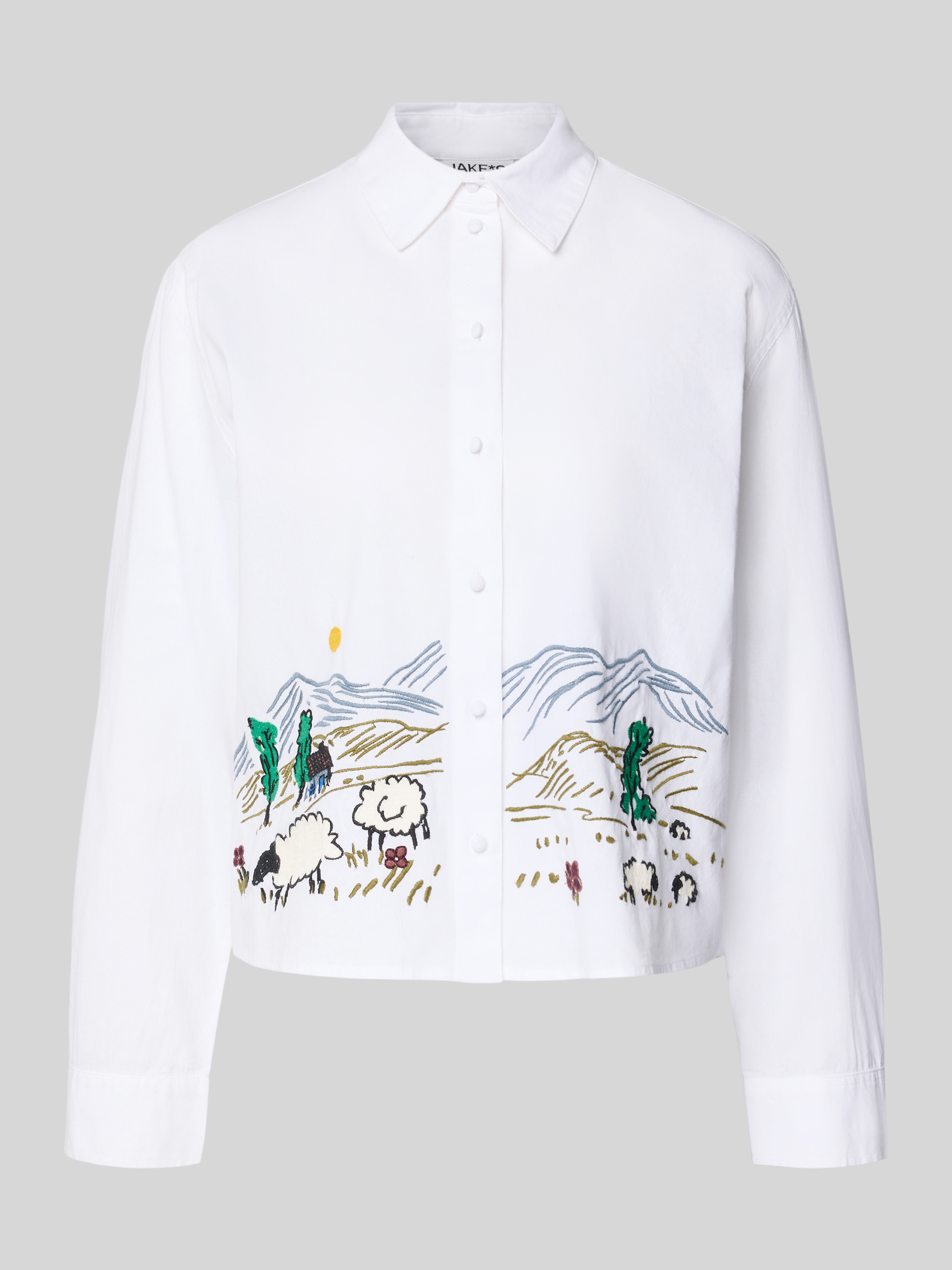 Jake*s CasualSlim fit overhemdblouse met motiefstitching in offwhite