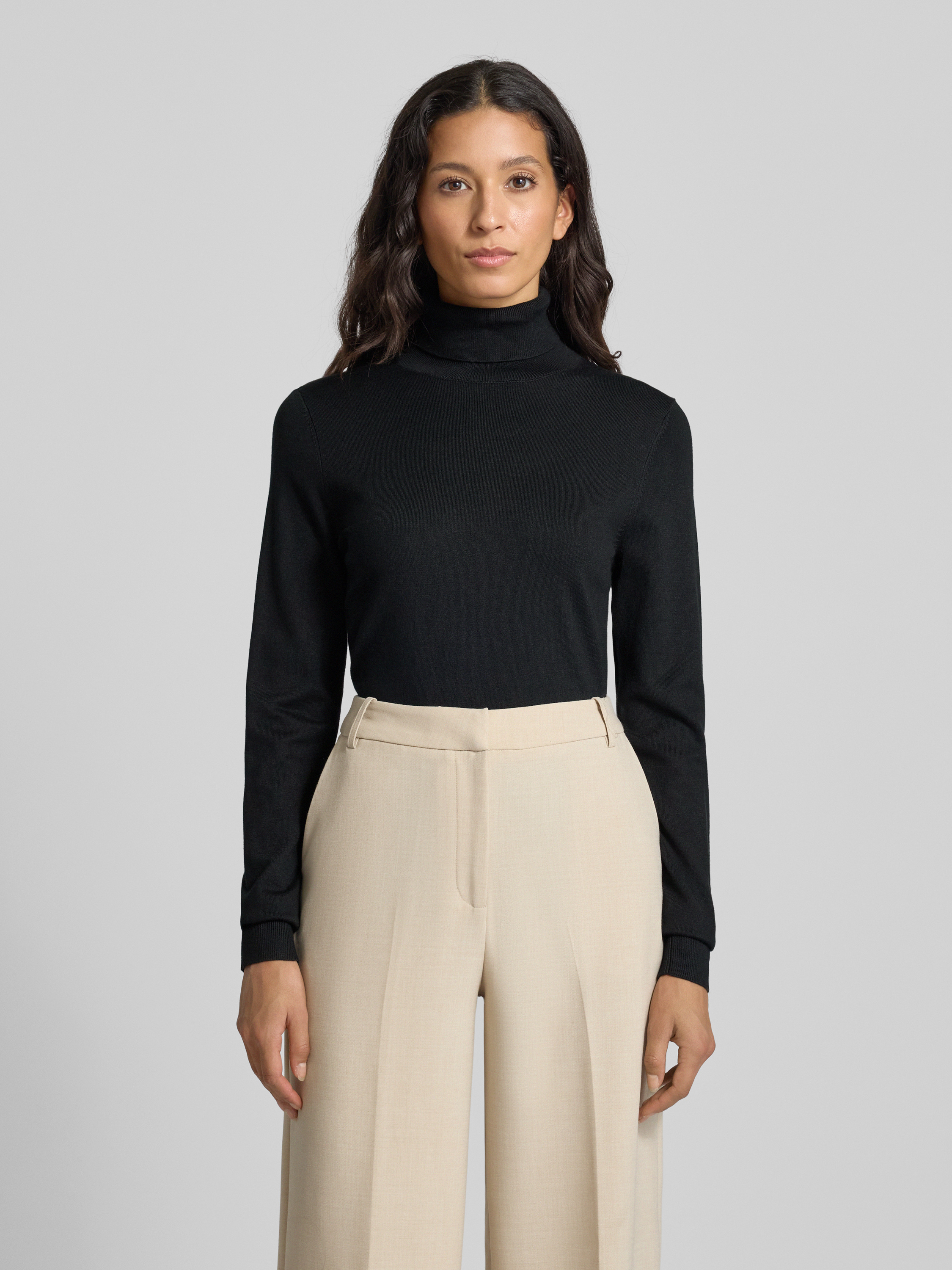 Slim fit shirt met lange mouwen van viscosemix in gebreide look in zwart