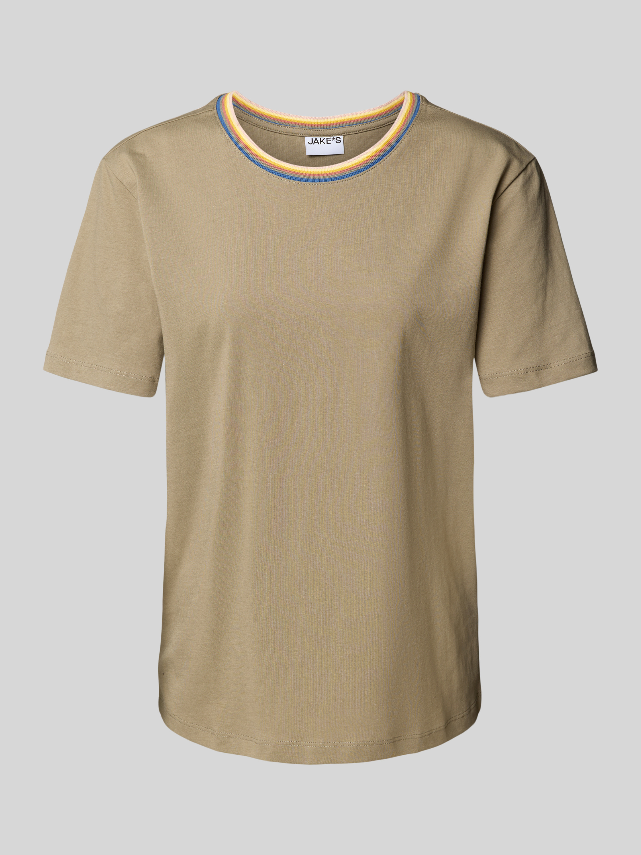 Jake*s CasualT-shirt met geribde ronde hals in lindegroen
