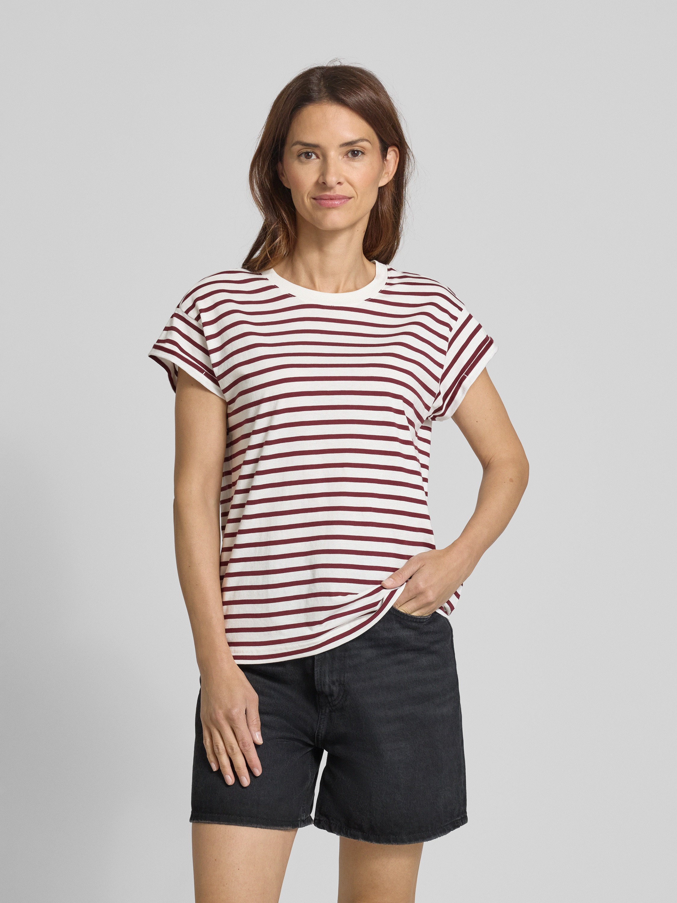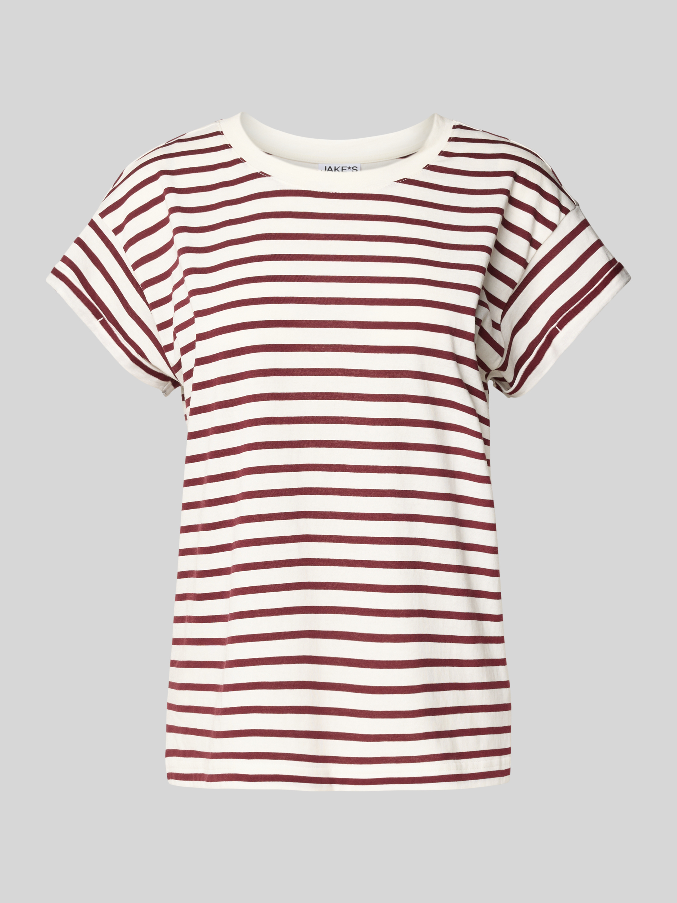 • Jake*s Casual T-shirt met streepmotief Donkerrood