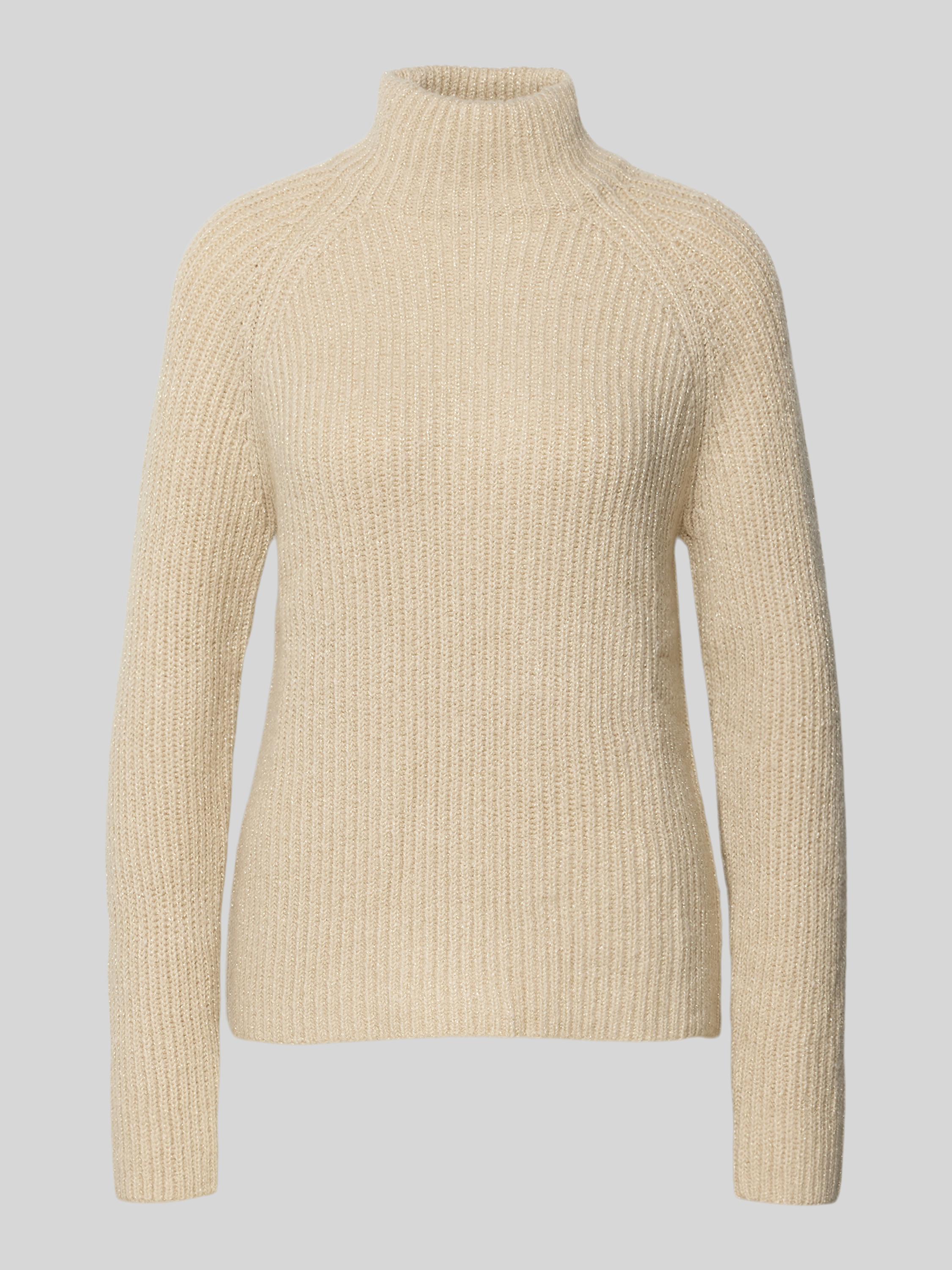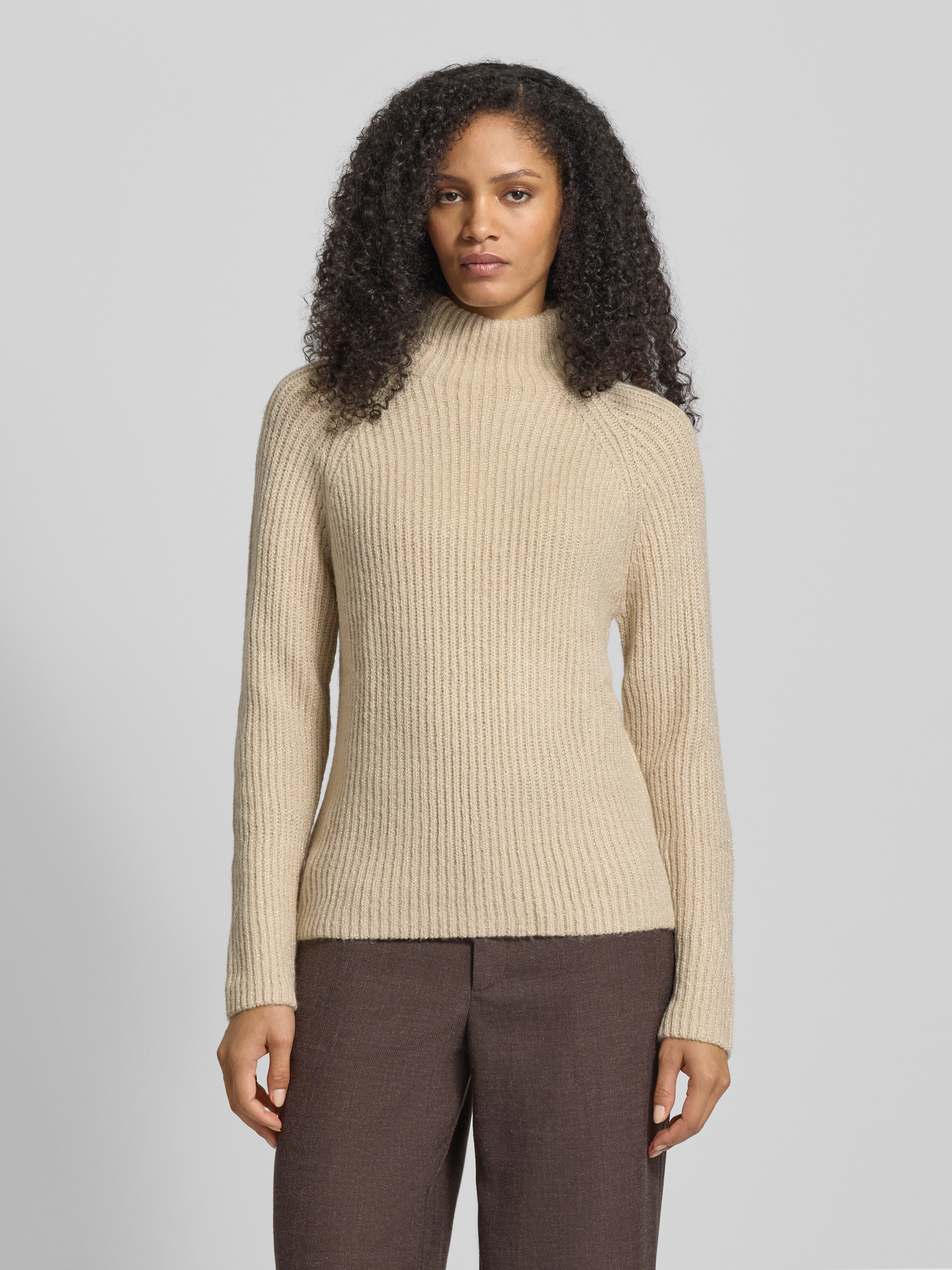 Gebreide pullover in riblook met opstaande kraag in ecru
