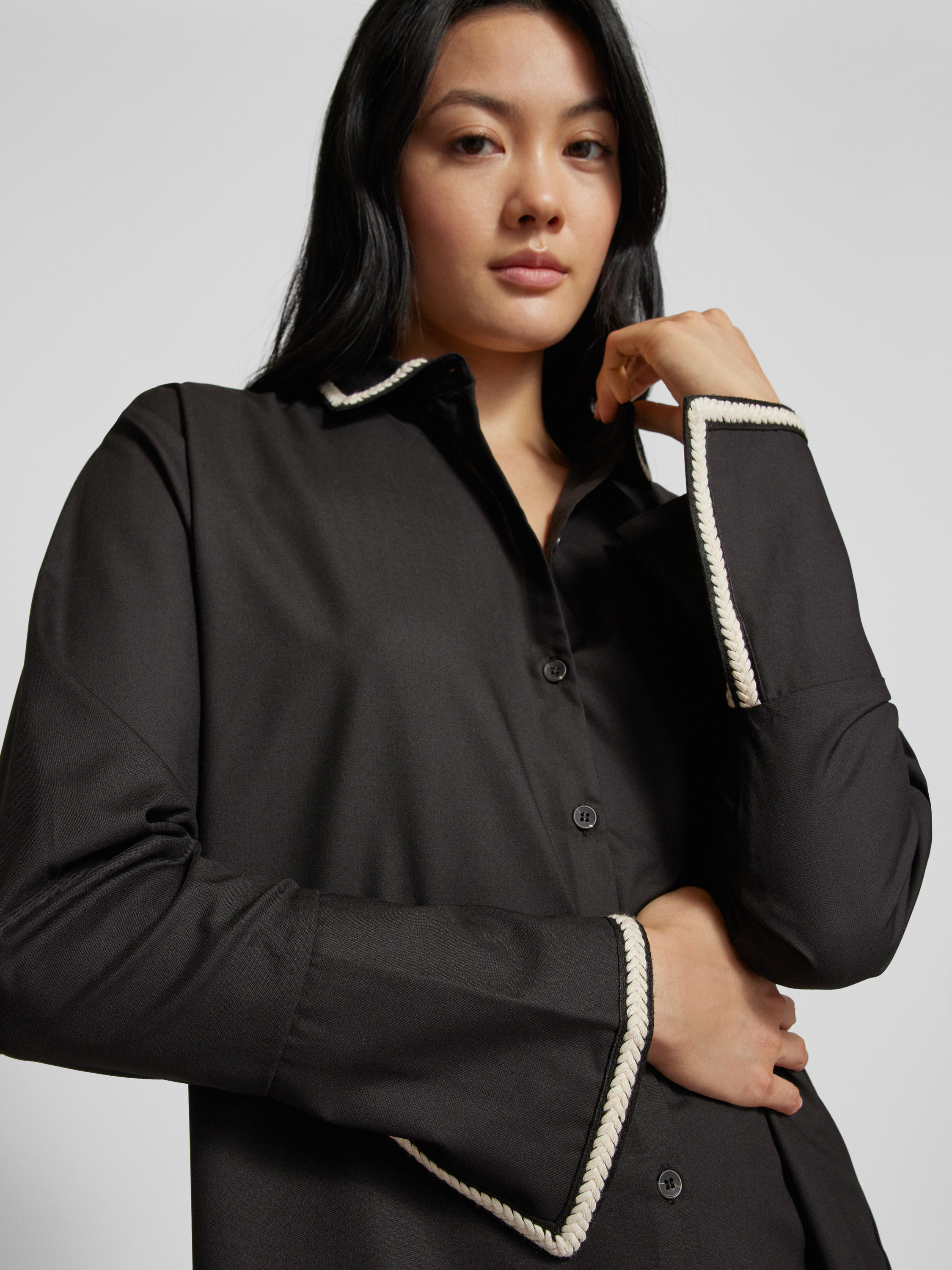 Knielange overhemdjurk met doorknoopsluiting in zwart