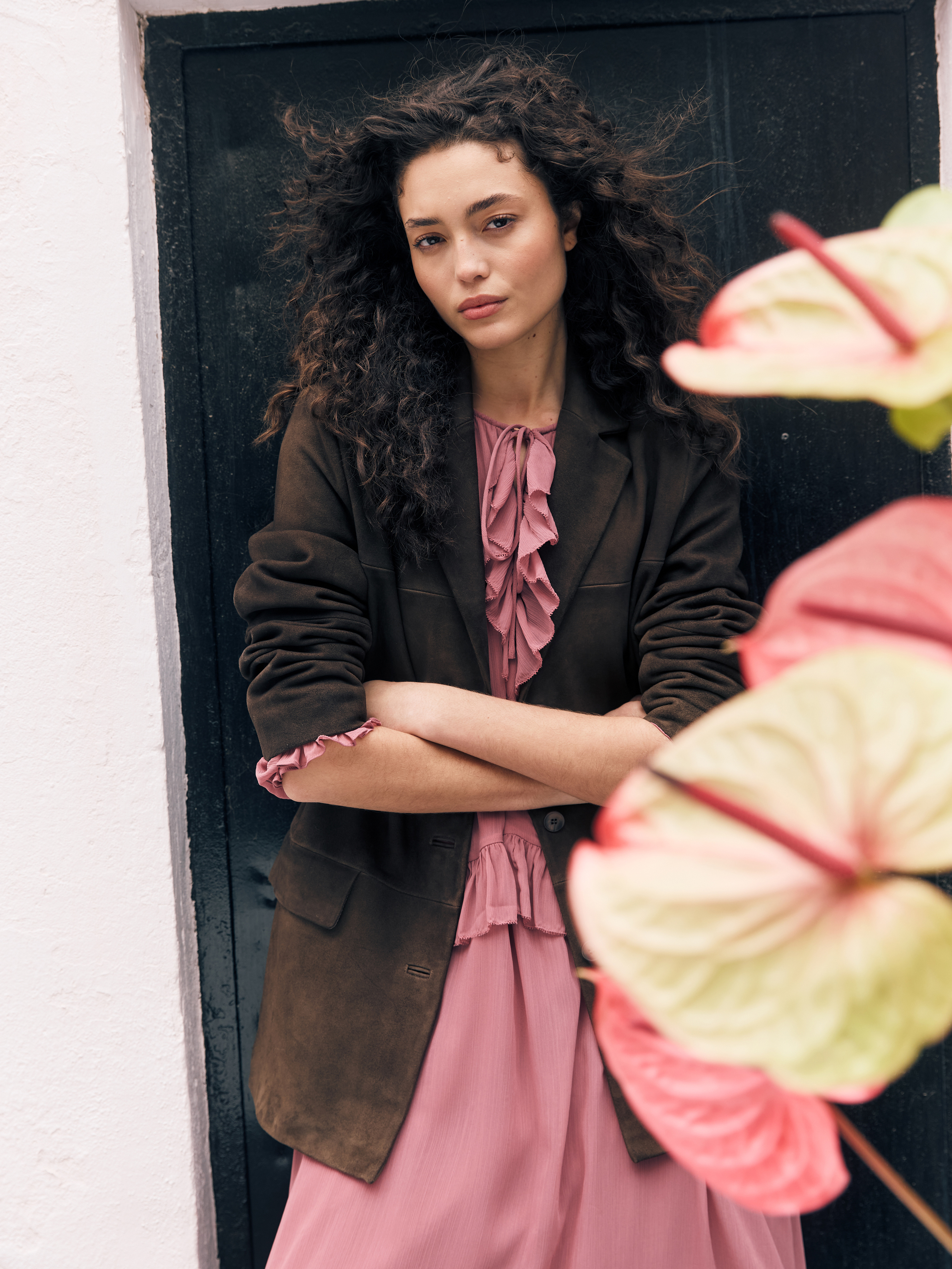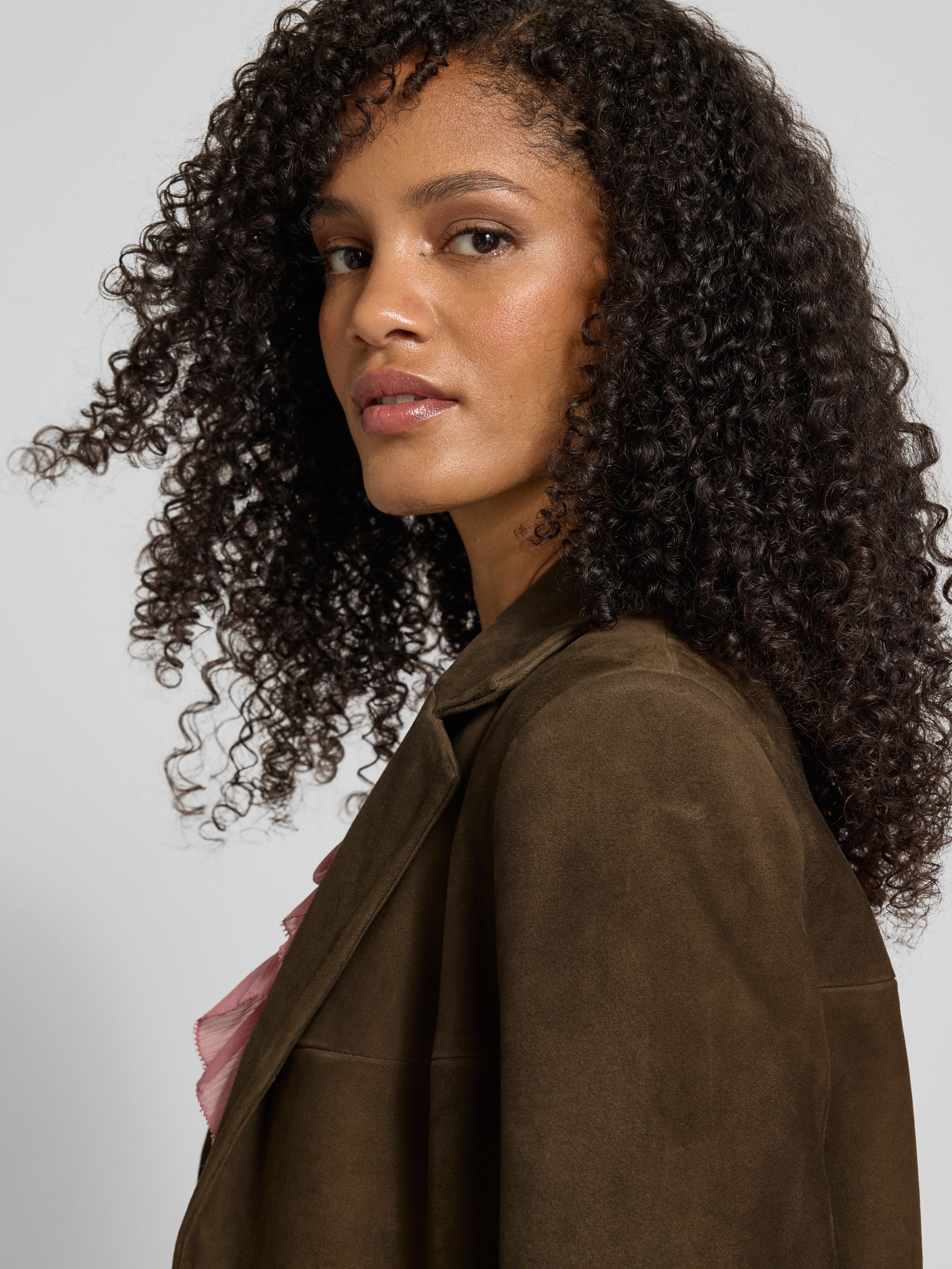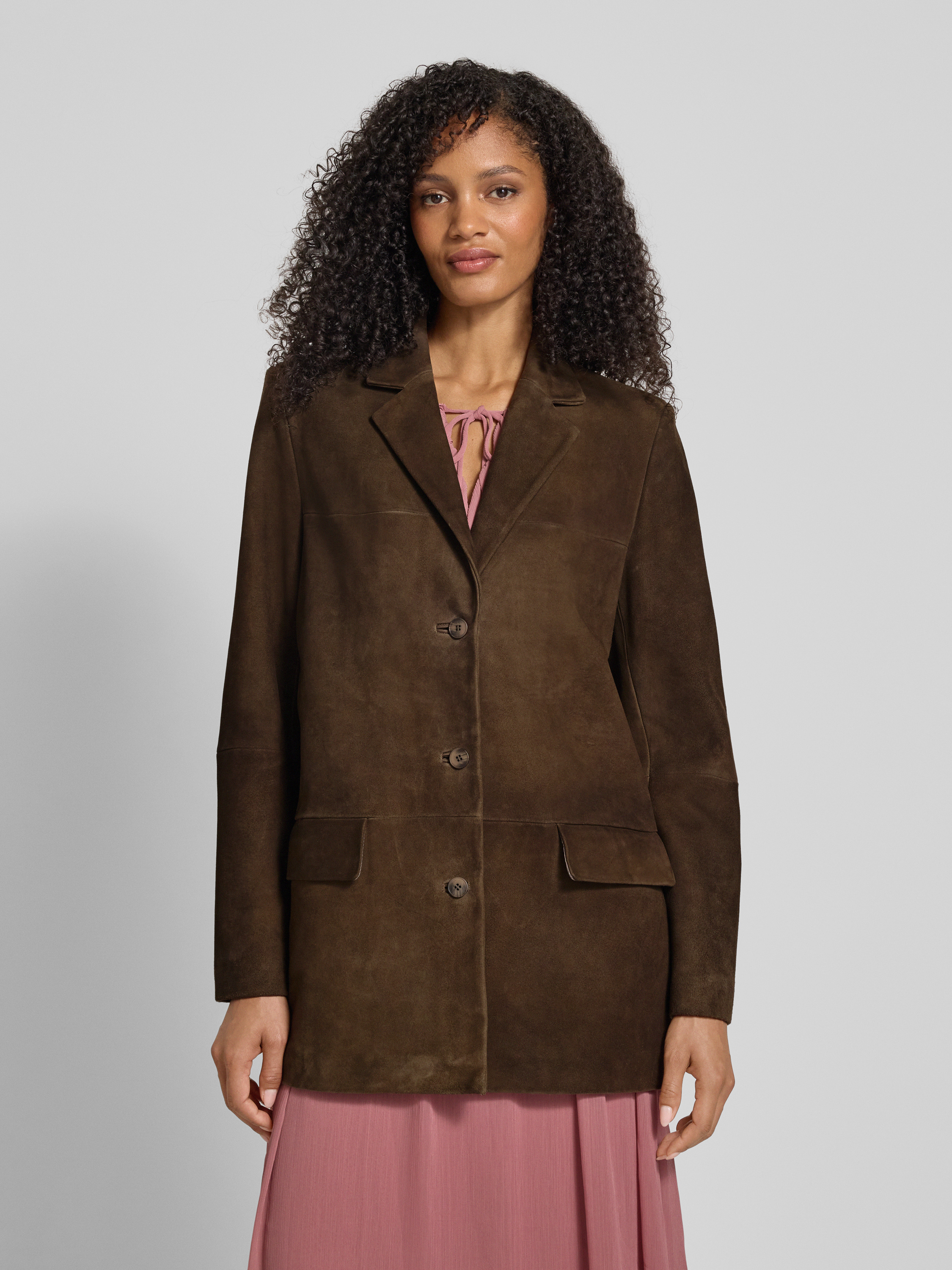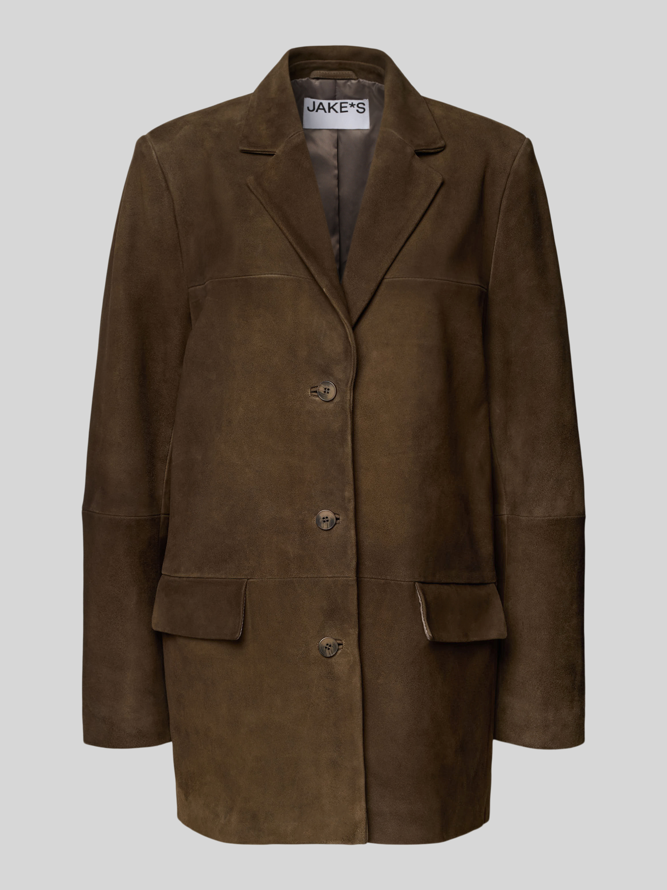 Leren jack met reverskraag en klepzakken in donkerbruin