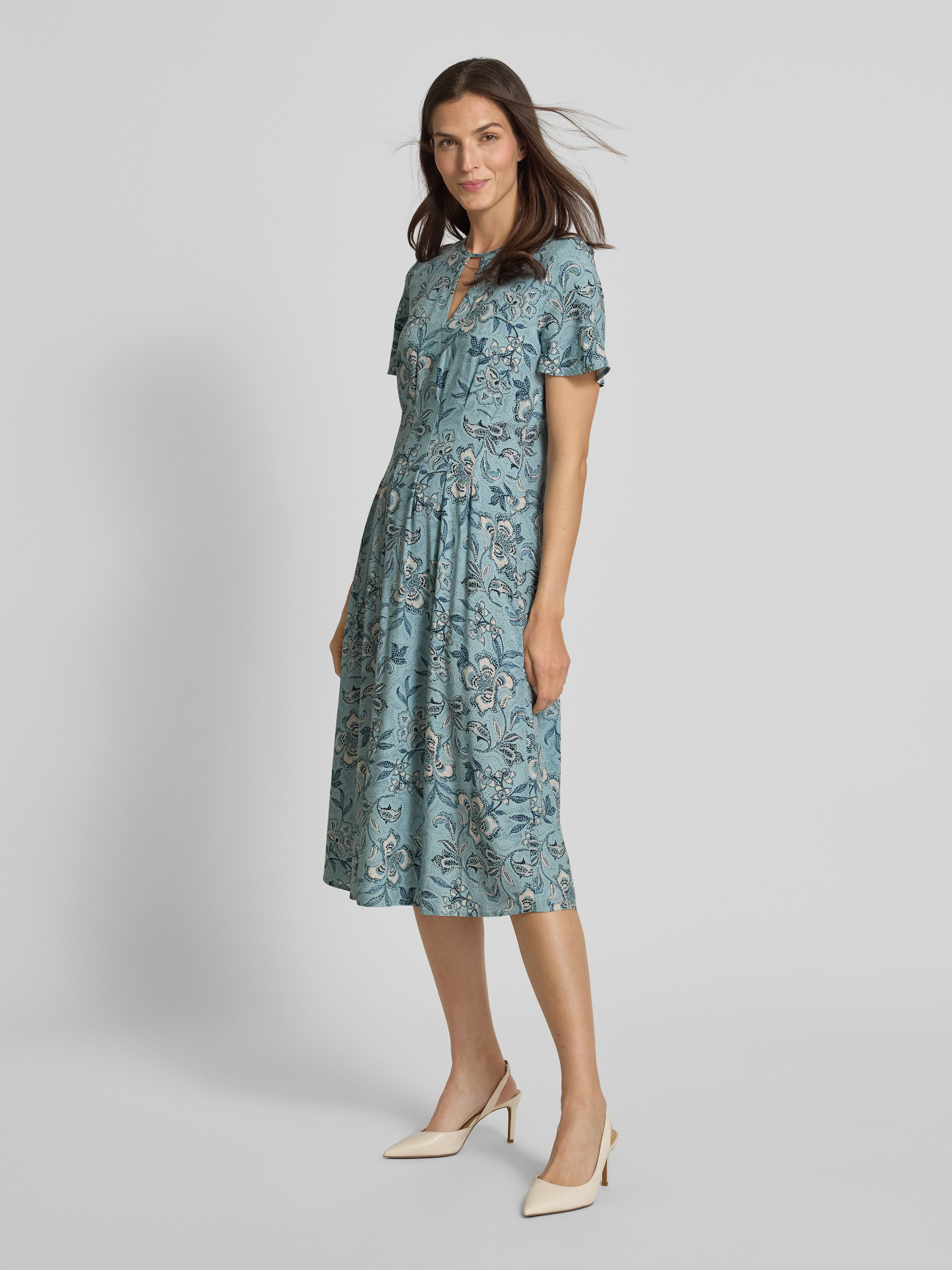 Midi-jurk met 1/2-mouwen en druppelvormige hals in ijsblauw