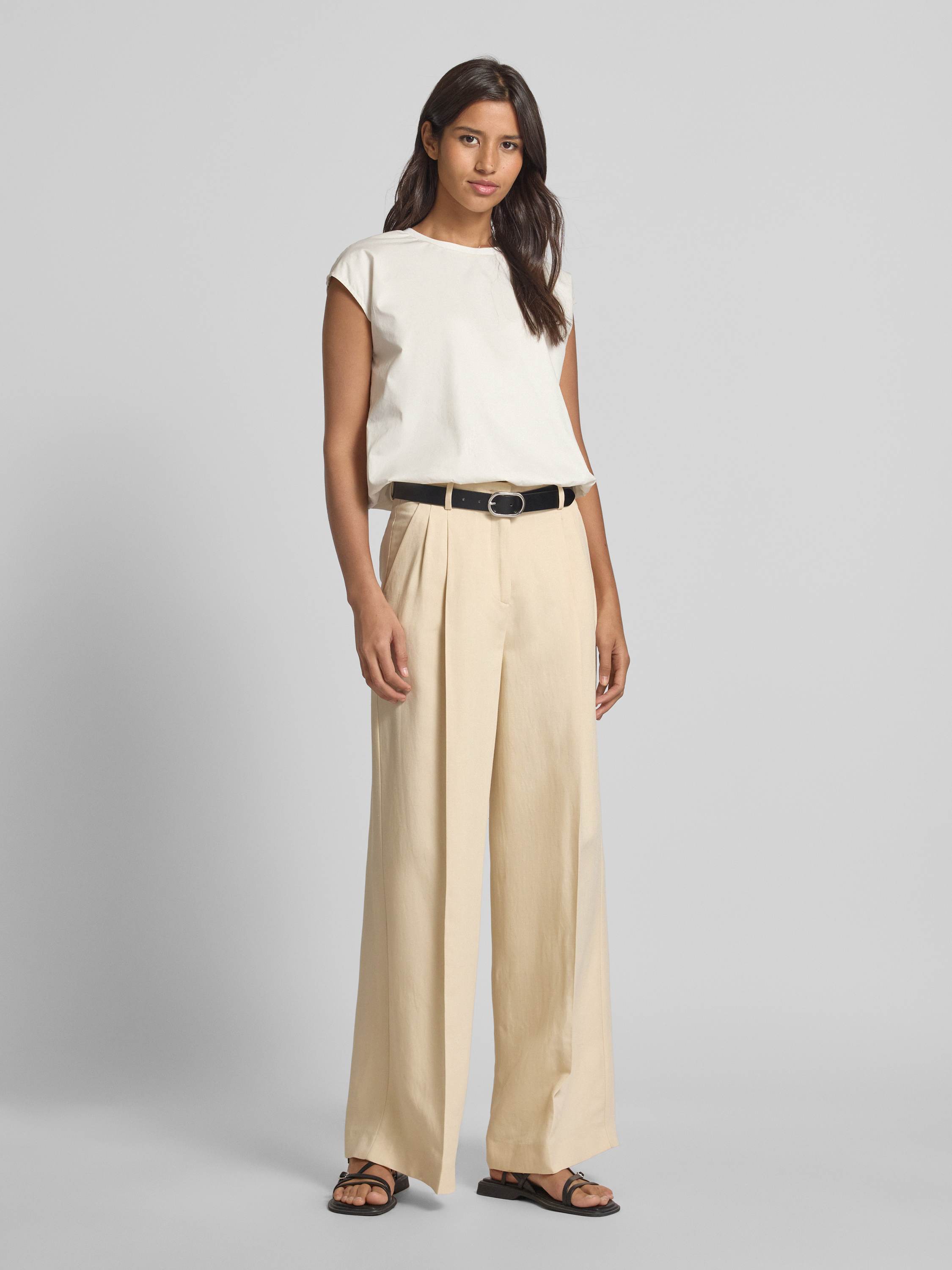 Wide leg bandplooibroek en riemlussen