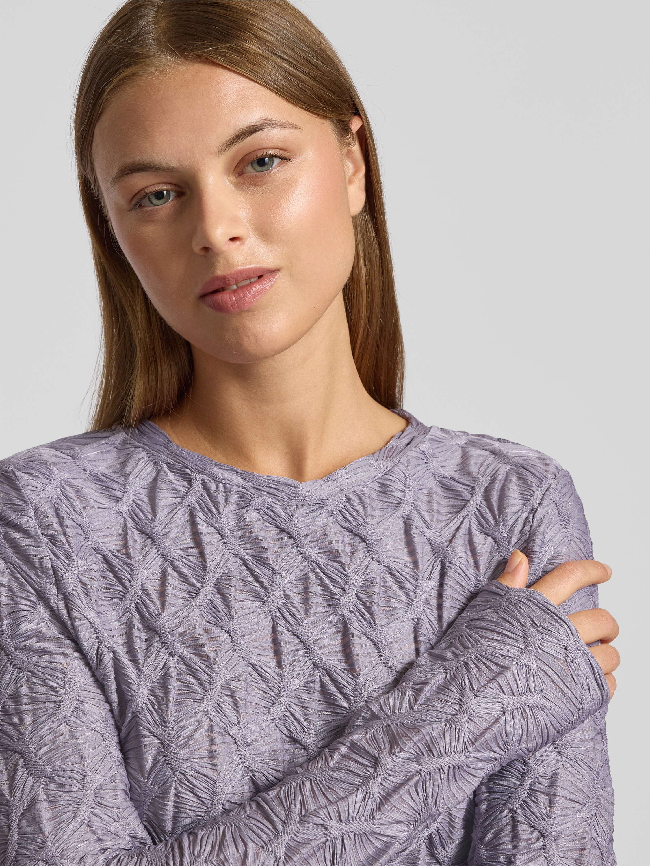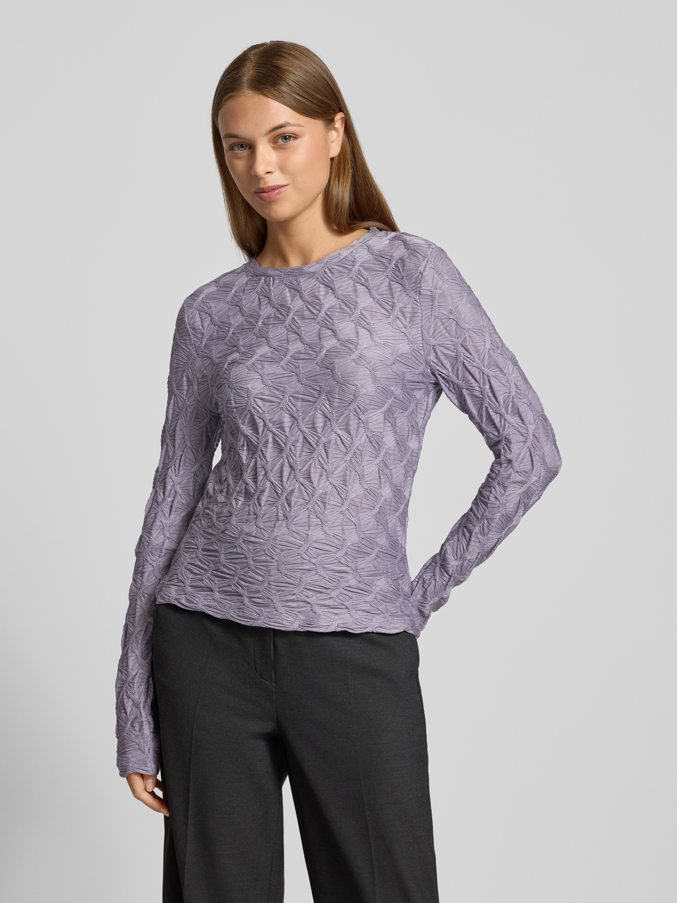 Shirt met lange mouwen, structuurmotief en ronde hals in lavendel