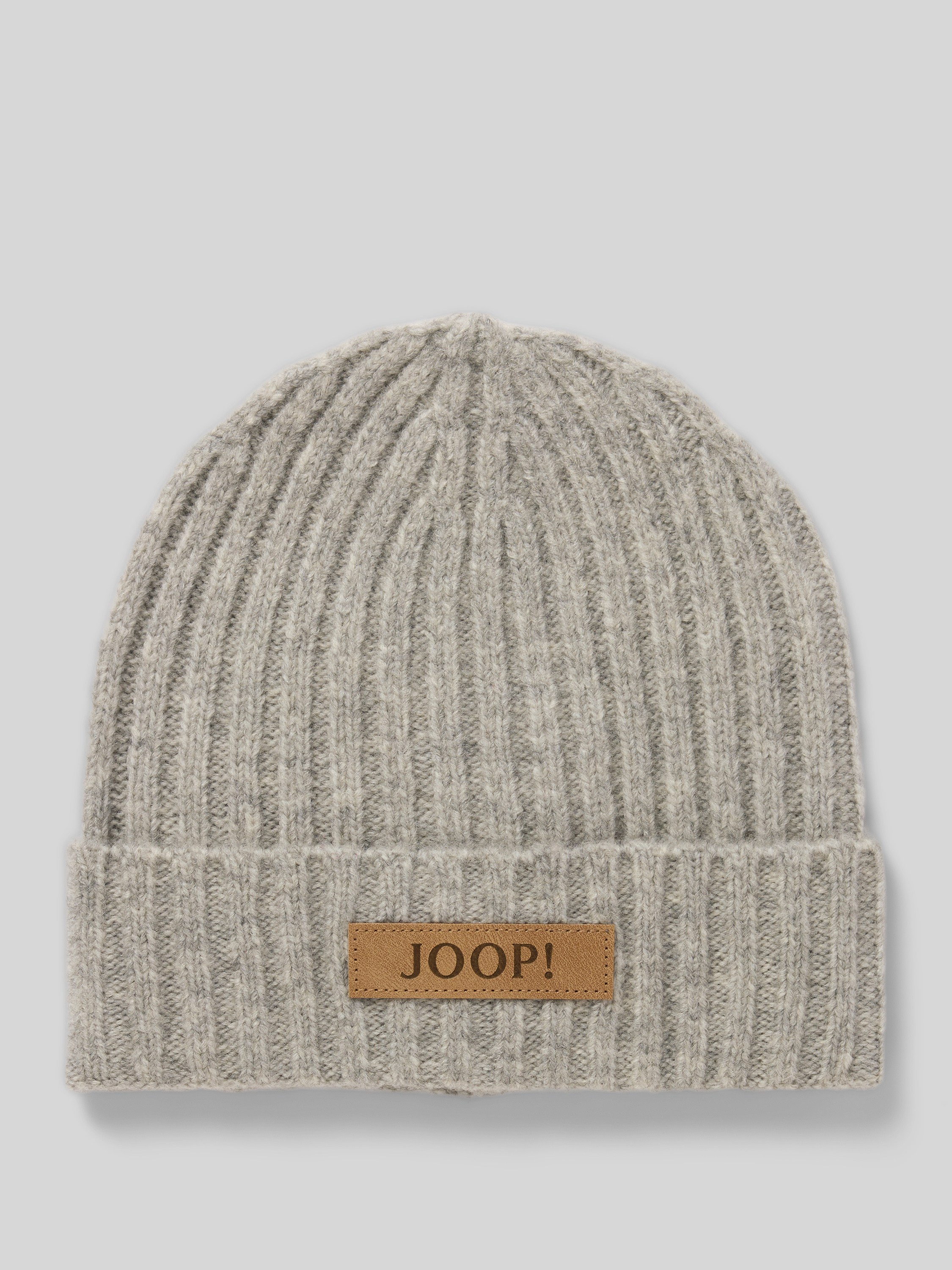 JOOP!Beanie met labeldetail, model 'Aiana' in lichtgrijs gemêleerd