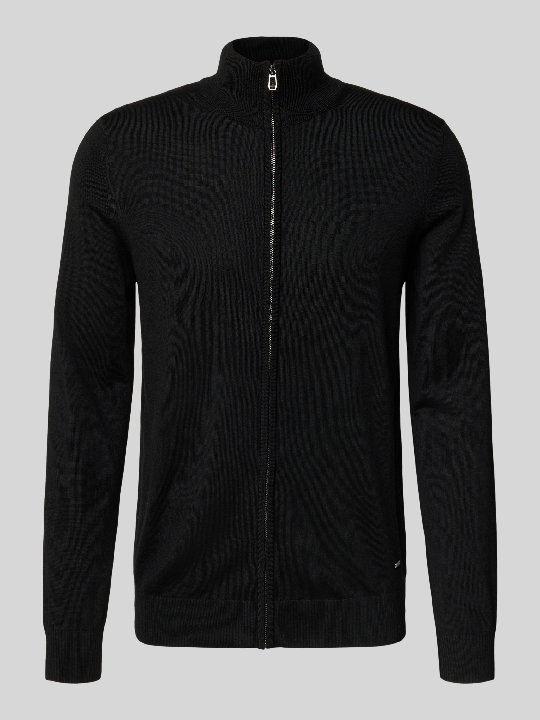 JOOP! CollectionGebreid jack van scheerwol met opstaande kraag, model 'Davis' in zwart