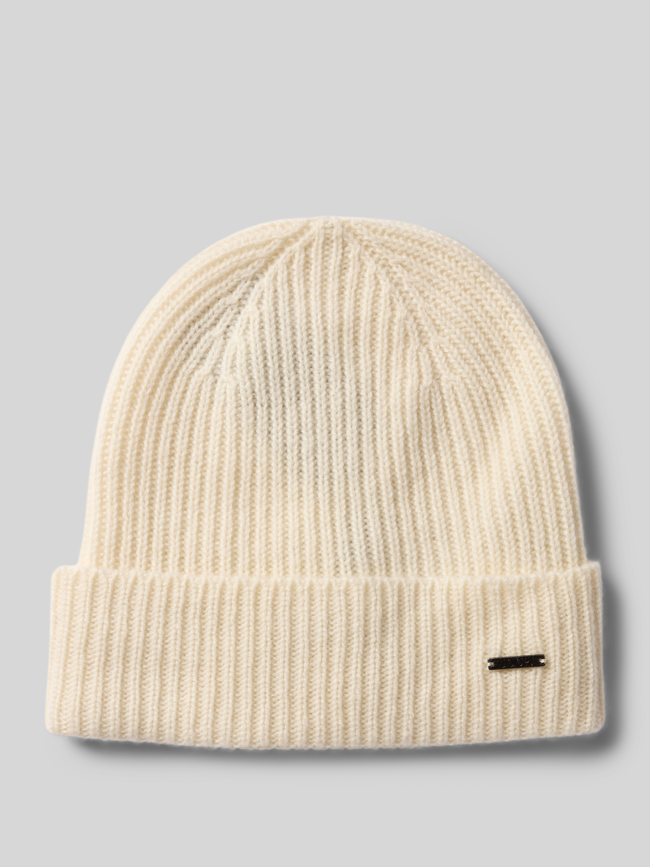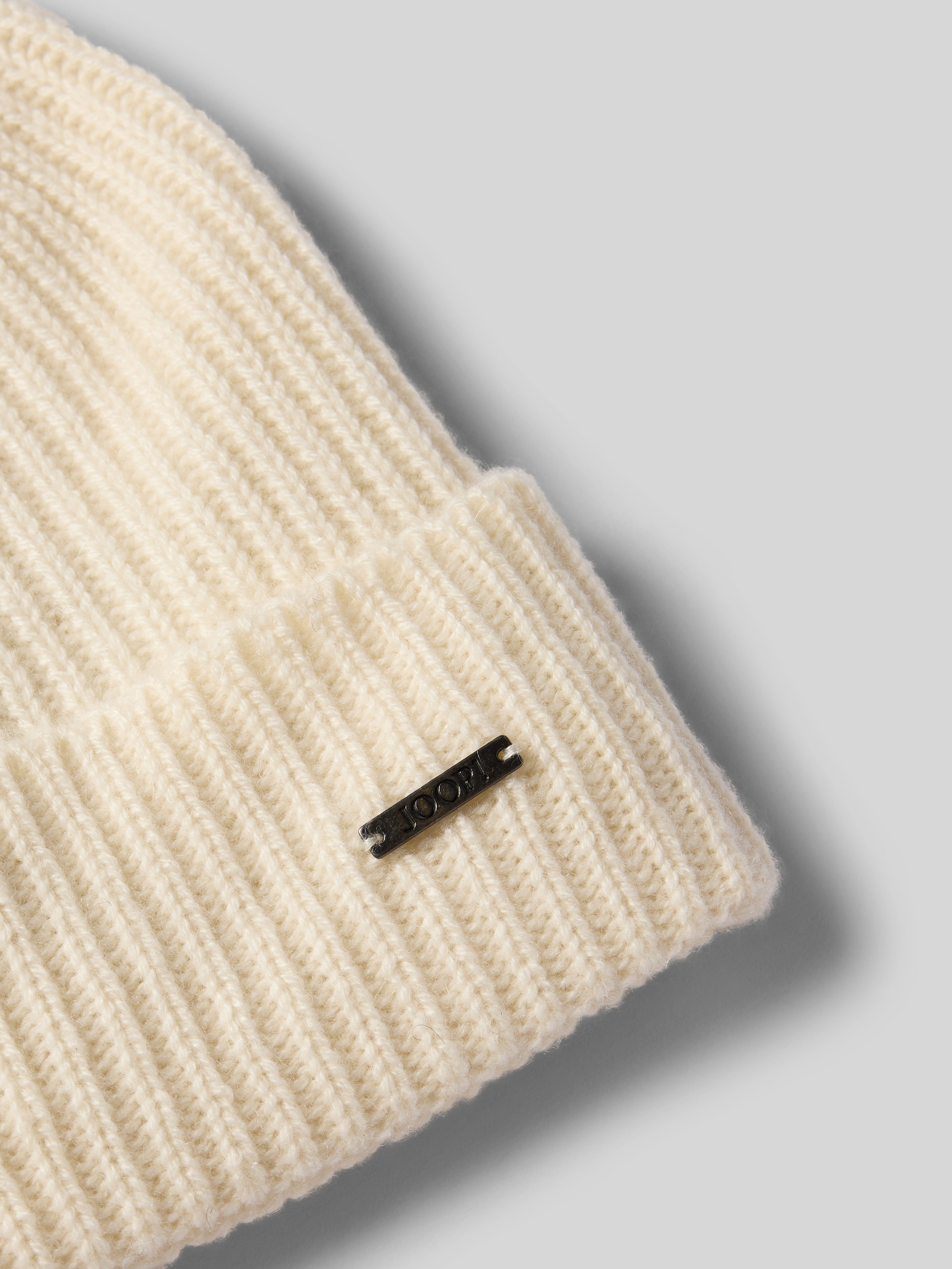 JOOP! CollectionGebreide muts van kasjmier met labeldetail, model 'FENOL' in offwhite