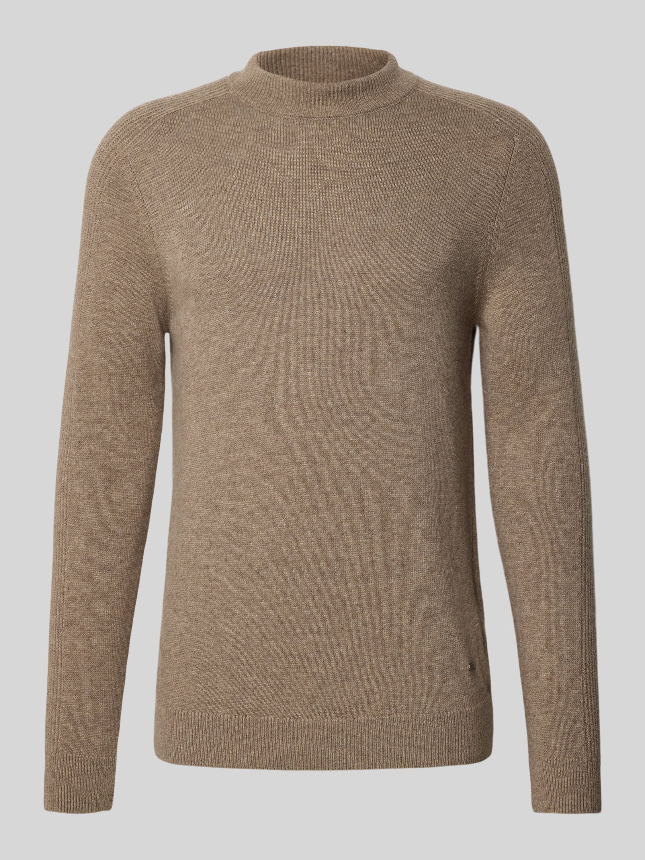 Gebreide pullover met kasjmier en ronde hals in lichtbruin