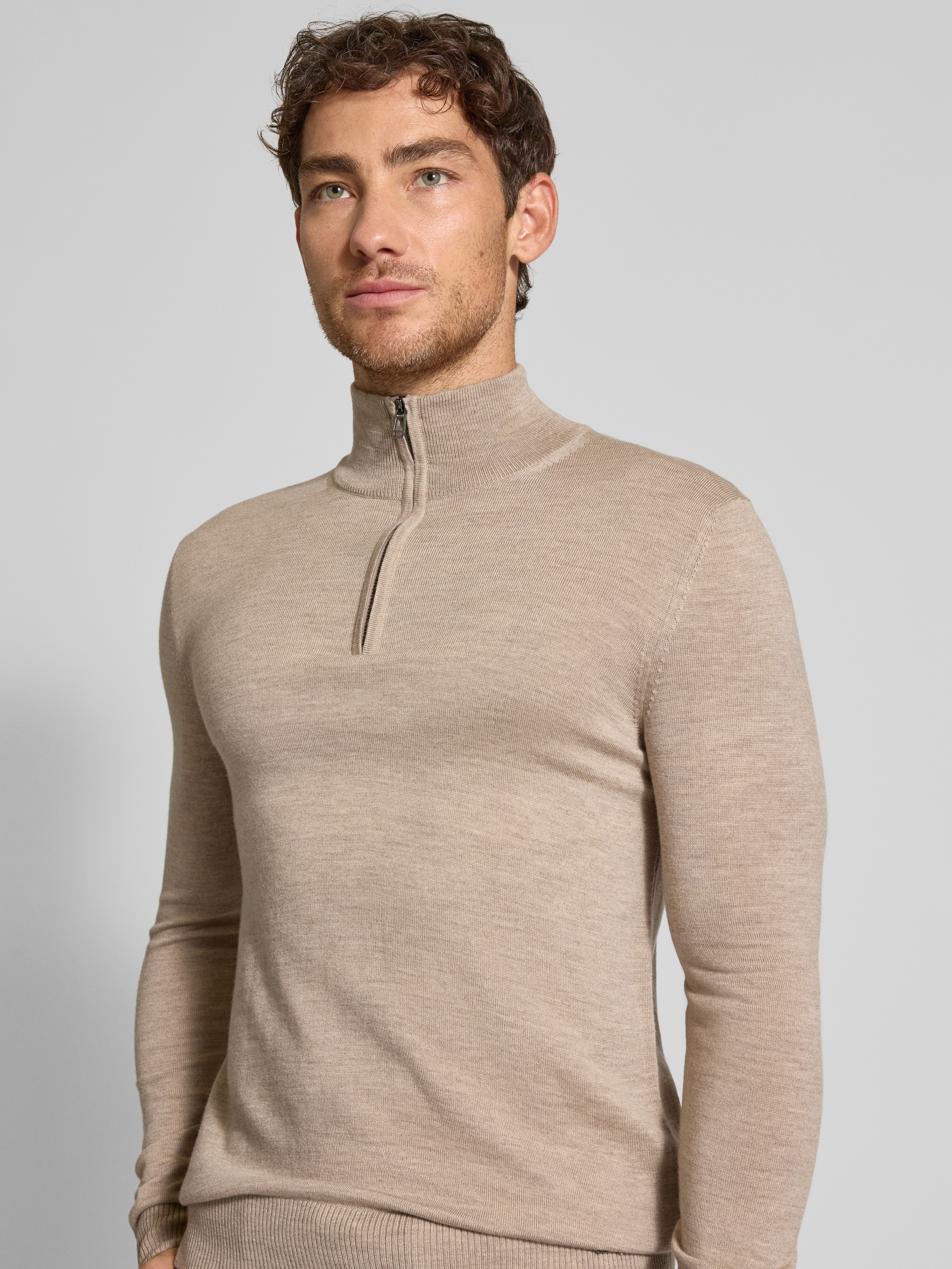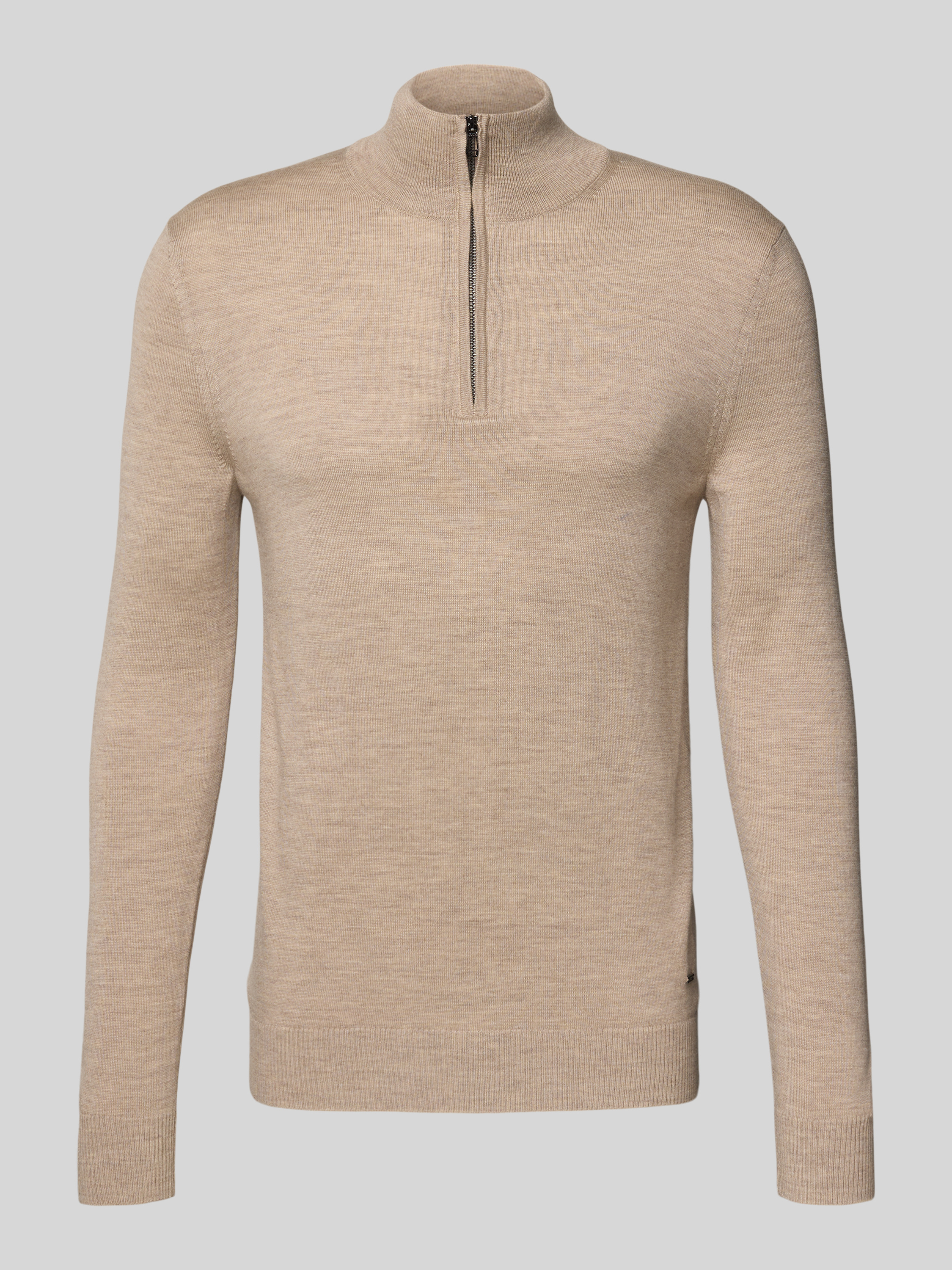 JOOP! CollectionGebreide pullover van scheerwol met opstaande kraag, model 'Dario' in beige