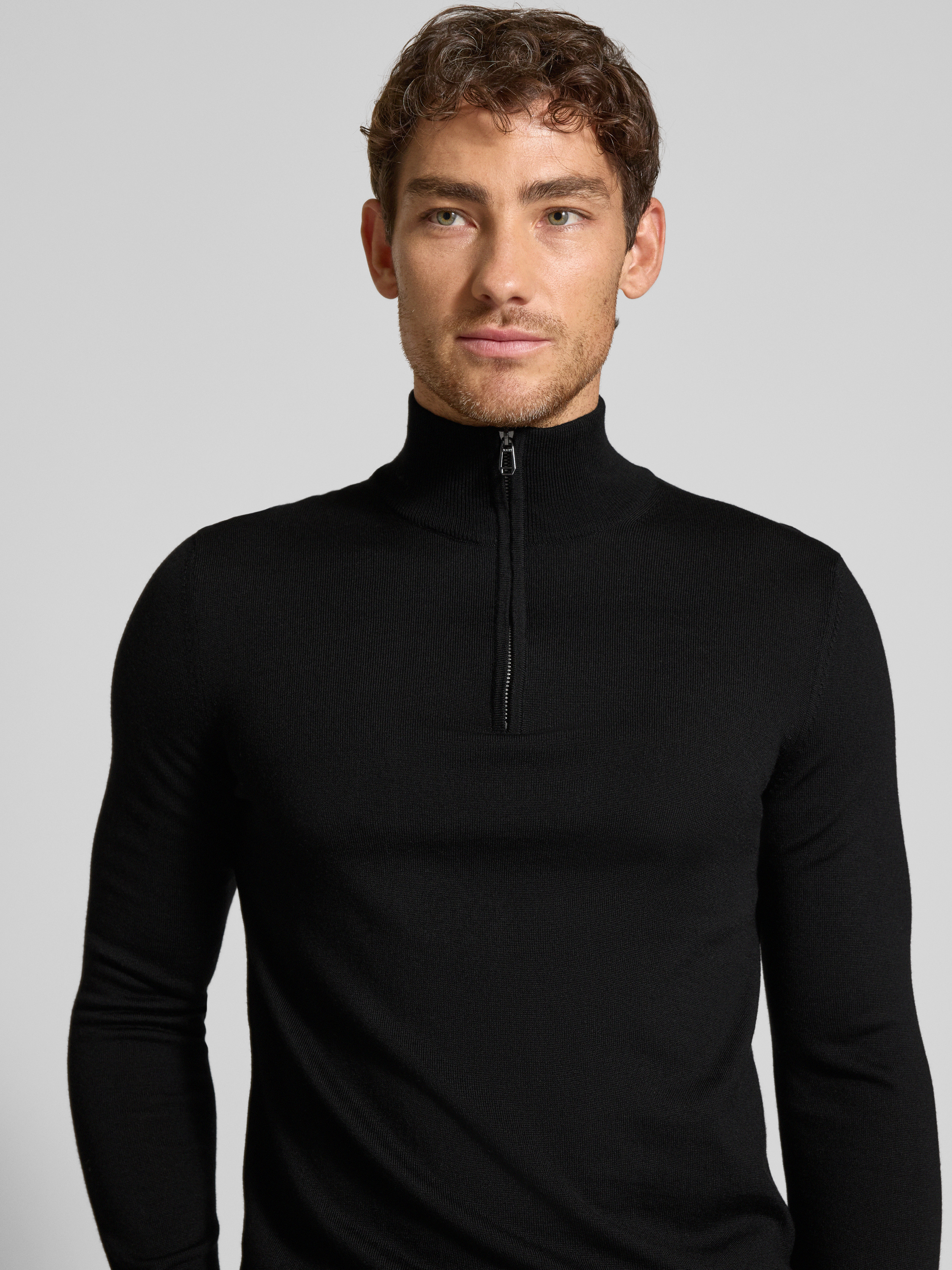 JOOP! CollectionGebreide pullover van scheerwol met opstaande kraag, model 'Dario' in zwart