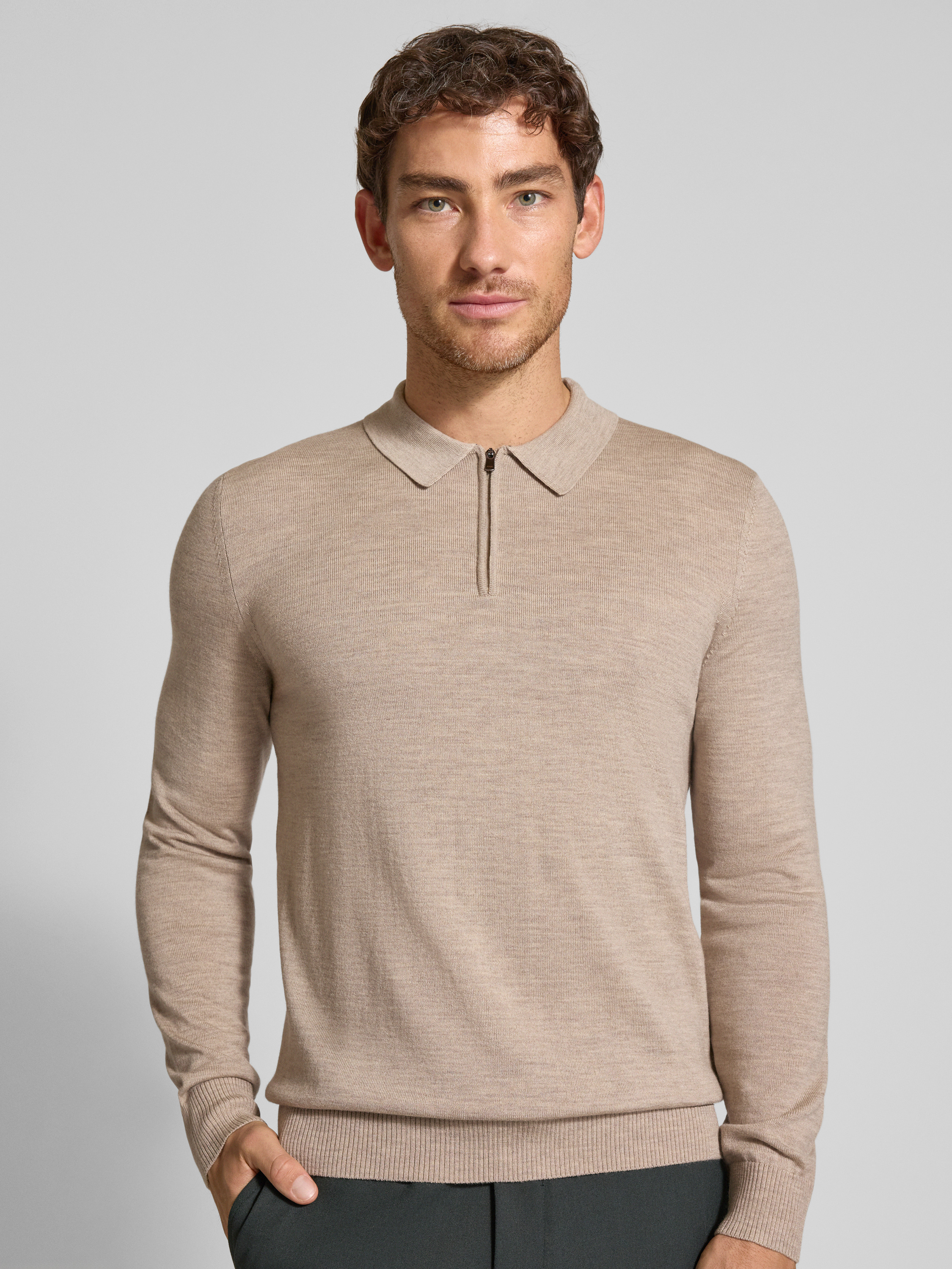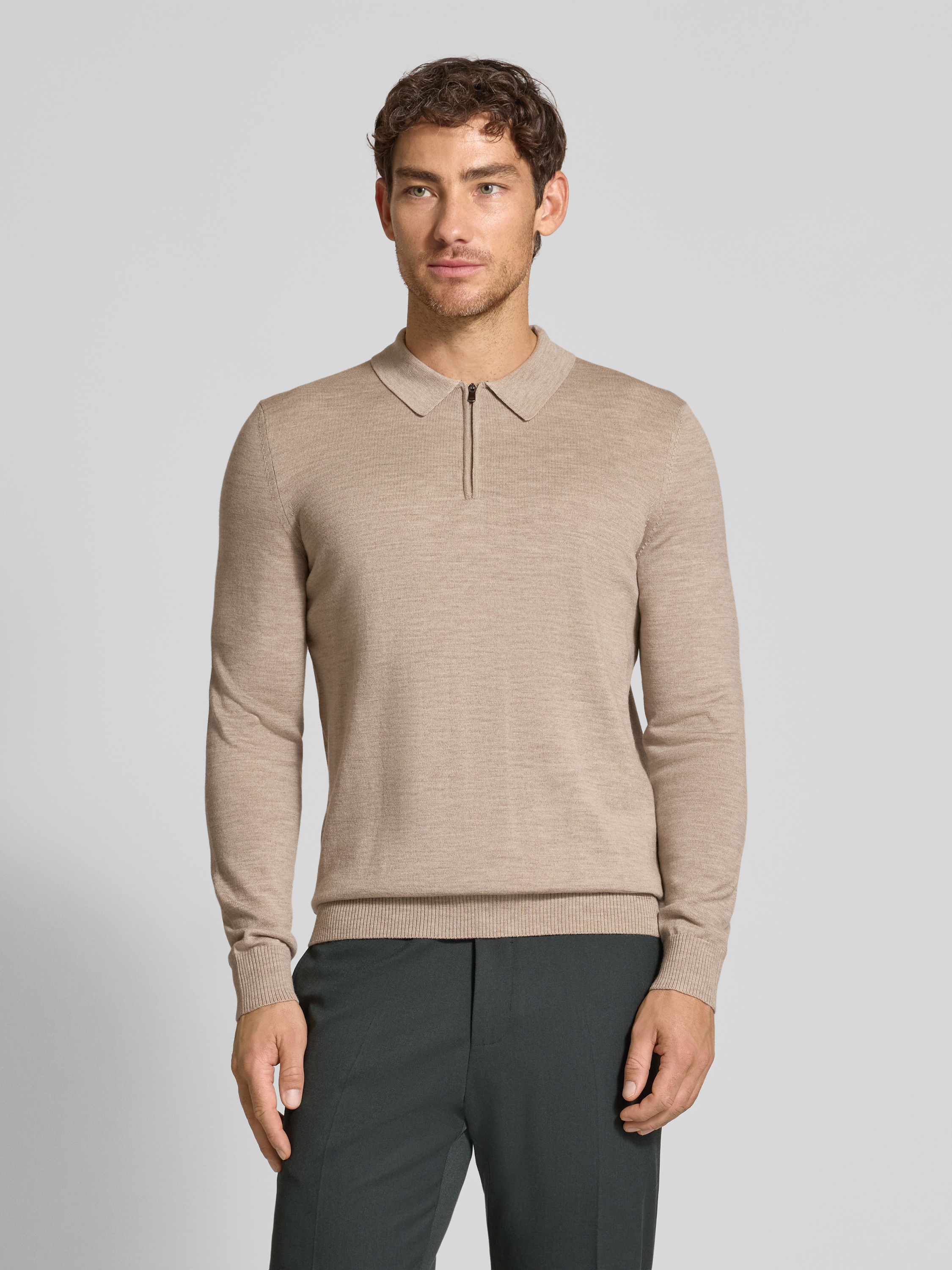 JOOP! CollectionGebreide pullover van scheerwol met polokraag model 'Dondor' in lichtbruin