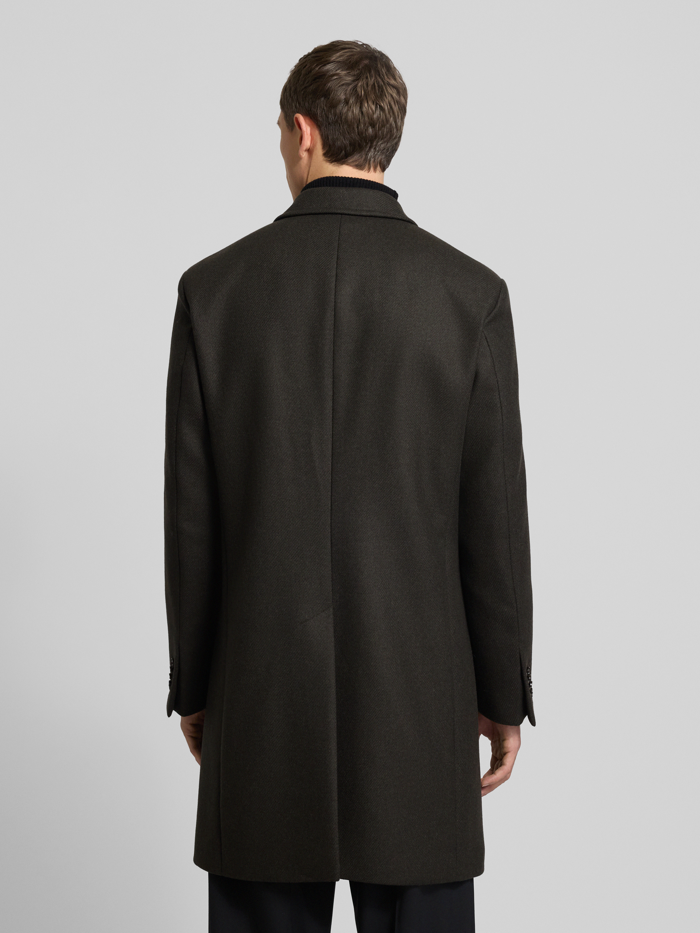 Lange jas van wolmix met reverskraag, model 'Richborne' in donkergroen