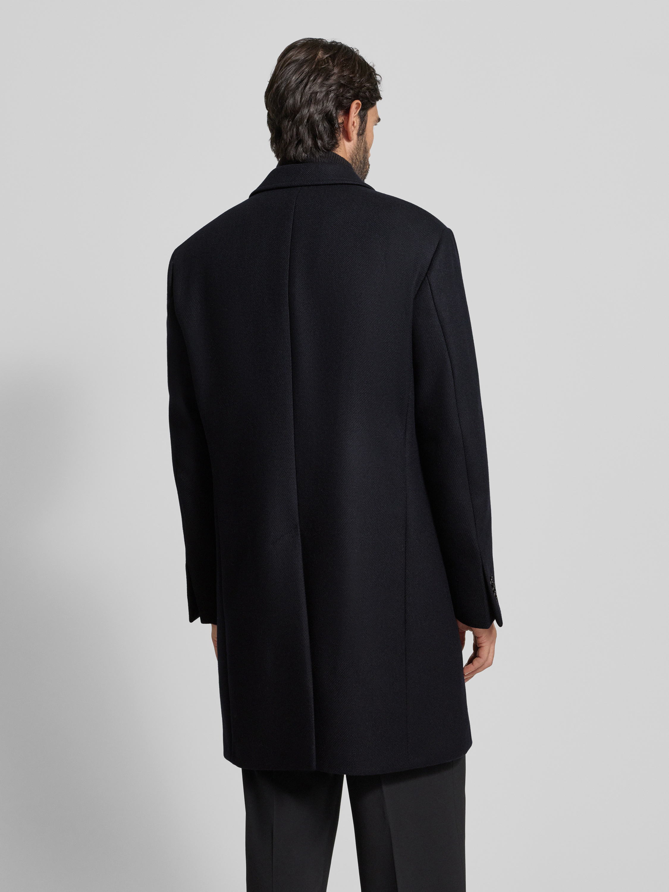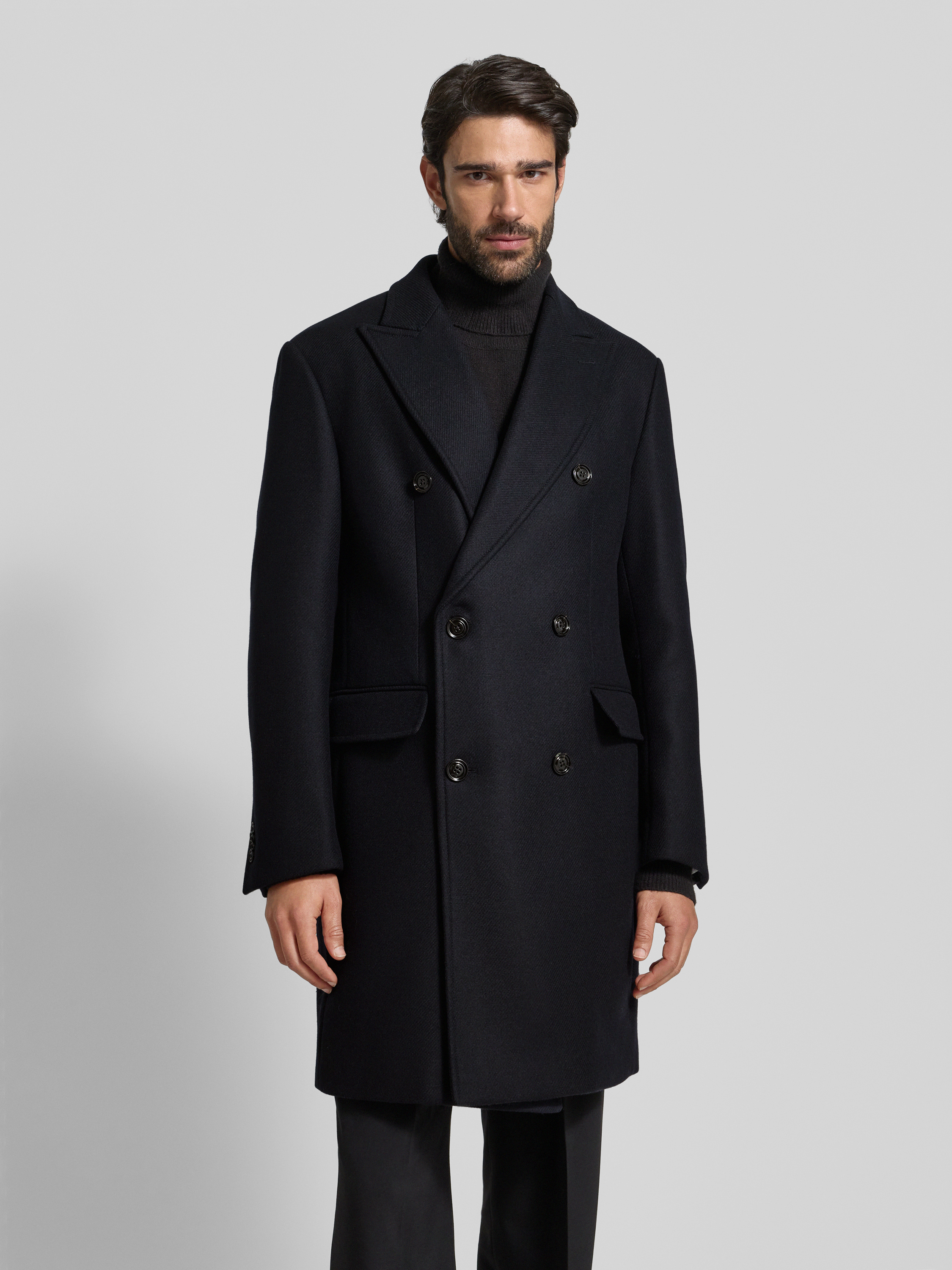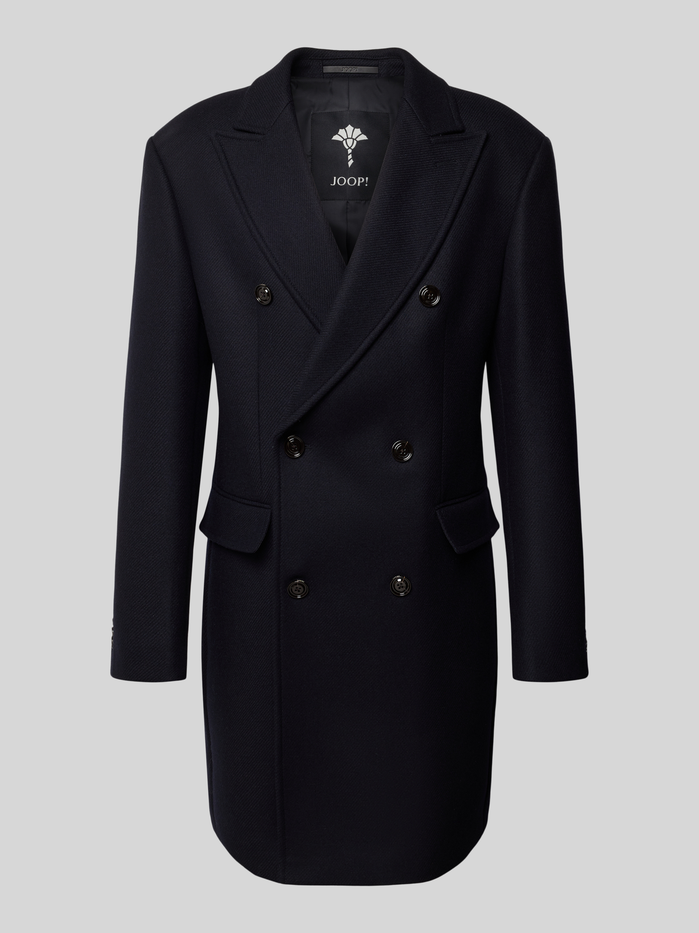 Lange jas van wolmix met reverskraag, model 'Richborne' in marineblauw