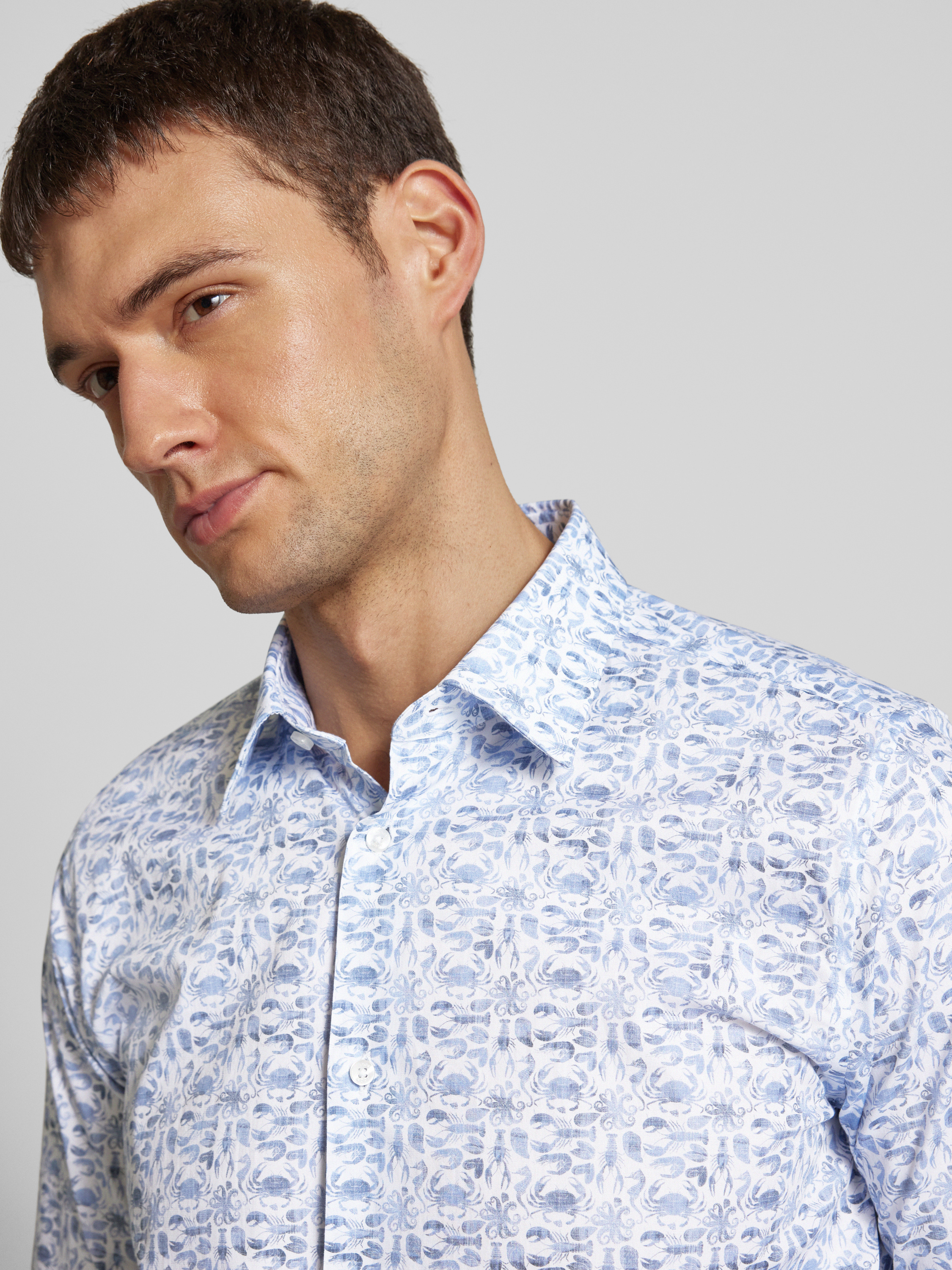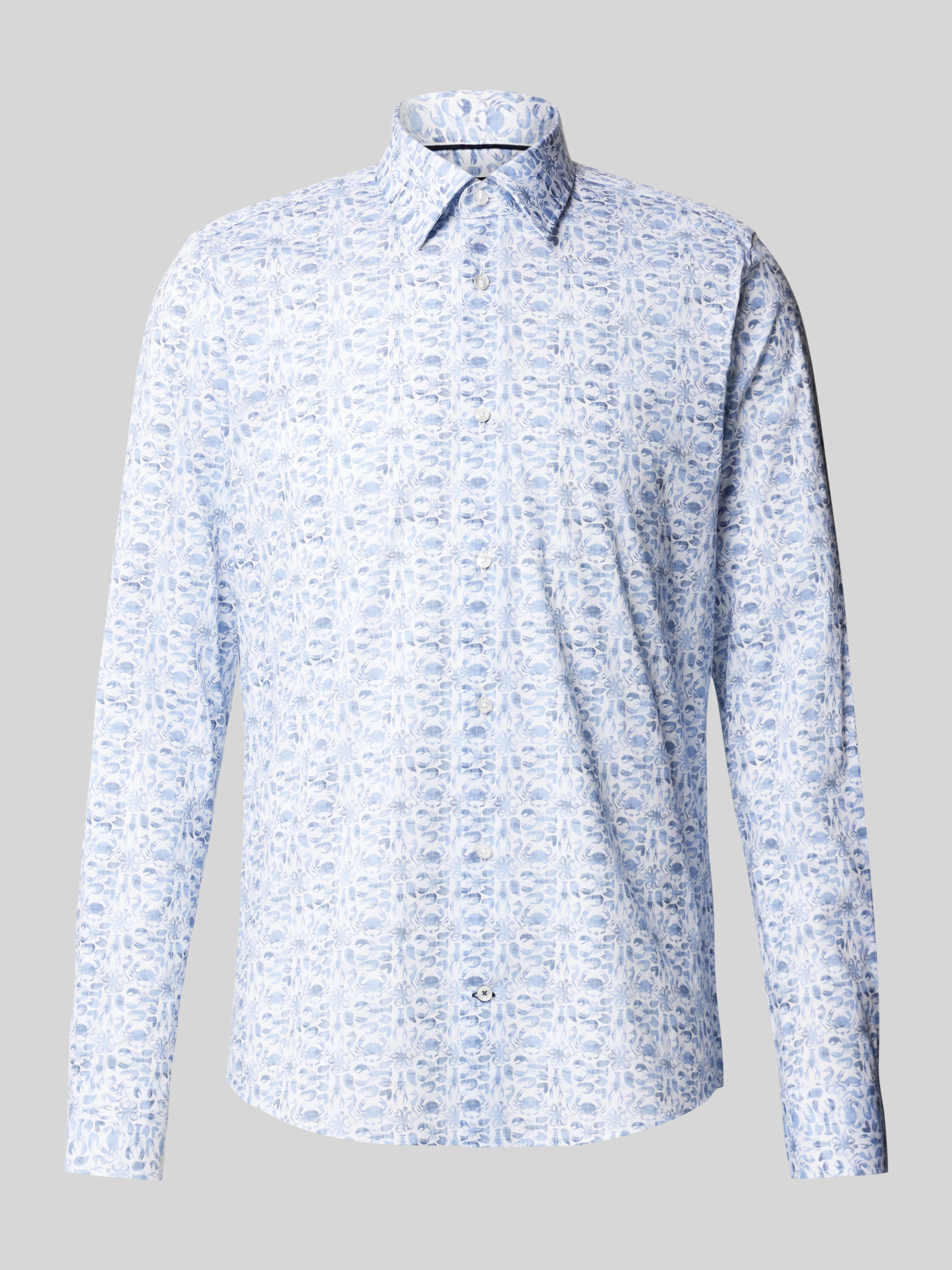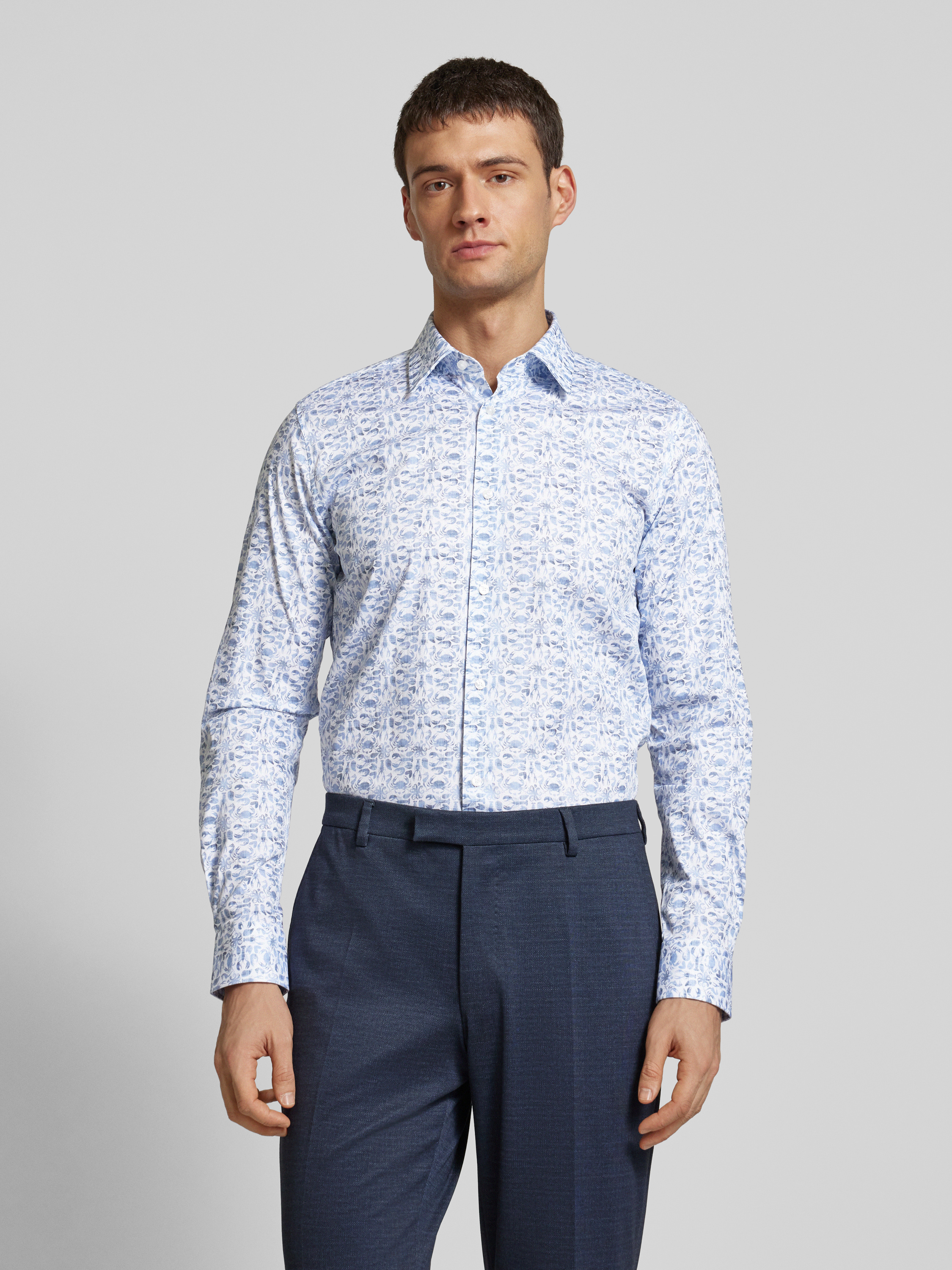 JOOP! CollectionSlim fit zakelijk overhemd met kentkraag, model 'Pierce' in marineblauw